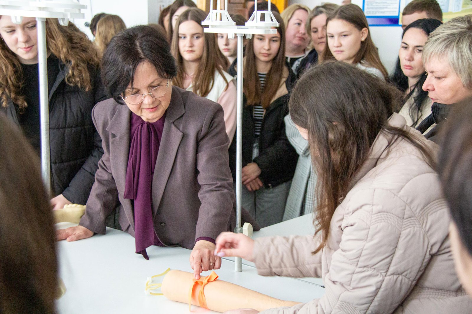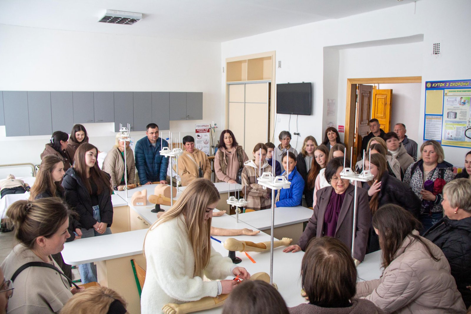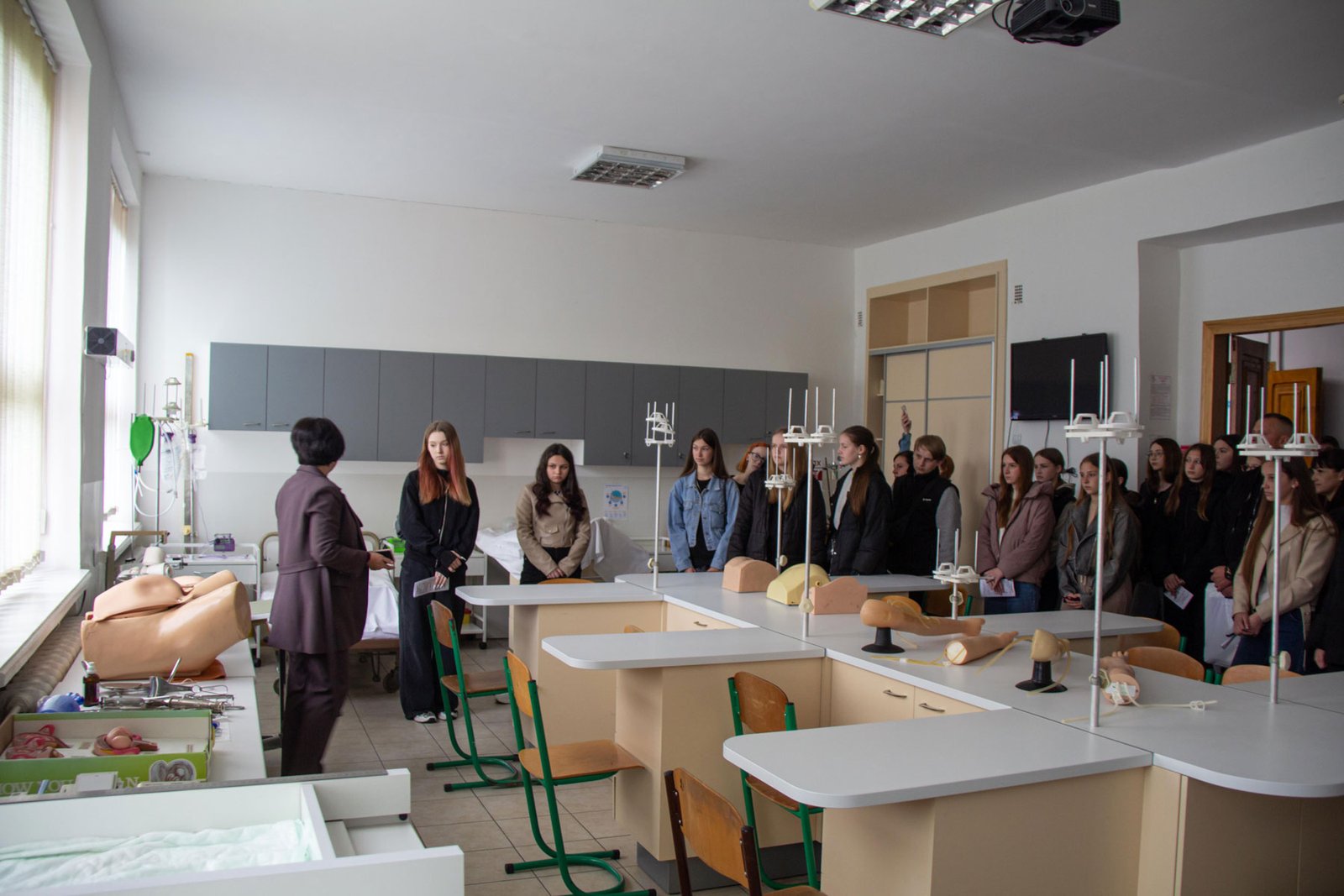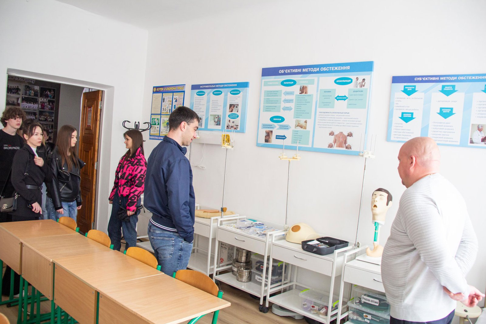 Володимир Васильович розповів також про сучасну матеріально-технічну базу (під час екскурсії коледжем її можна було побачити), про те, що навчання лише в очному форматі, що кожна друга субота робоча, щоб зимові канікули у час Різдвяних свят були довшими, що пари тривають 1 годину 10 хвилин, а вивільнені хвилини використовуються на додаткові консультації. Окремо розповів, як проходитимуть вступні випробування (співбесіда з української мови), наголосивши на максимально доброзичливій атмосфері. І вкотре наголосив, що медицина – це найпрекрасніше з усіх мистецтв.