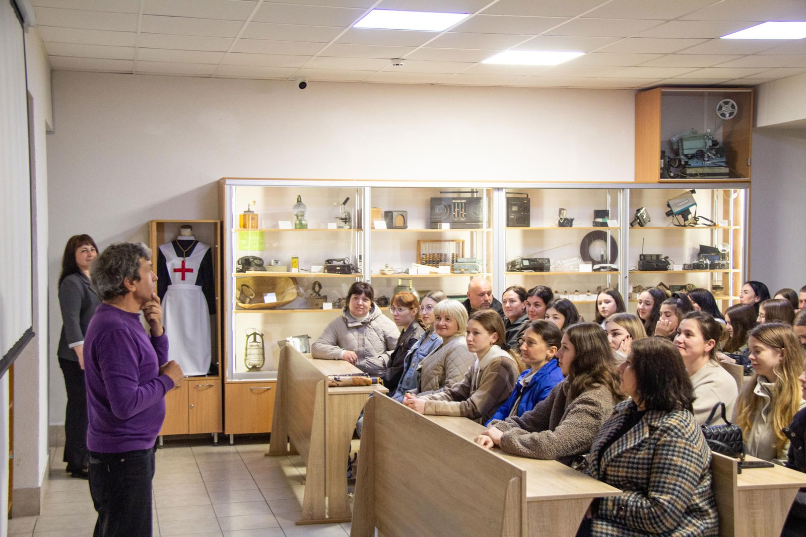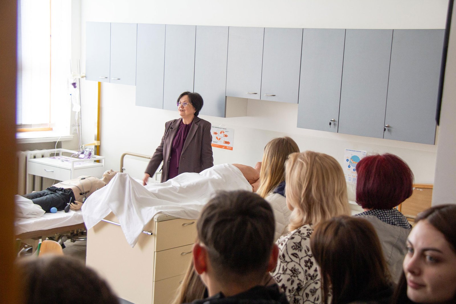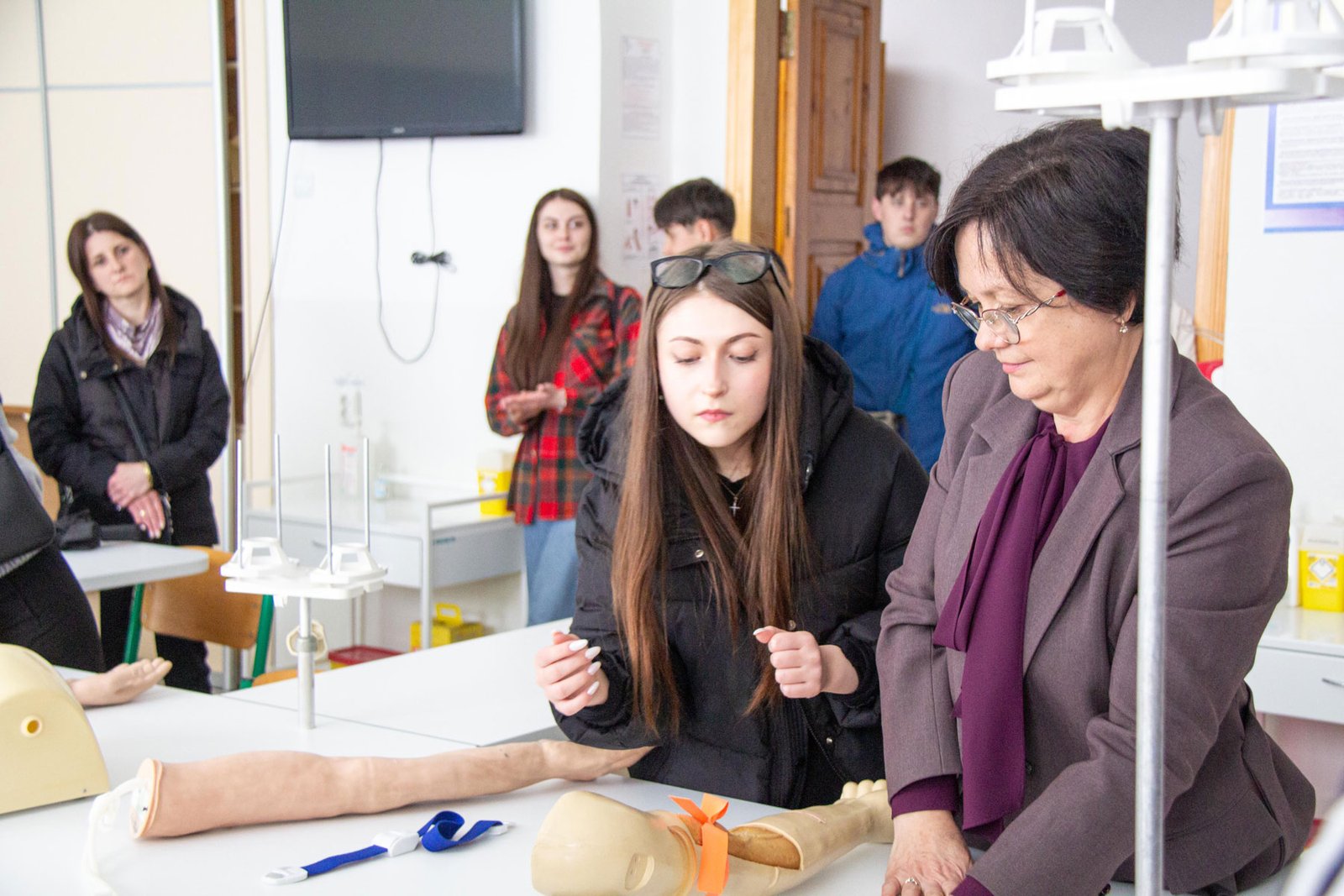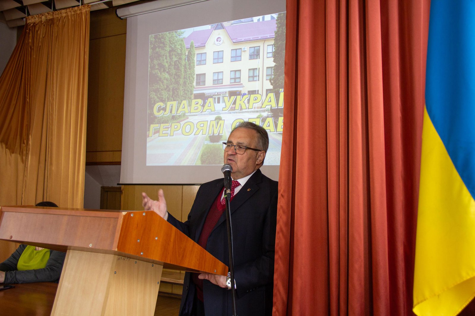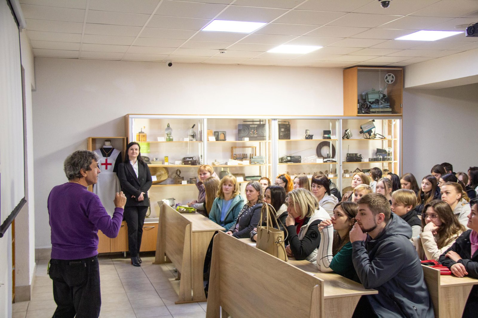 Володимир Васильович розповів також про сучасну матеріально-технічну базу (під час екскурсії коледжем її можна було побачити), про те, що навчання лише в очному форматі, що кожна друга субота робоча, щоб зимові канікули у час Різдвяних свят були довшими, що пари тривають 1 годину 10 хвилин, а вивільнені хвилини використовуються на додаткові консультації. Окремо розповів, як проходитимуть вступні випробування (співбесіда з української мови), наголосивши на максимально доброзичливій атмосфері. І вкотре наголосив, що медицина – це найпрекрасніше з усіх мистецтв.