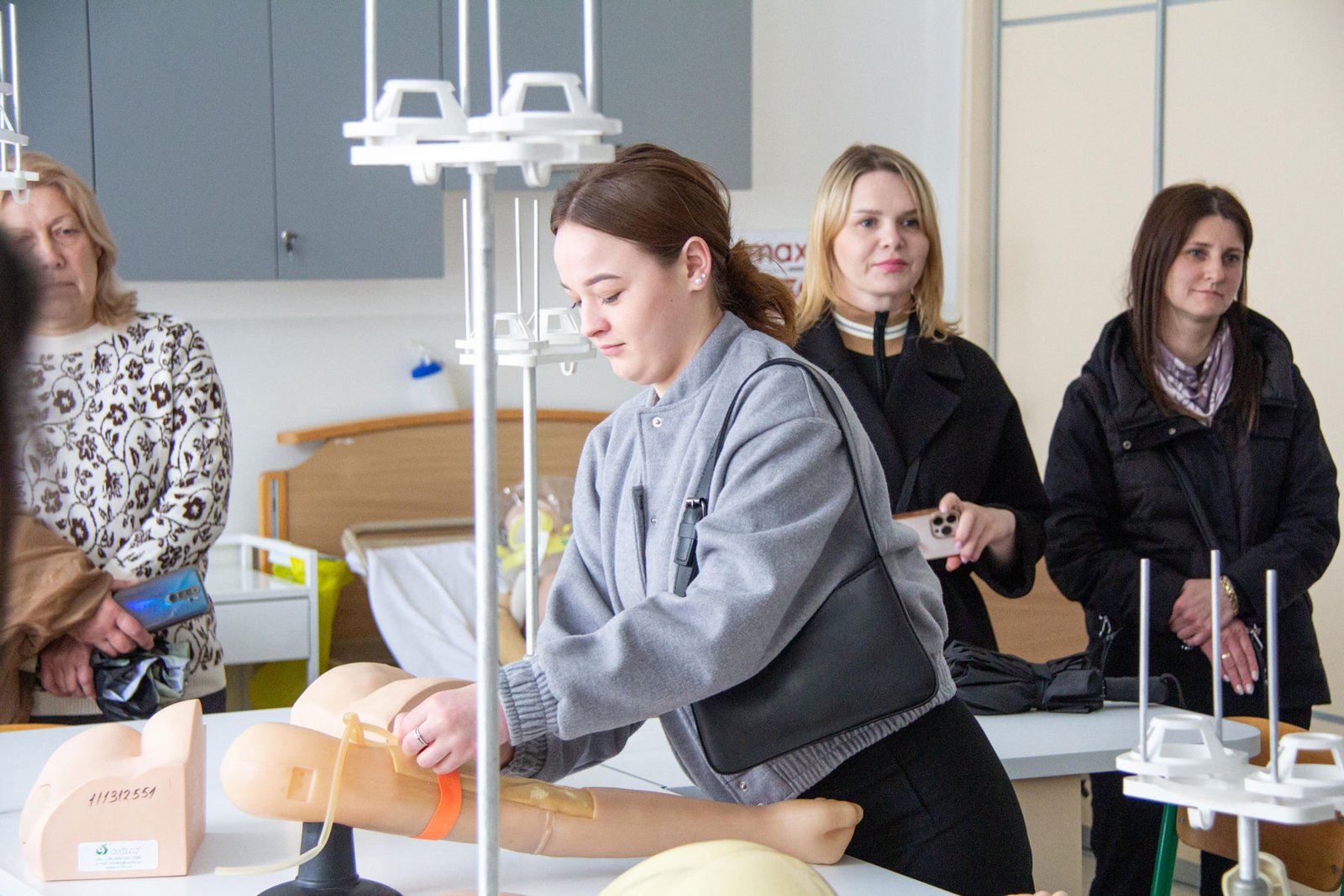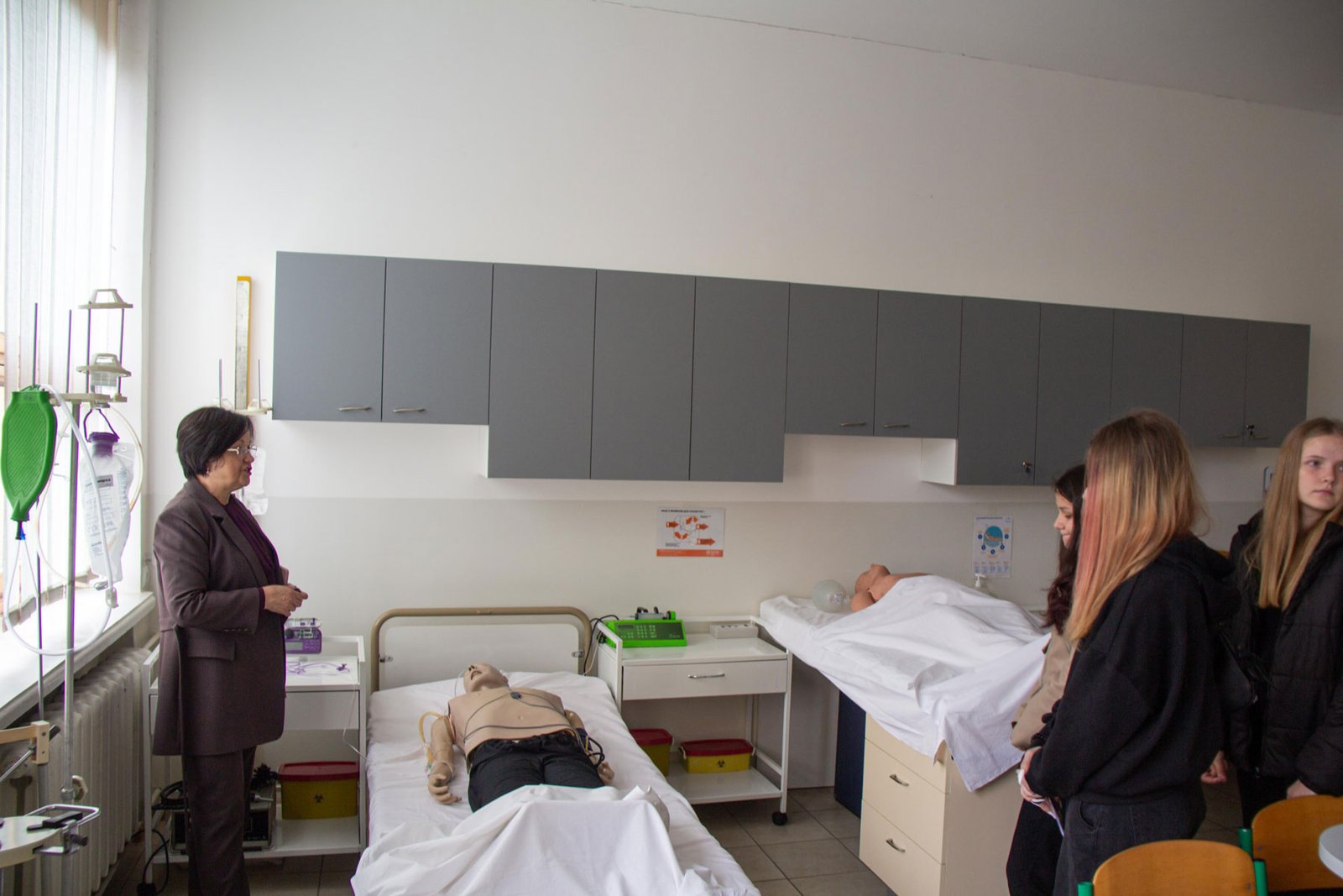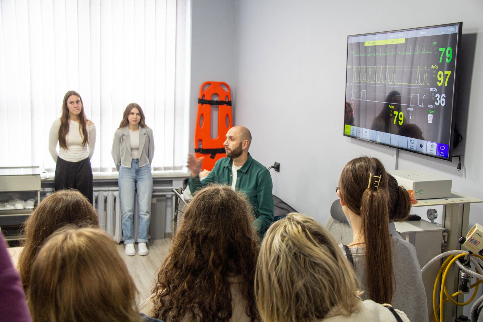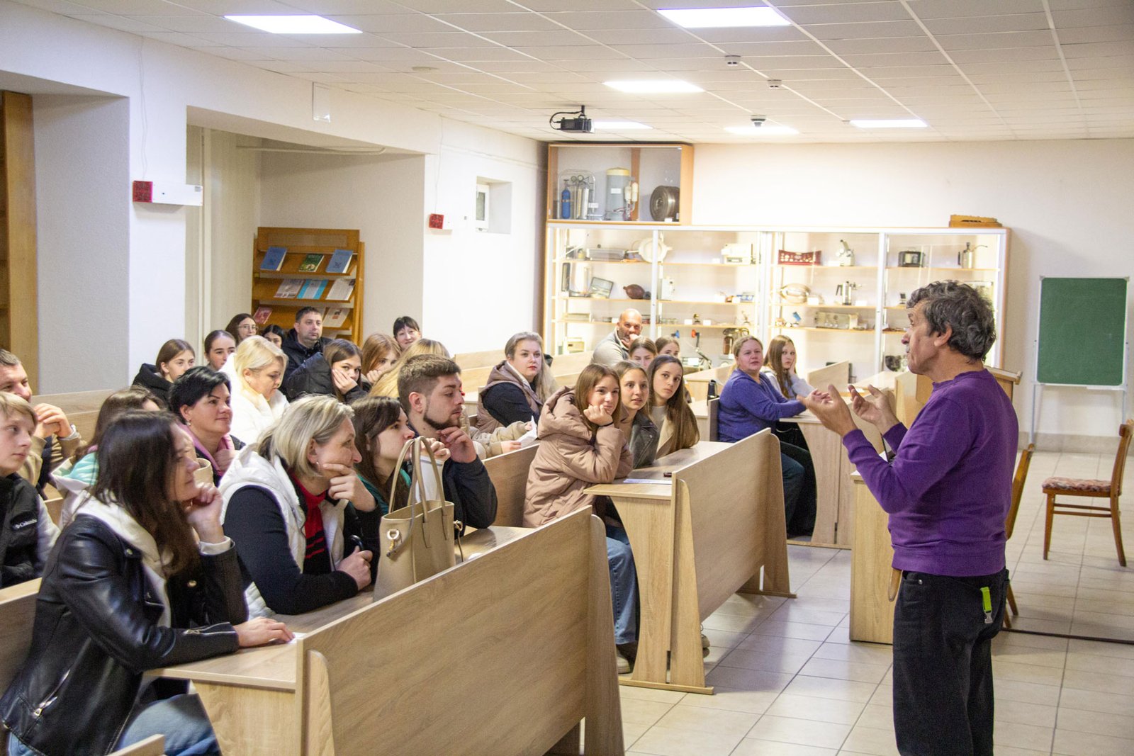 Володимир Васильович розповів також про сучасну матеріально-технічну базу (під час екскурсії коледжем її можна було побачити), про те, що навчання лише в очному форматі, що кожна друга субота робоча, щоб зимові канікули у час Різдвяних свят були довшими, що пари тривають 1 годину 10 хвилин, а вивільнені хвилини використовуються на додаткові консультації. Окремо розповів, як проходитимуть вступні випробування (співбесіда з української мови), наголосивши на максимально доброзичливій атмосфері. І вкотре наголосив, що медицина – це найпрекрасніше з усіх мистецтв.
