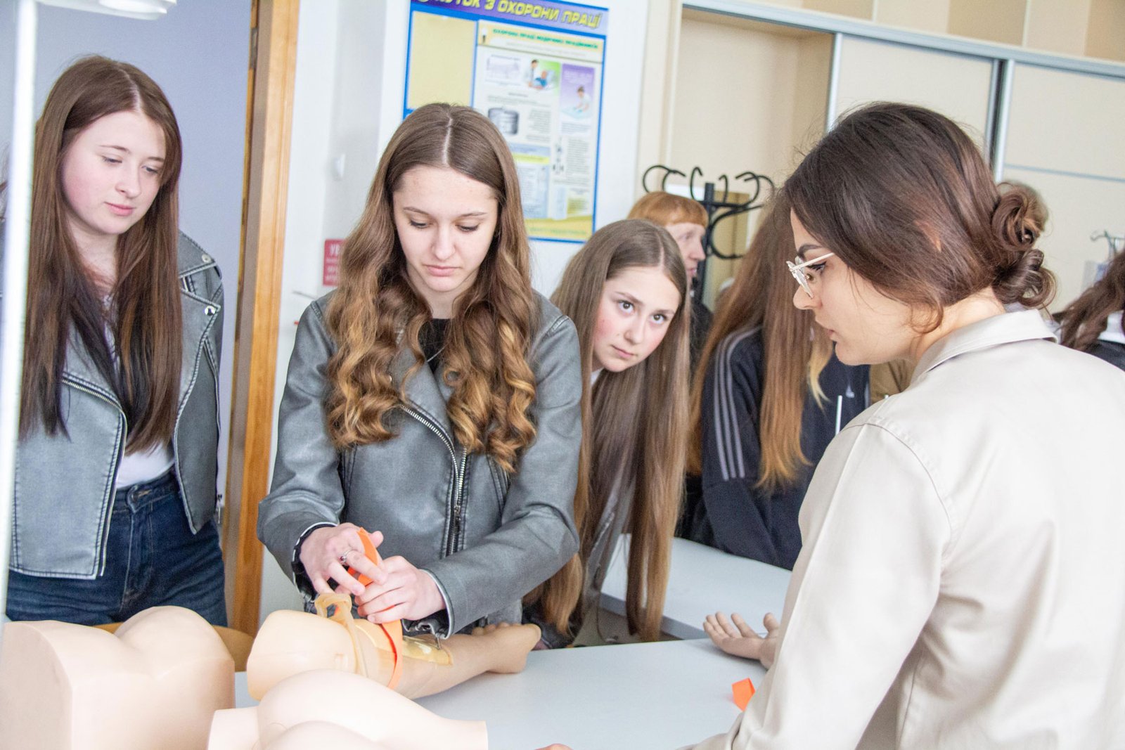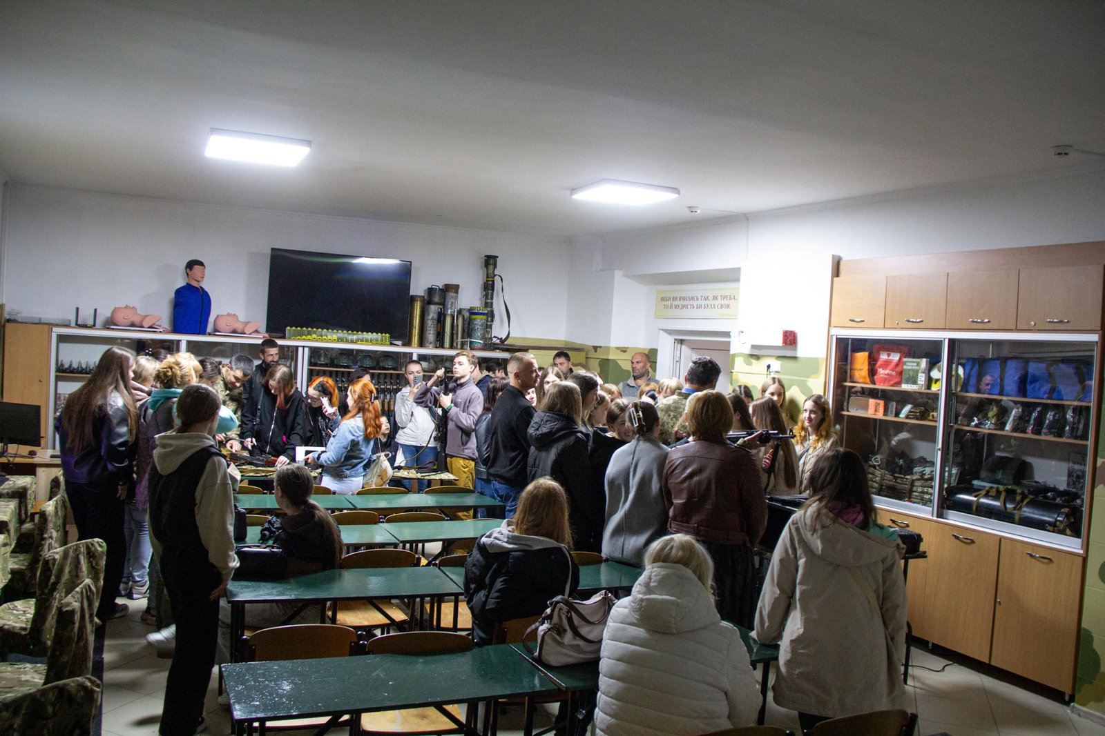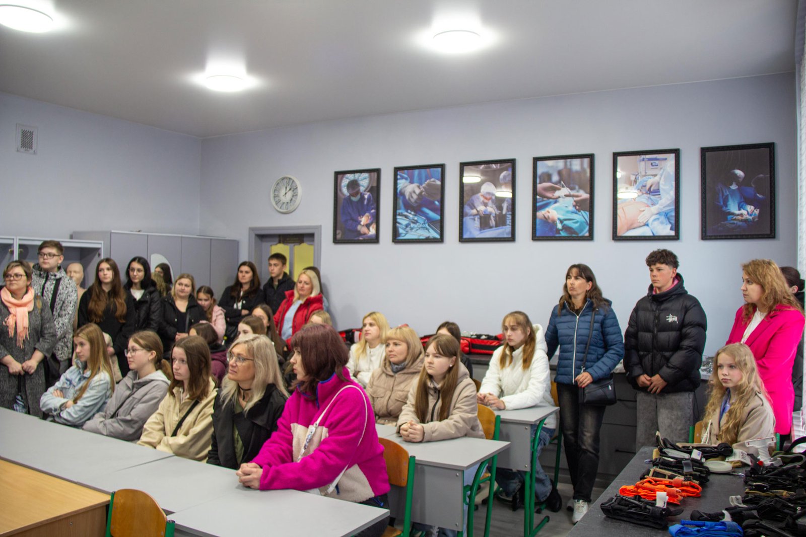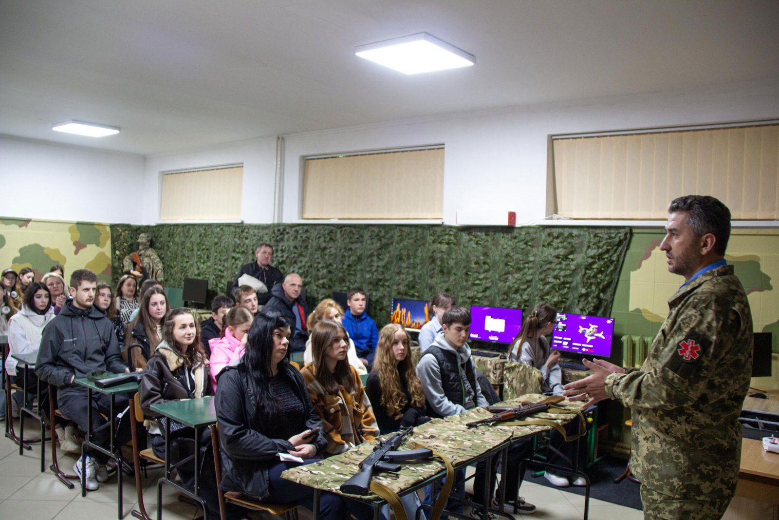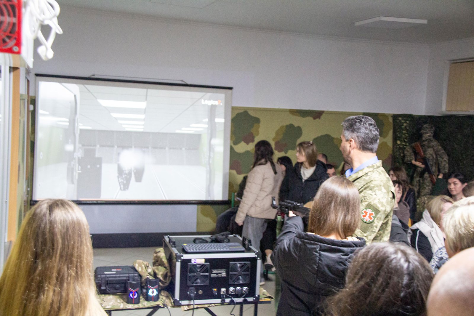 А під час екскурсії коледжем майбутні абітурієнти змогли побачити навчальні аудиторії, тренажерні кабінети, бібліотеку, музей медичної і побутової техніки, спорткомплекс, а в аудиторії-осередку предмету «Захист України», що знаходиться в укритті на нульовому поверсі, навіть спробувати збирати-розбирати автомат чи стріляти в електронному тирі.