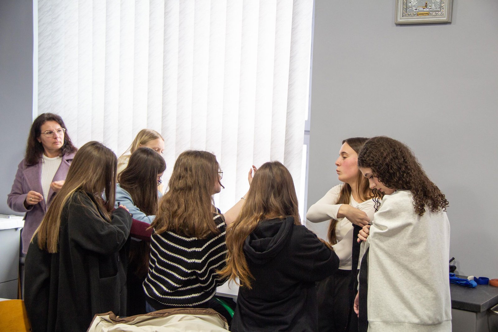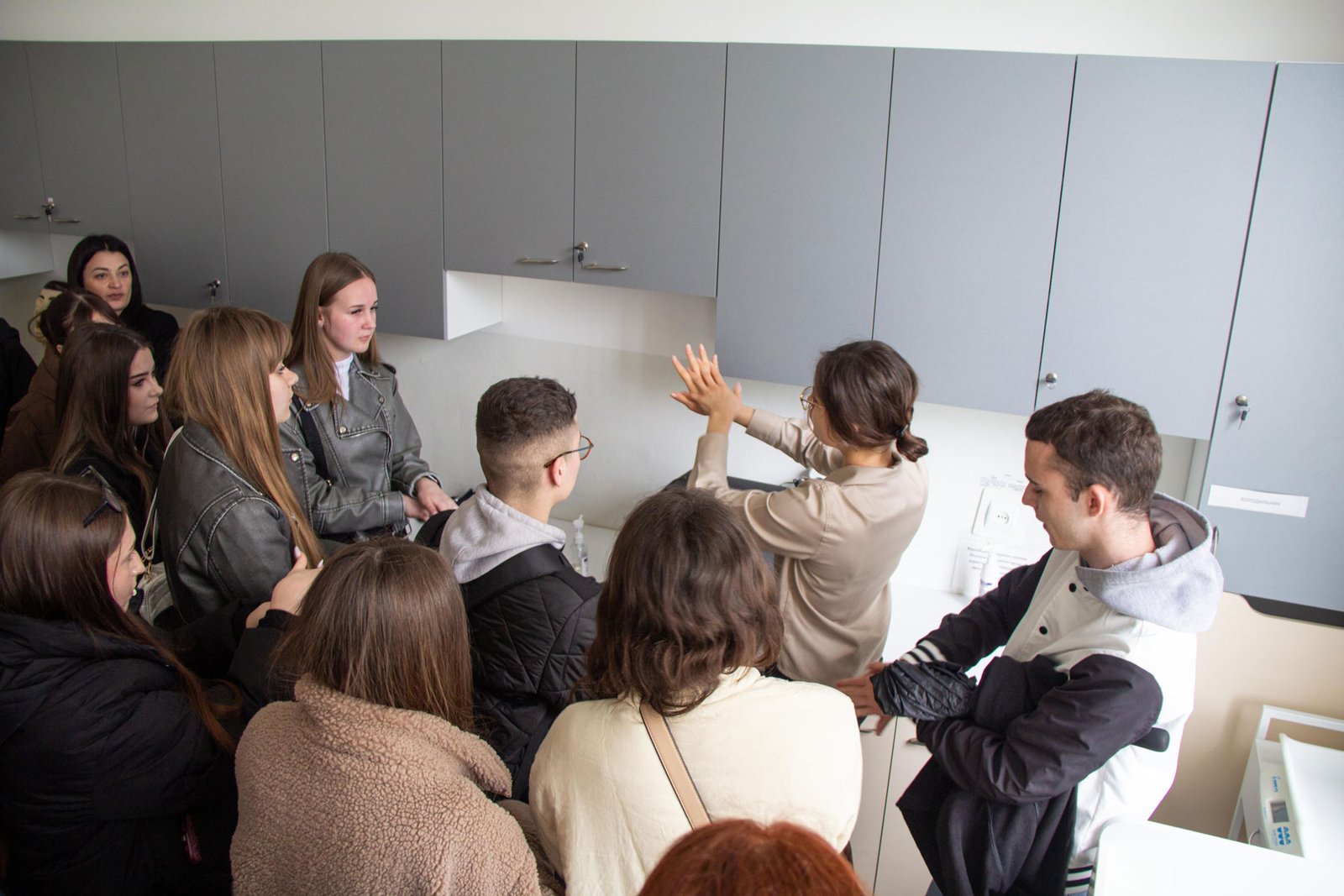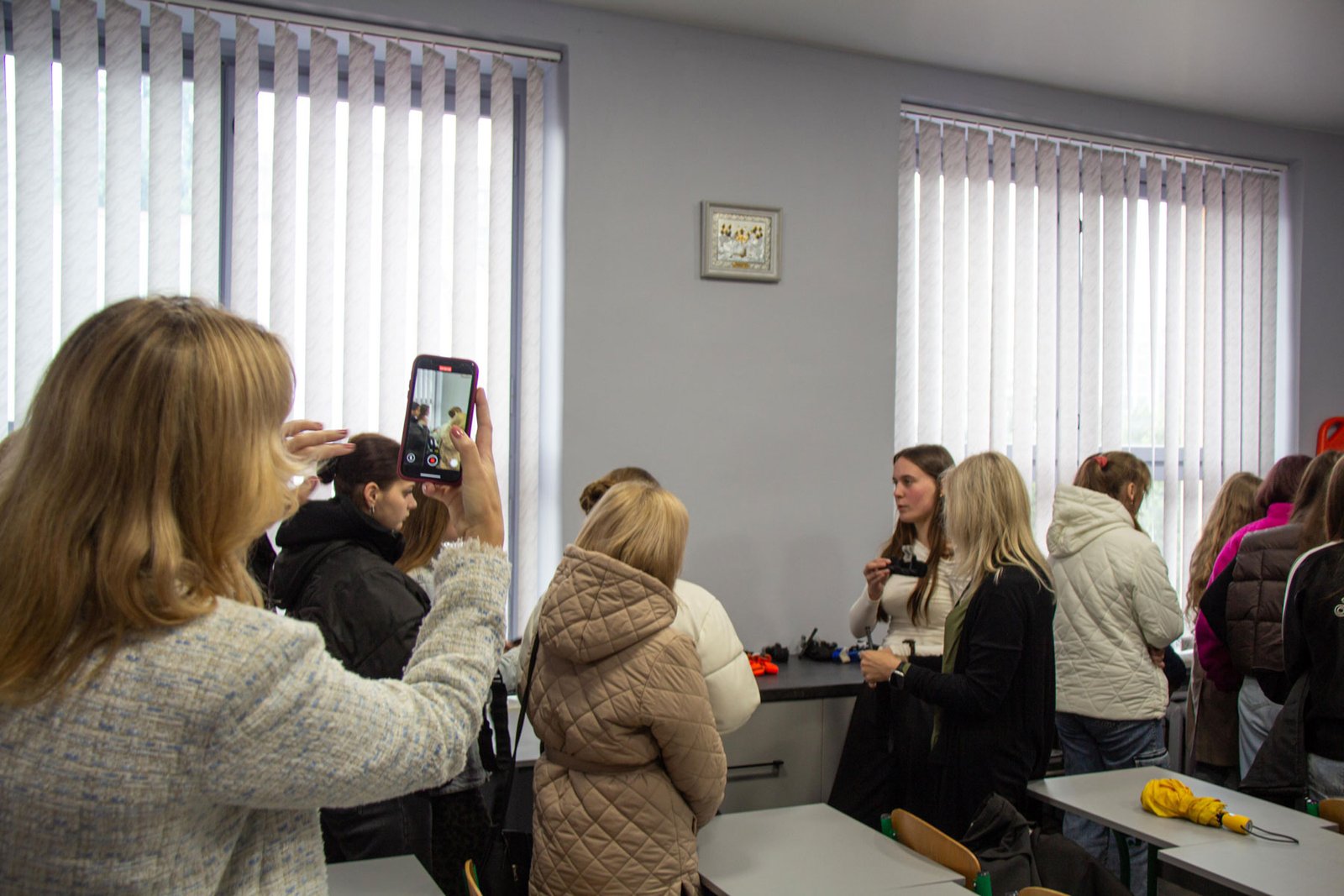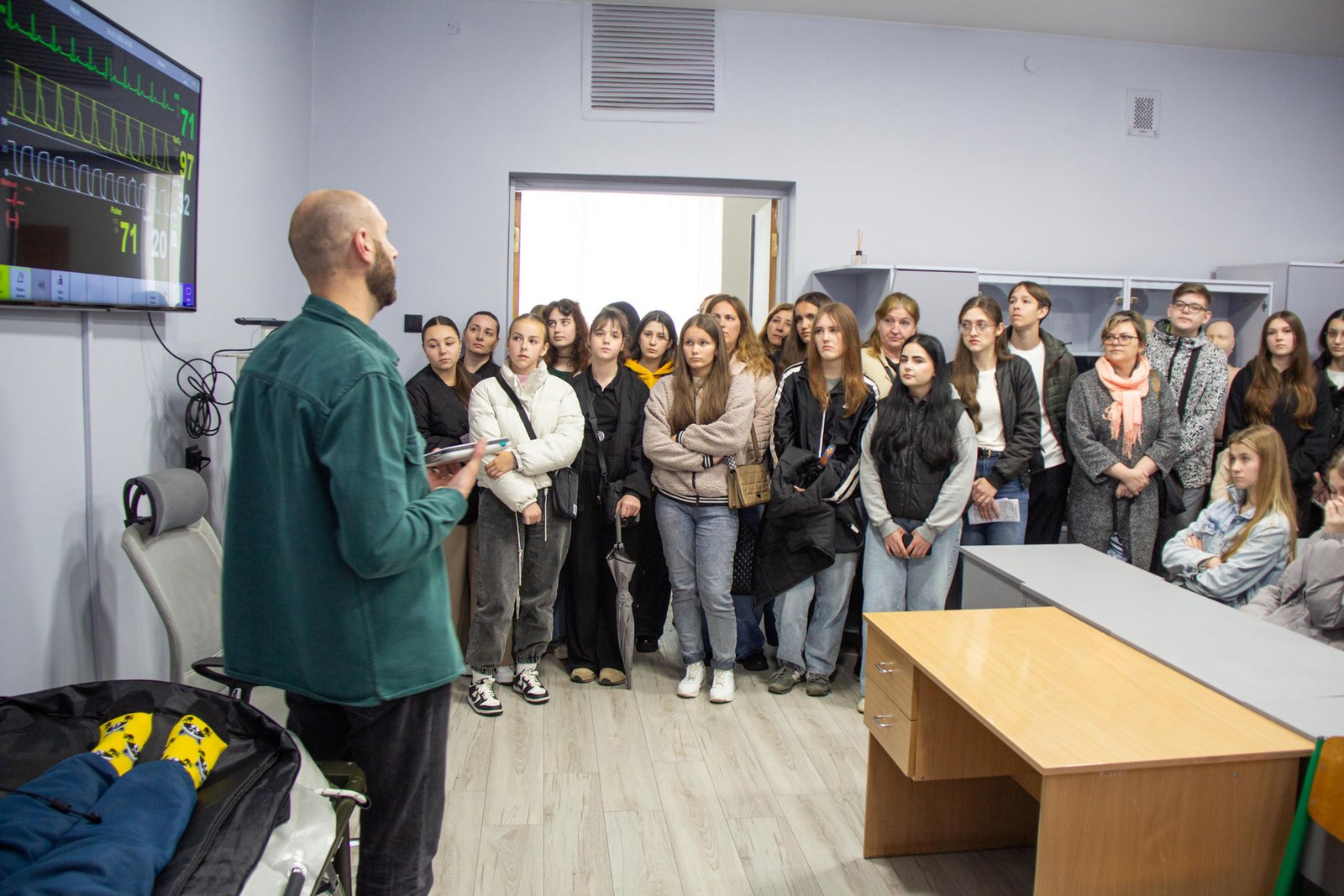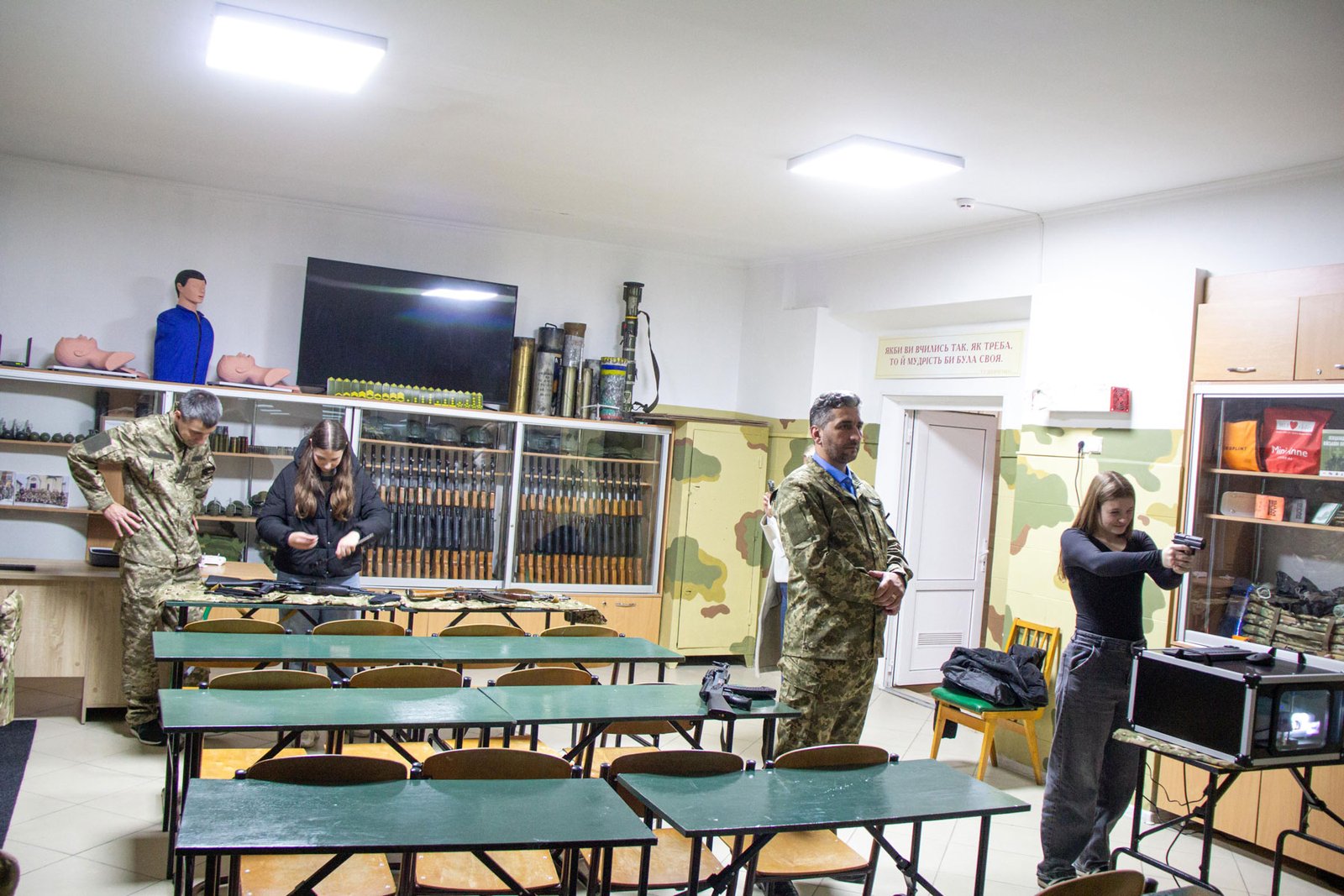 А під час екскурсії коледжем майбутні абітурієнти змогли побачити навчальні аудиторії, тренажерні кабінети, бібліотеку, музей медичної і побутової техніки, спорткомплекс, а в аудиторії-осередку предмету «Захист України», що знаходиться в укритті на нульовому поверсі, навіть спробувати збирати-розбирати автомат чи стріляти в електронному тирі.
