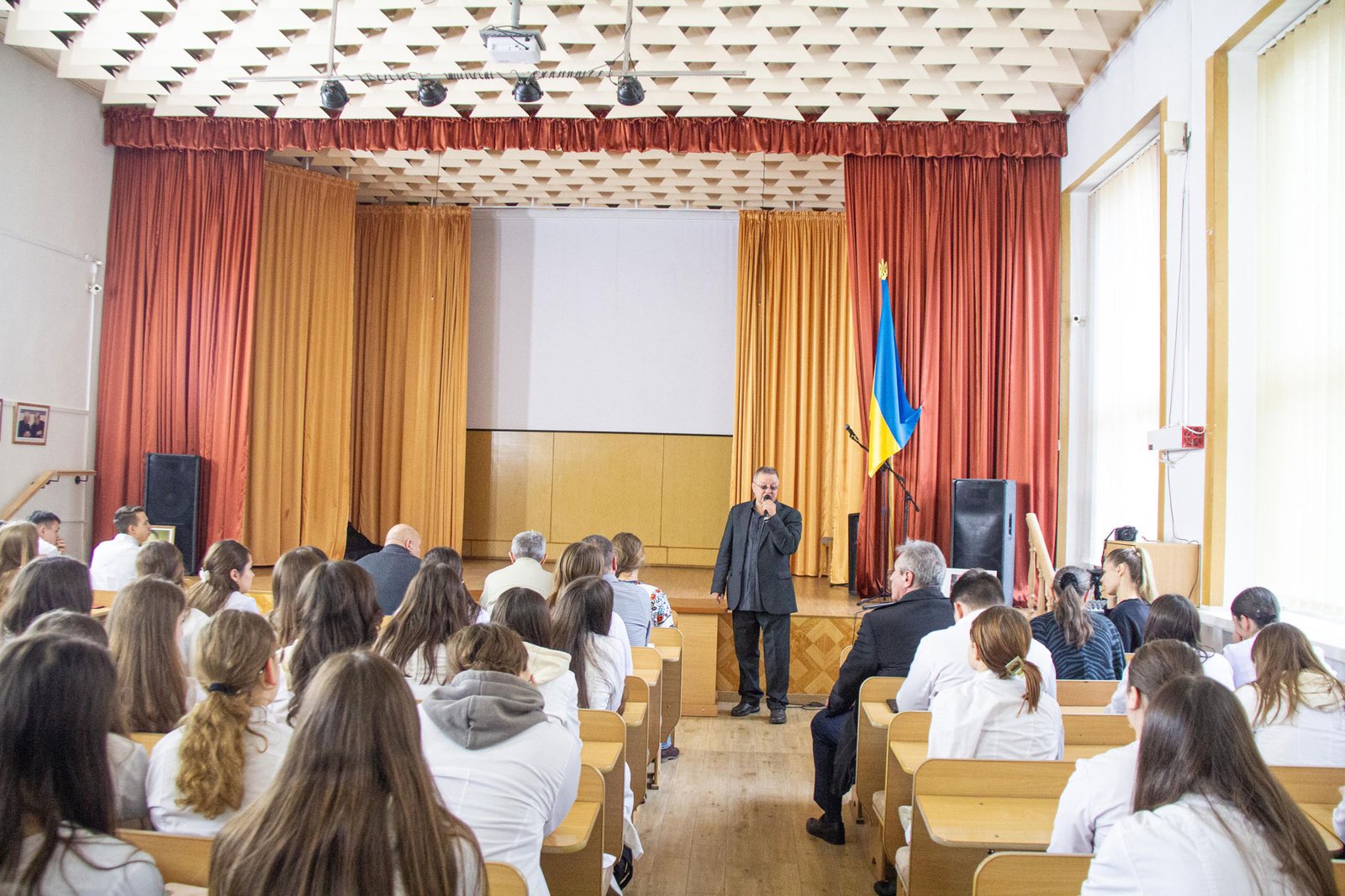 На зустріч зі студентами прийшли також голова громадської організації «Єдина родина Прикарпаття» Степан Чомко – батько випускника Івано-Франківського національного медичного університету, учасника Майдану і АТО Ярослава Чомка (позивний « Білий Ангел»), який загинув у 2015 році на Донеччині; лікар Любомир Процик – активний учасник відновлення незалежності України; заступник голови міської організації ВУТ «Просвіта» імені Тараса Шевченка Іван Гаврилович; онука і донька борців за незалежність і свободу України, поетеса зі Львова Наталія Крісман. Вони виступили перед першокурсниками зі щирими словами вболівання за долю України, вдячності за героїзм і незламність наших захисників, віри у Перемогу і майбутнє процвітання нашої держави. Говорили і про проблеми та виклики сьогодення.