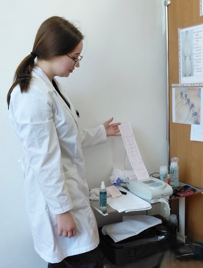 Під час звіту здобувачі освіти продемонстрували сформовані професійні компетентності, зокрема виконання венепункції (забір крові з вени), проведення серцево-легеневої реанімації (СЛР) та реєстрацію електрокардіограми. Усі практичні навички виконувалися з дотриманням принципів інфекційного контролю, стандартів безпеки пацієнтів і сучасних клінічних вимог.