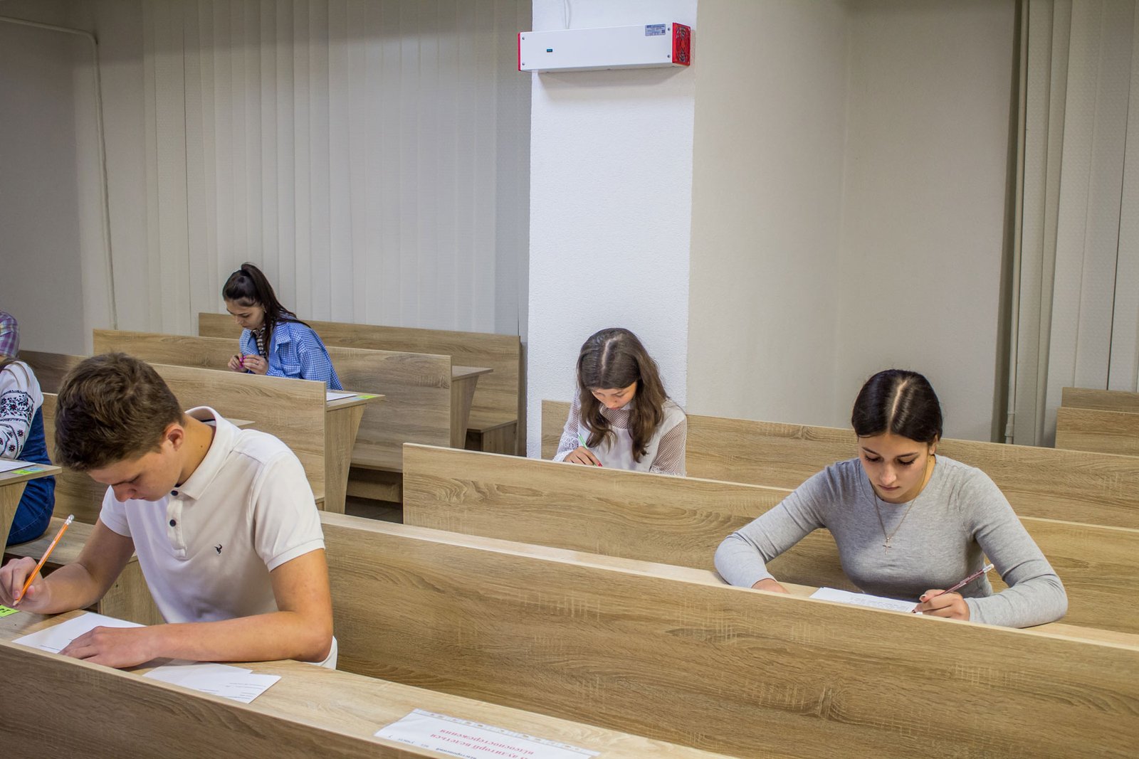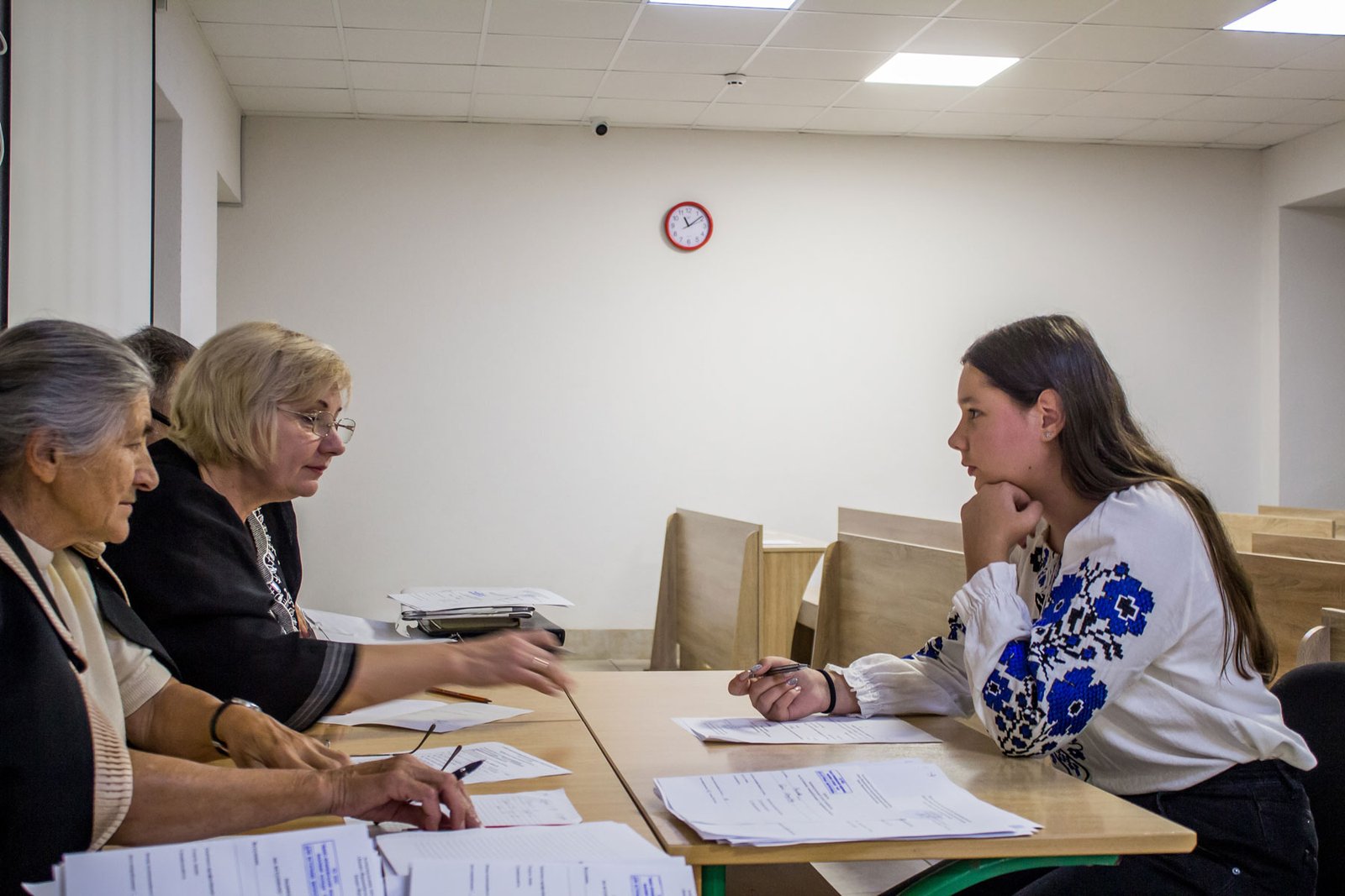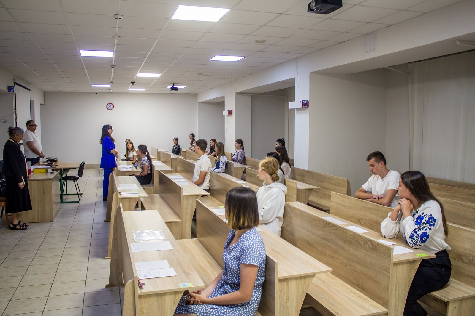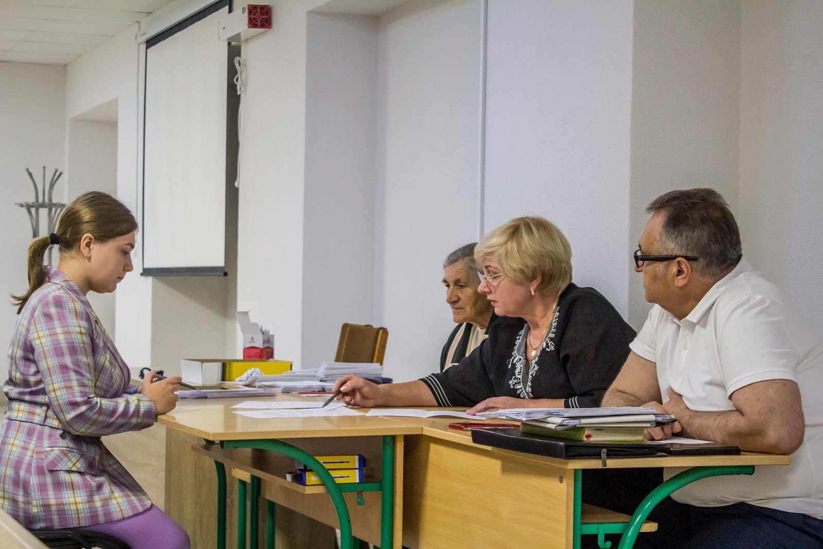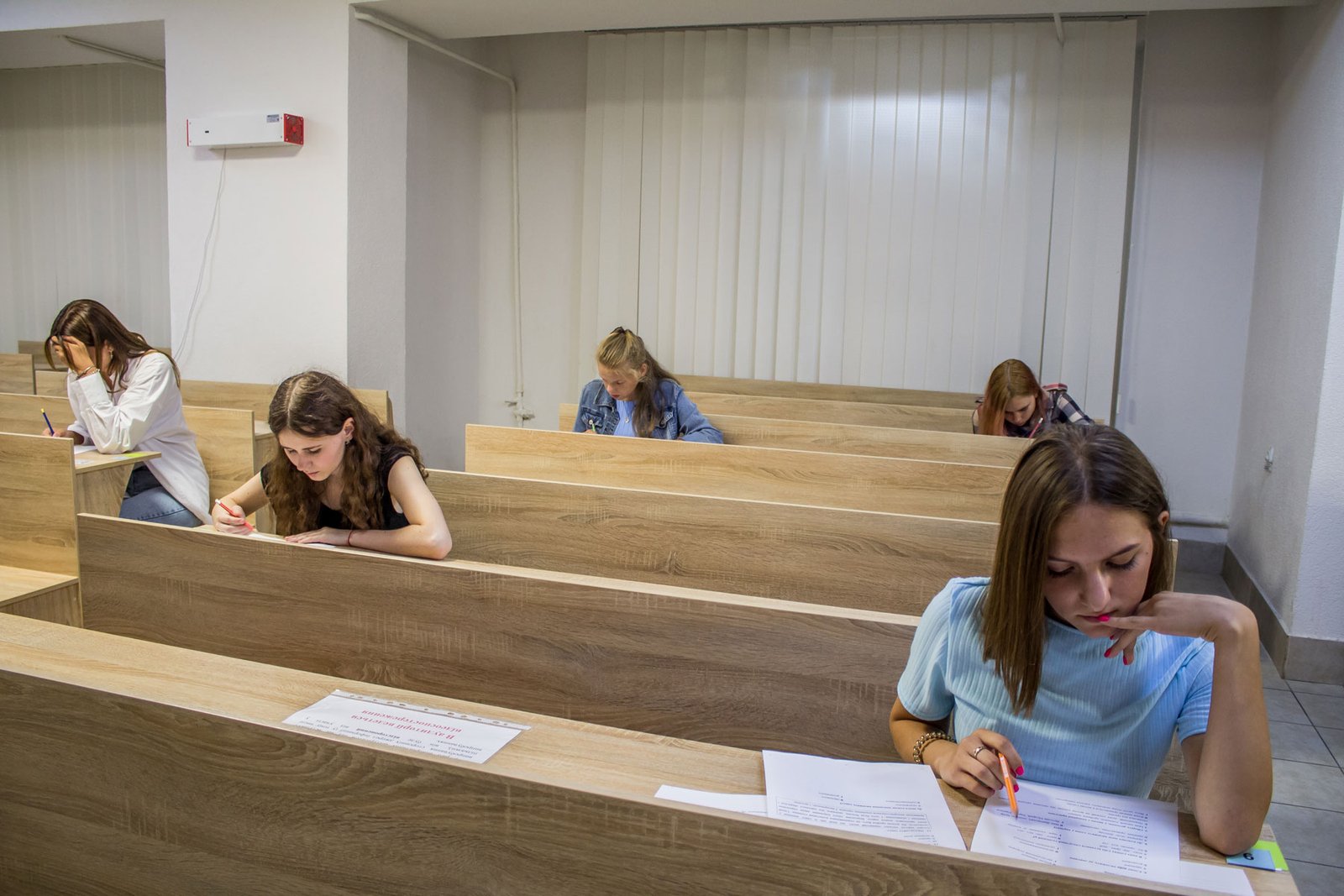 А от дев’ятикласники, які вступають на місця регіонального замовлення, повинні пройти індивідуальну усну співбесіду з української мови. 15 липня таке вступне випробування проходило у двох групах. Як у і перший день, незадовільних оцінок нема.