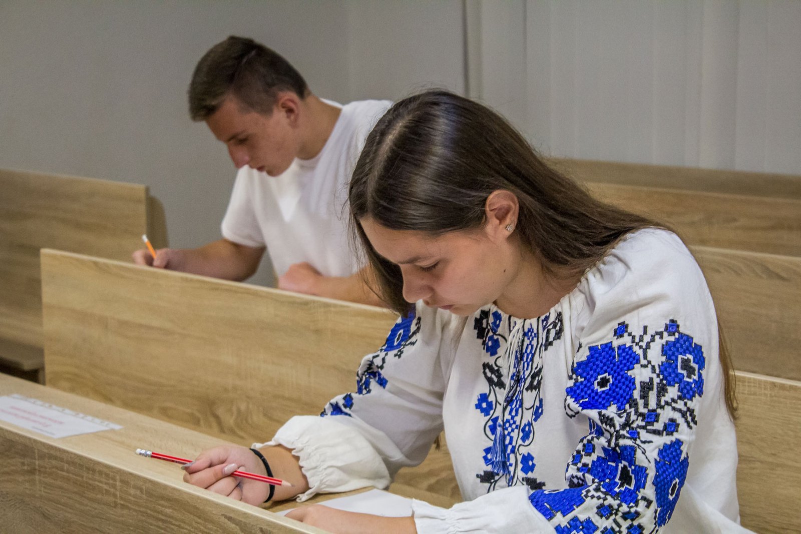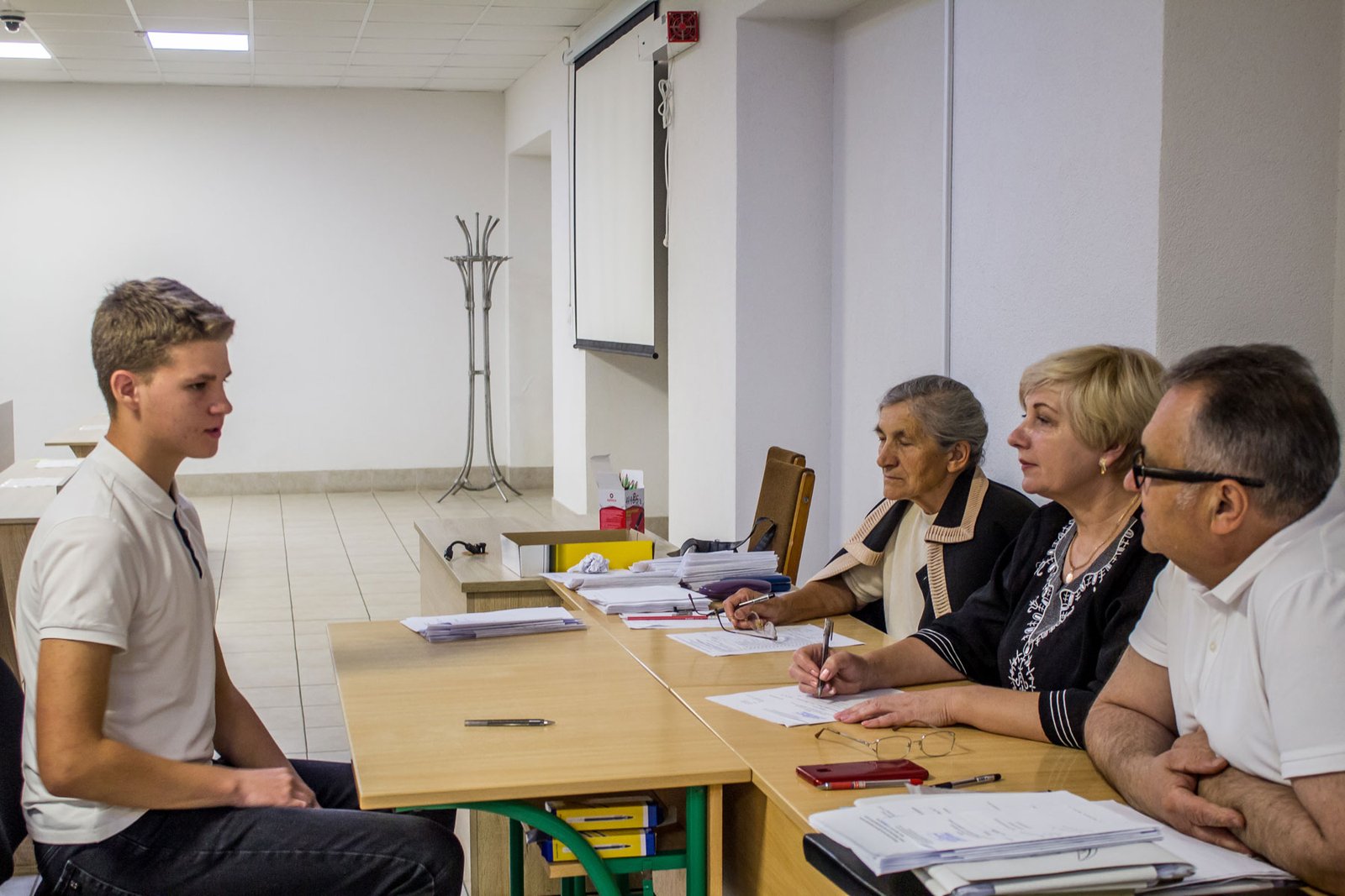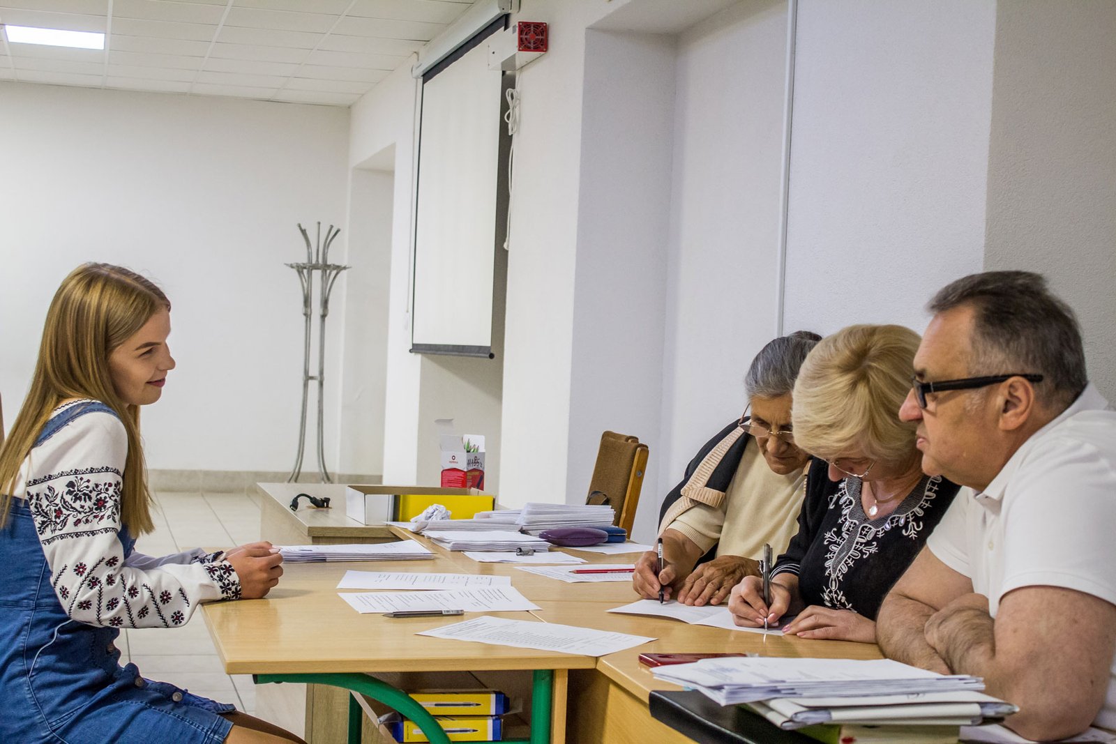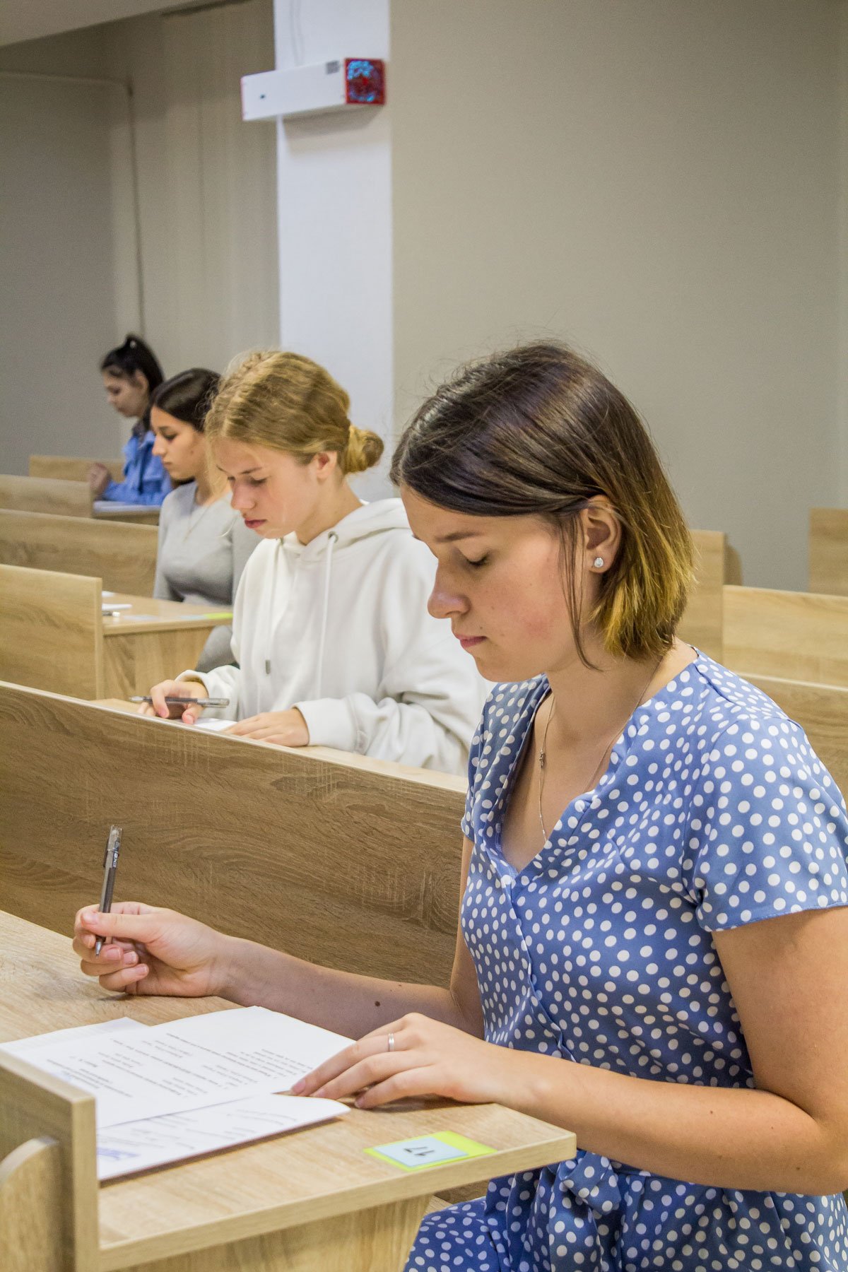 А от дев’ятикласники, які вступають на місця регіонального замовлення, повинні пройти індивідуальну усну співбесіду з української мови. 15 липня таке вступне випробування проходило у двох групах. Як у і перший день, незадовільних оцінок нема.