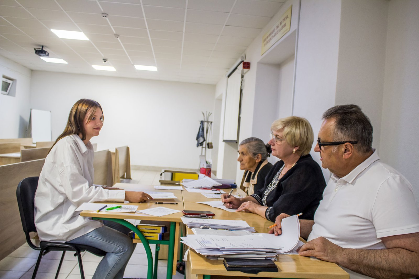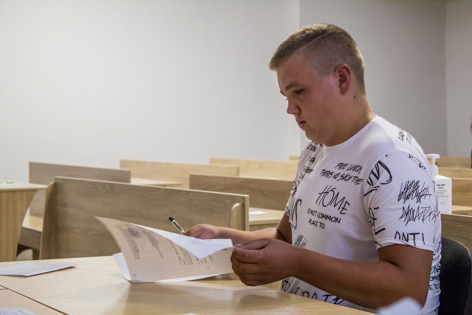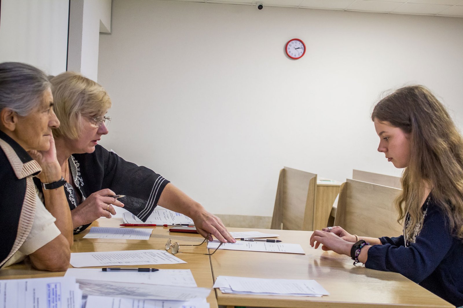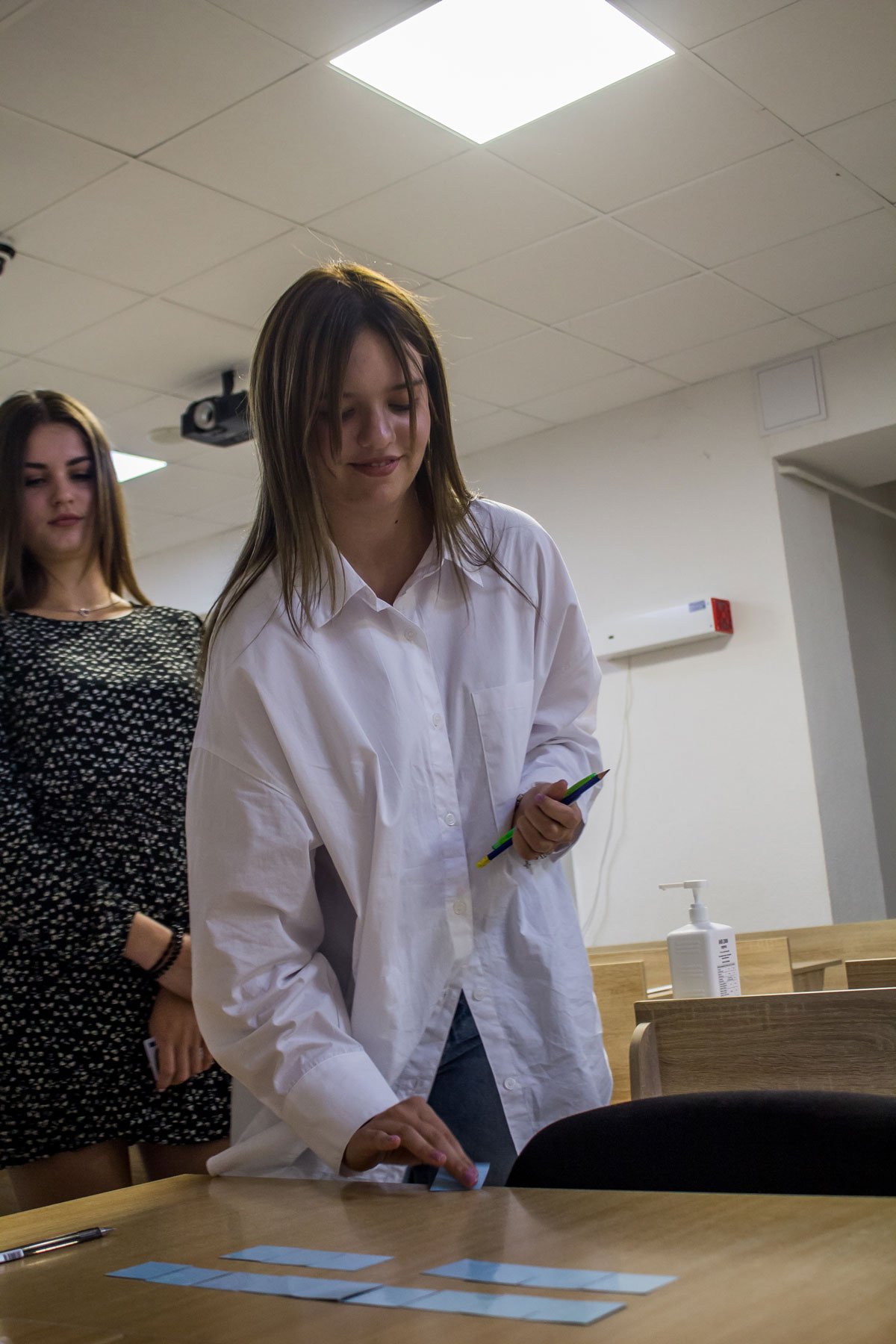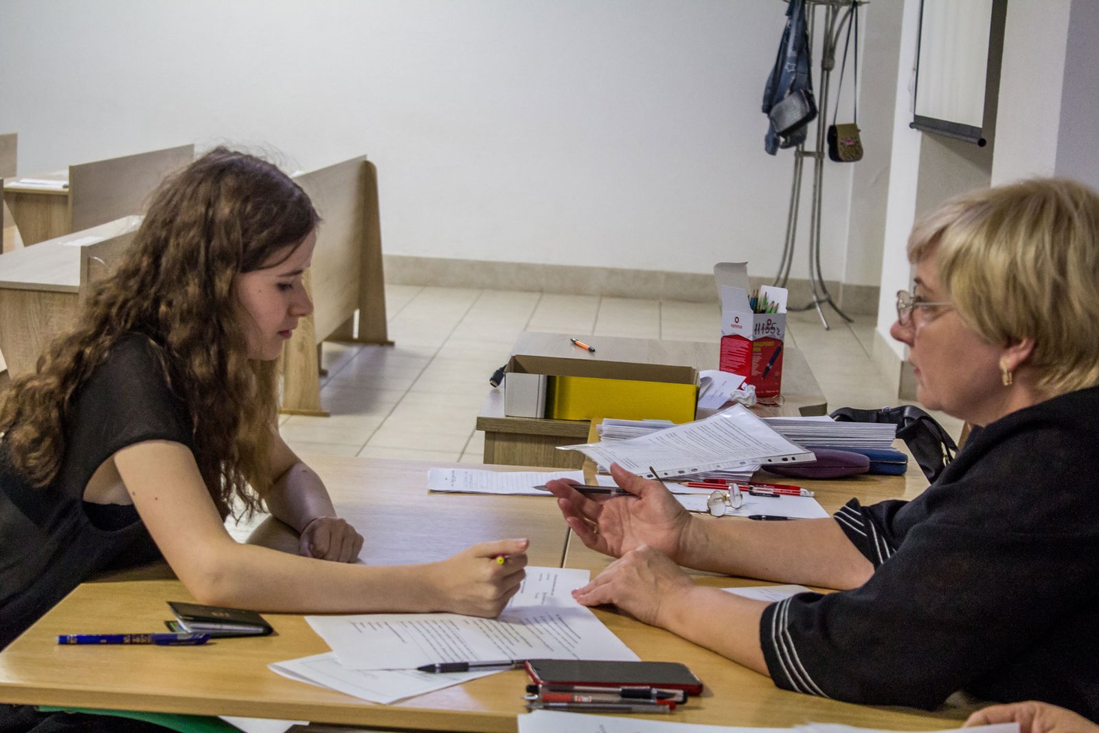 А от дев’ятикласники, які вступають на місця регіонального замовлення, повинні пройти індивідуальну усну співбесіду з української мови. 15 липня таке вступне випробування проходило у двох групах. Як у і перший день, незадовільних оцінок нема.