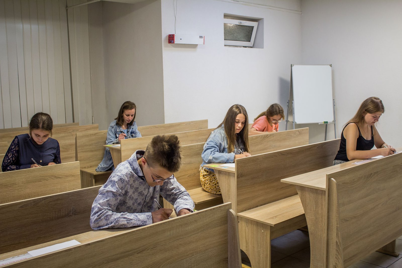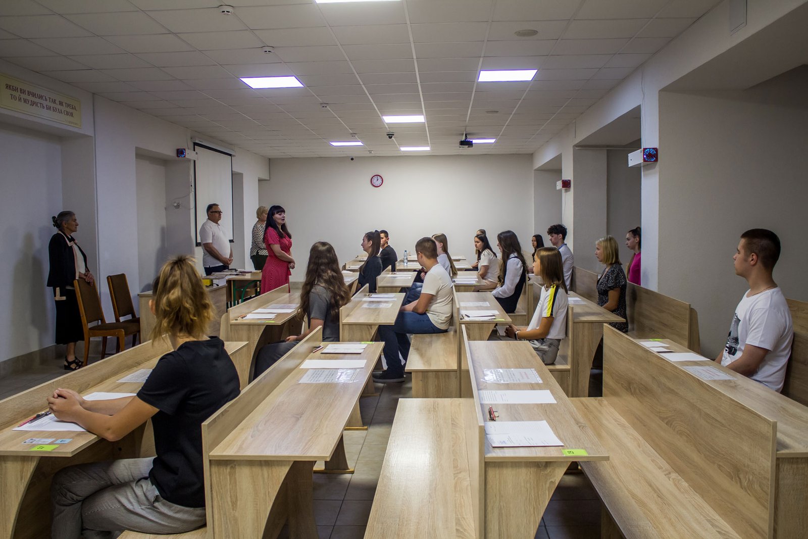 У коледжі подбали не лише про безпечні умови для вступників (в облаштованому під аудиторні заняття укритті), а й не забули про батьків. Бо 14-15-річні дев’ятикласники – це все-таки діти, і багатьом з них моральна підтримка батьків потрібна. Хоча і мами-тати-батьки-бабусі хвилюються не менше. Особливо це помітно у вихідний день, коли у коледжі їх, як видається, більше.