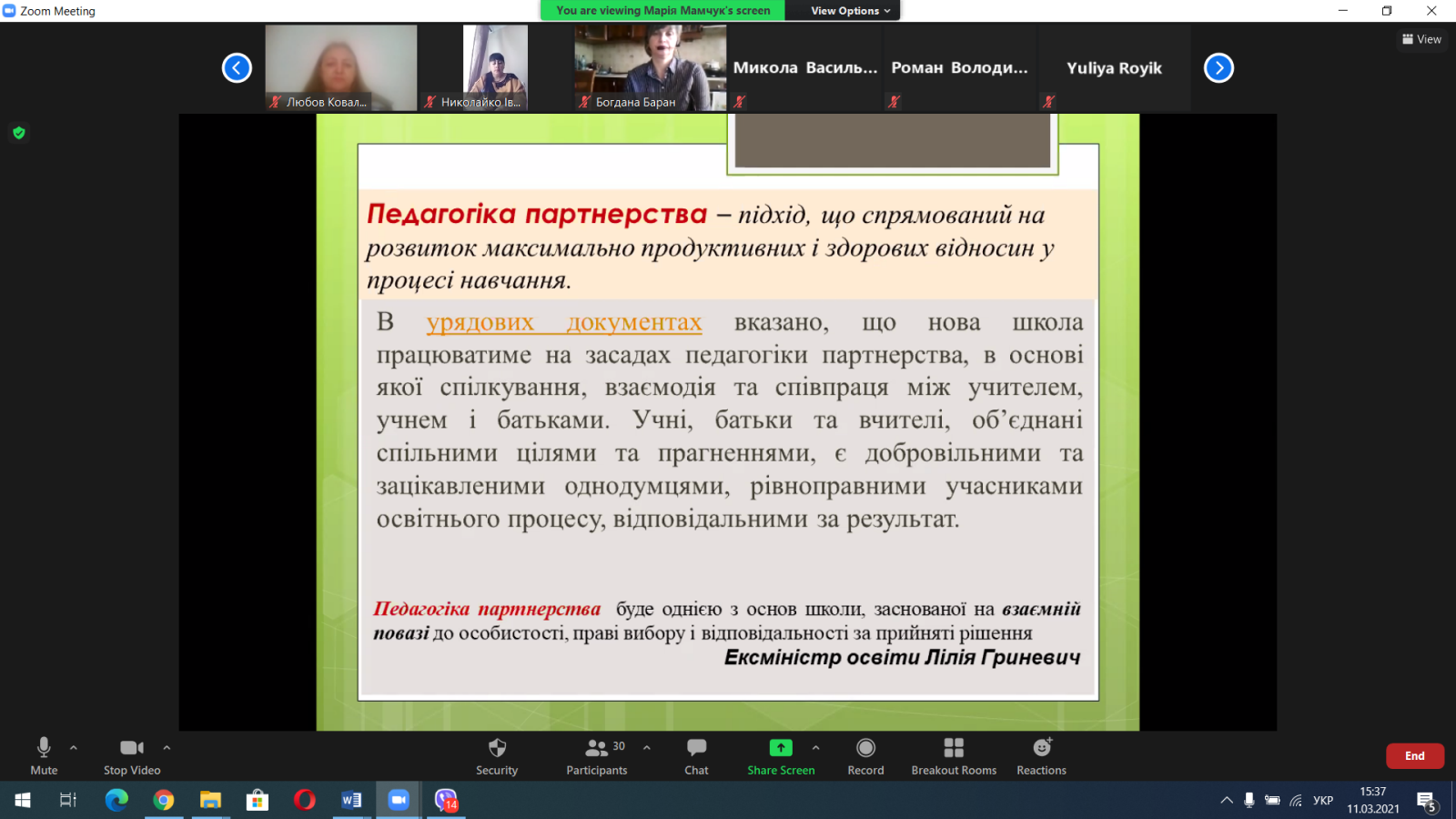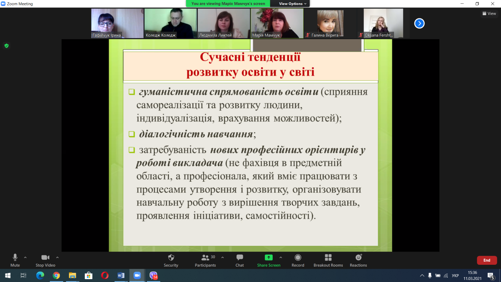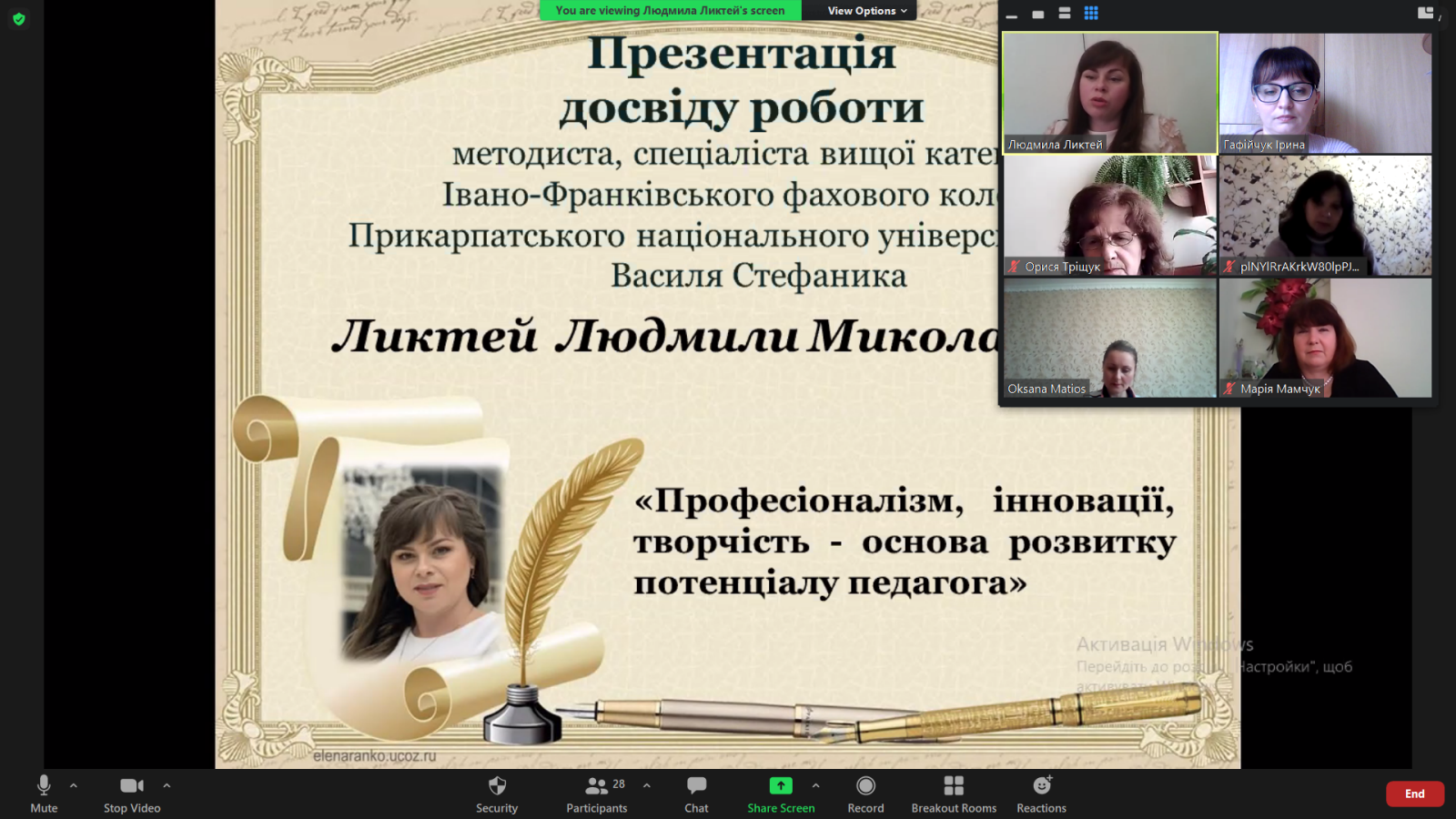 Як і було заплановано у жовтні минулого року, відбувся вебінар «Професіоналізм, інновації, творчість – основа розвитку потенціалу педагога». З презентацією досвіду роботи виступила методист Івано-Франківського фахового коледжу ДВНЗ «Прикарпатський національний університет імені Василя Стефаника» Людмила Миколаївна Ликтей. На початку своєї доповіді вона наголосила, що «професіоналізм потрібний як ніколи, інновації застосовуємо щоденно». В умовах карантинних обмежень, дистанційного навчання це особливо актуально.