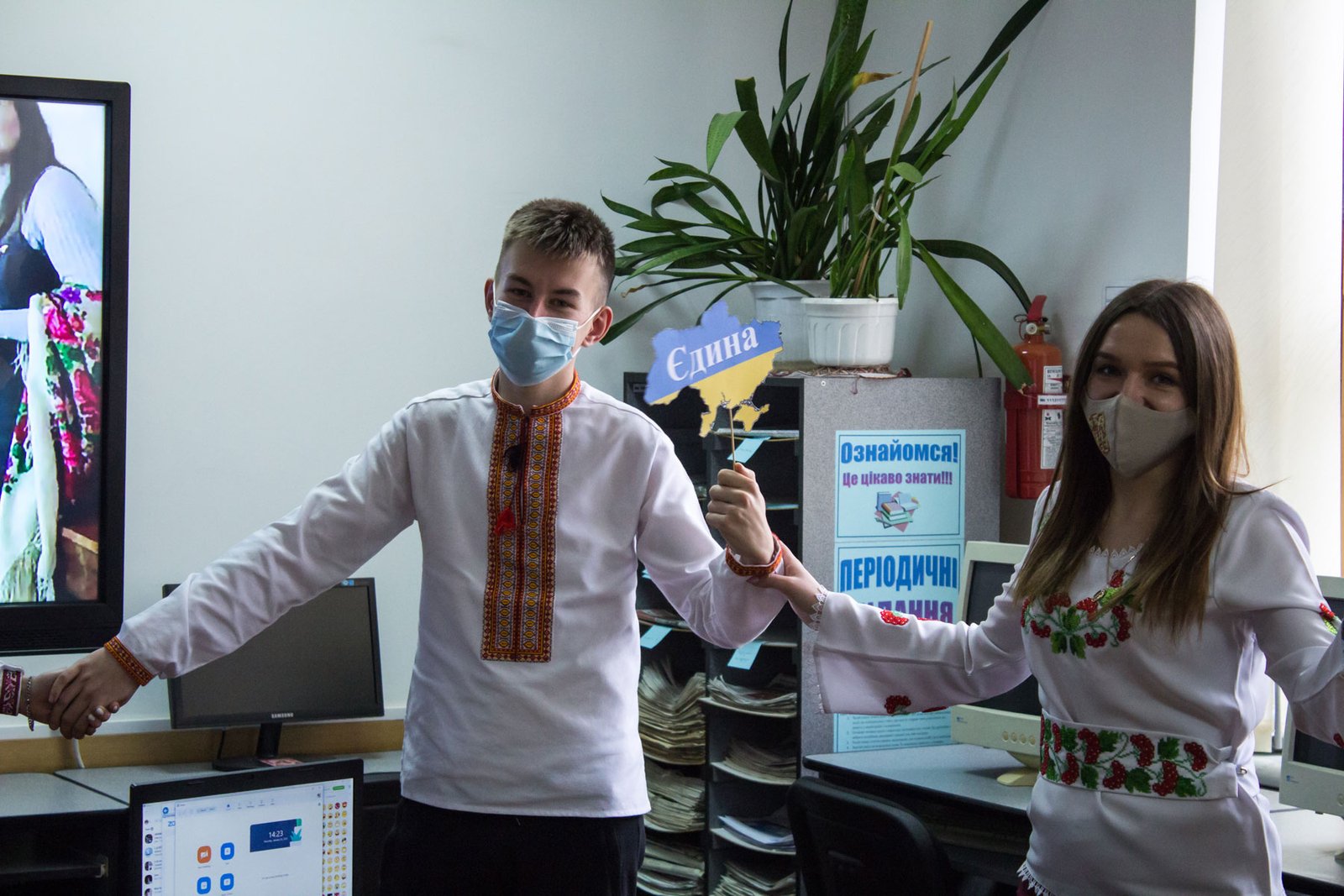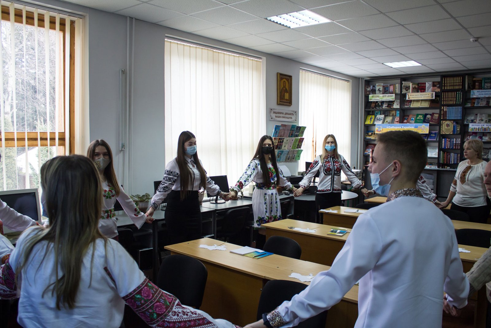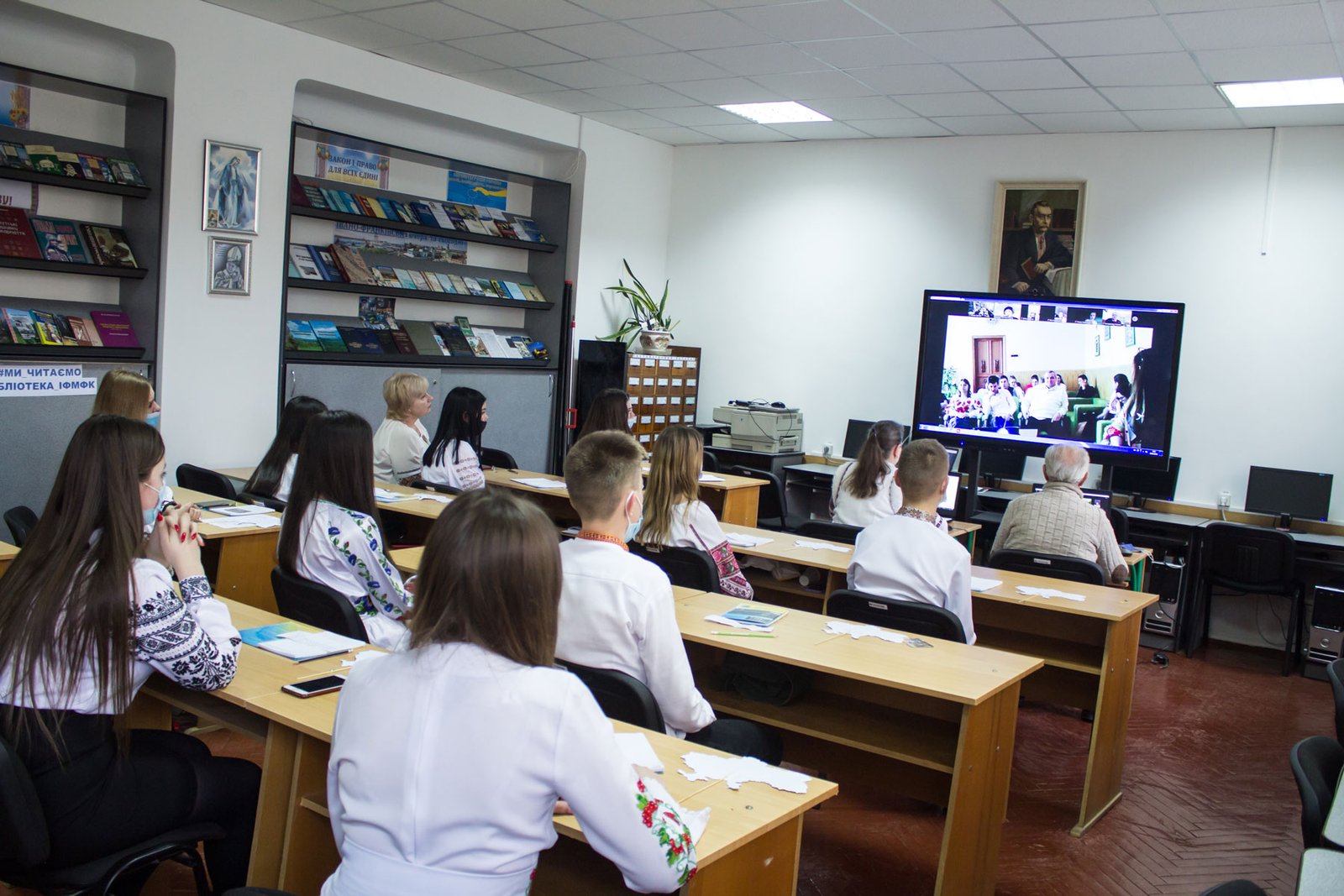 Та спершу відбулося дистанційне знайомство. Розпочалося воно з обміну привітаннями та візитівками. Студенти-першокурсники спеціалізації "Сестринська справа" Івано-Франківського медичного фахового коледжу, які зібралися в приміщенні бібліотеки, прийшли у вишиванках, інші долучилися дистанційно у Zoomi. Учасники телемосту переглянули відеорозповіді про Івано-Франківськ та Кам'янське, а також презентації обох коледжів.