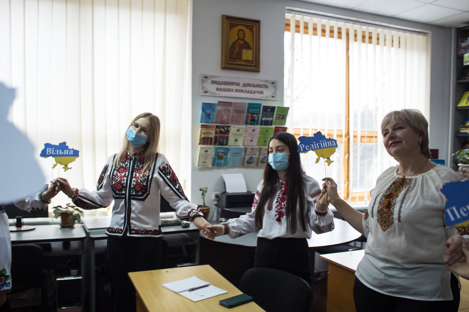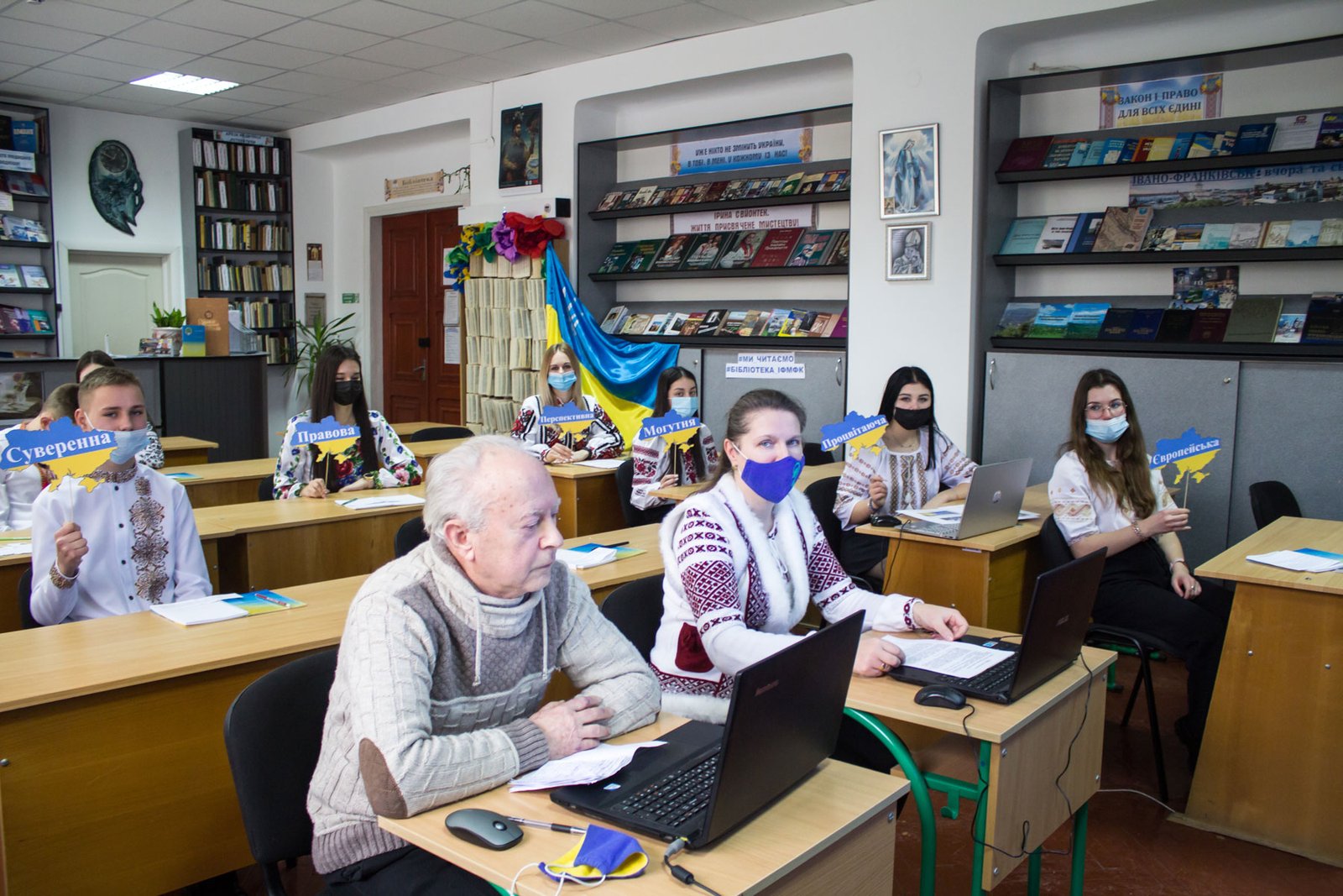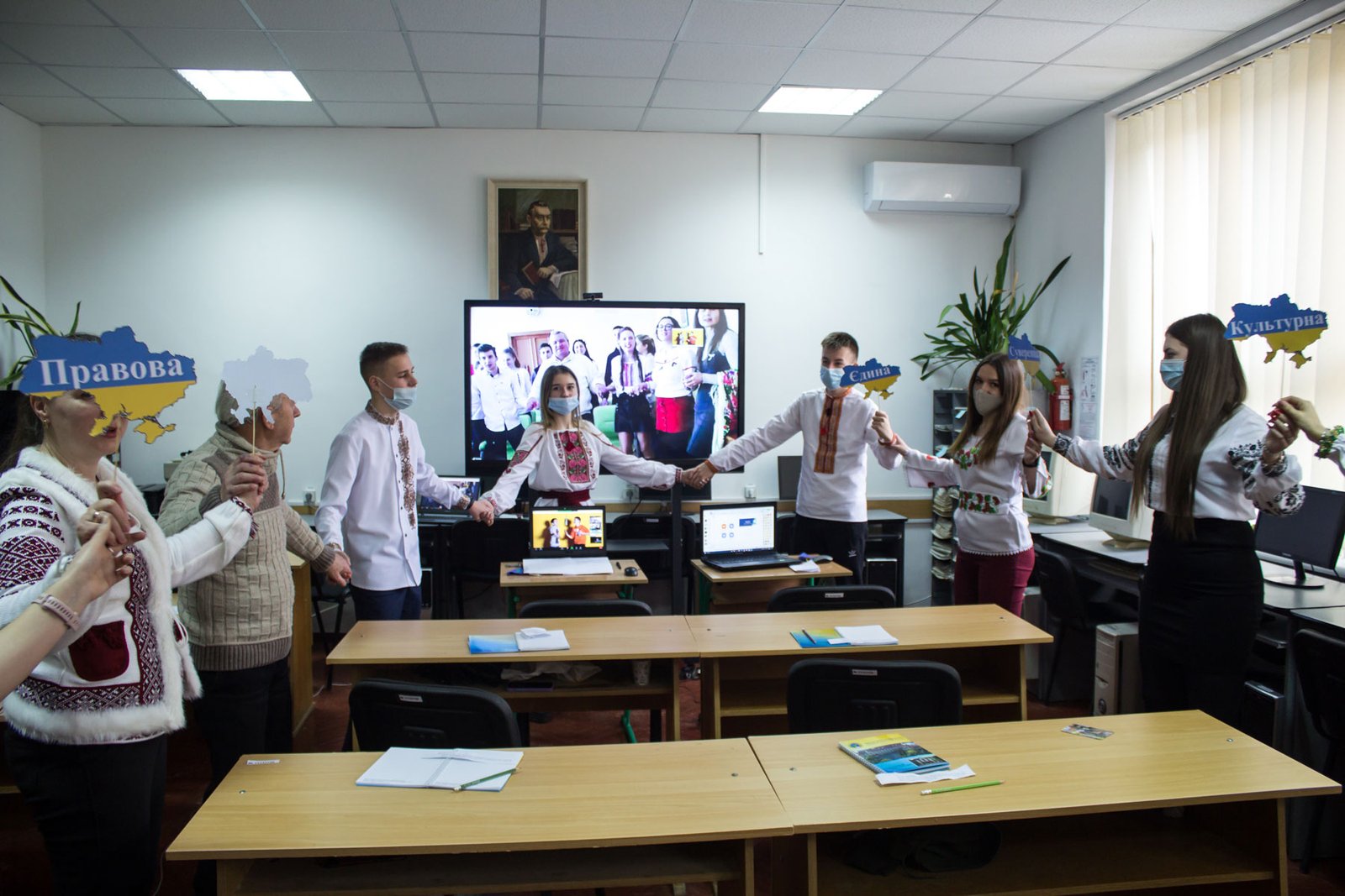 Та спершу відбулося дистанційне знайомство. Розпочалося воно з обміну привітаннями та візитівками. Студенти-першокурсники спеціалізації "Сестринська справа" Івано-Франківського медичного фахового коледжу, які зібралися в приміщенні бібліотеки, прийшли у вишиванках, інші долучилися дистанційно у Zoomi. Учасники телемосту переглянули відеорозповіді про Івано-Франківськ та Кам'янське, а також презентації обох коледжів.