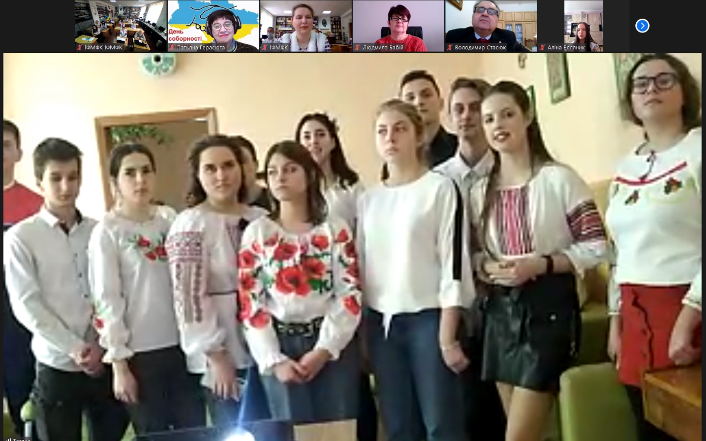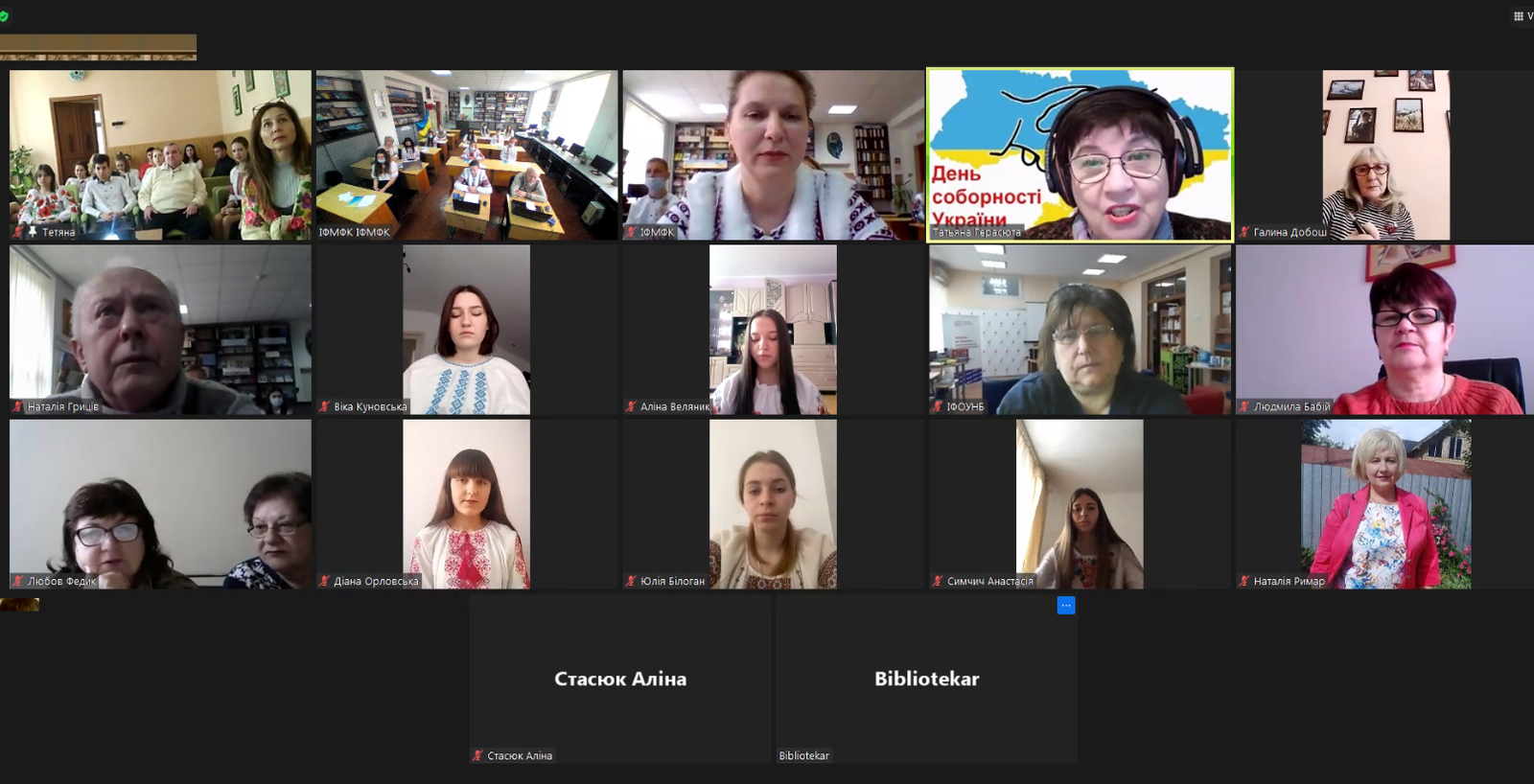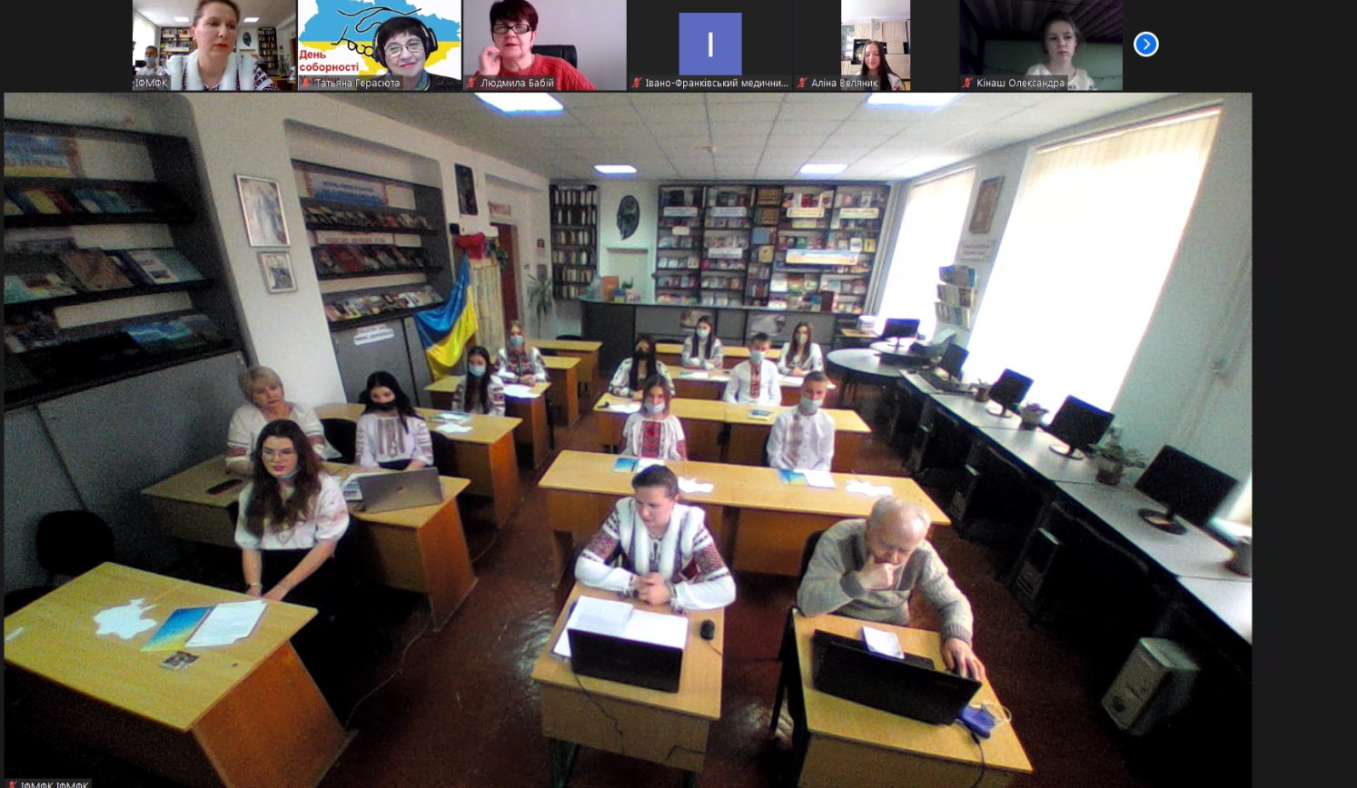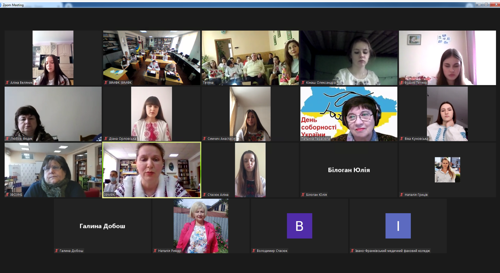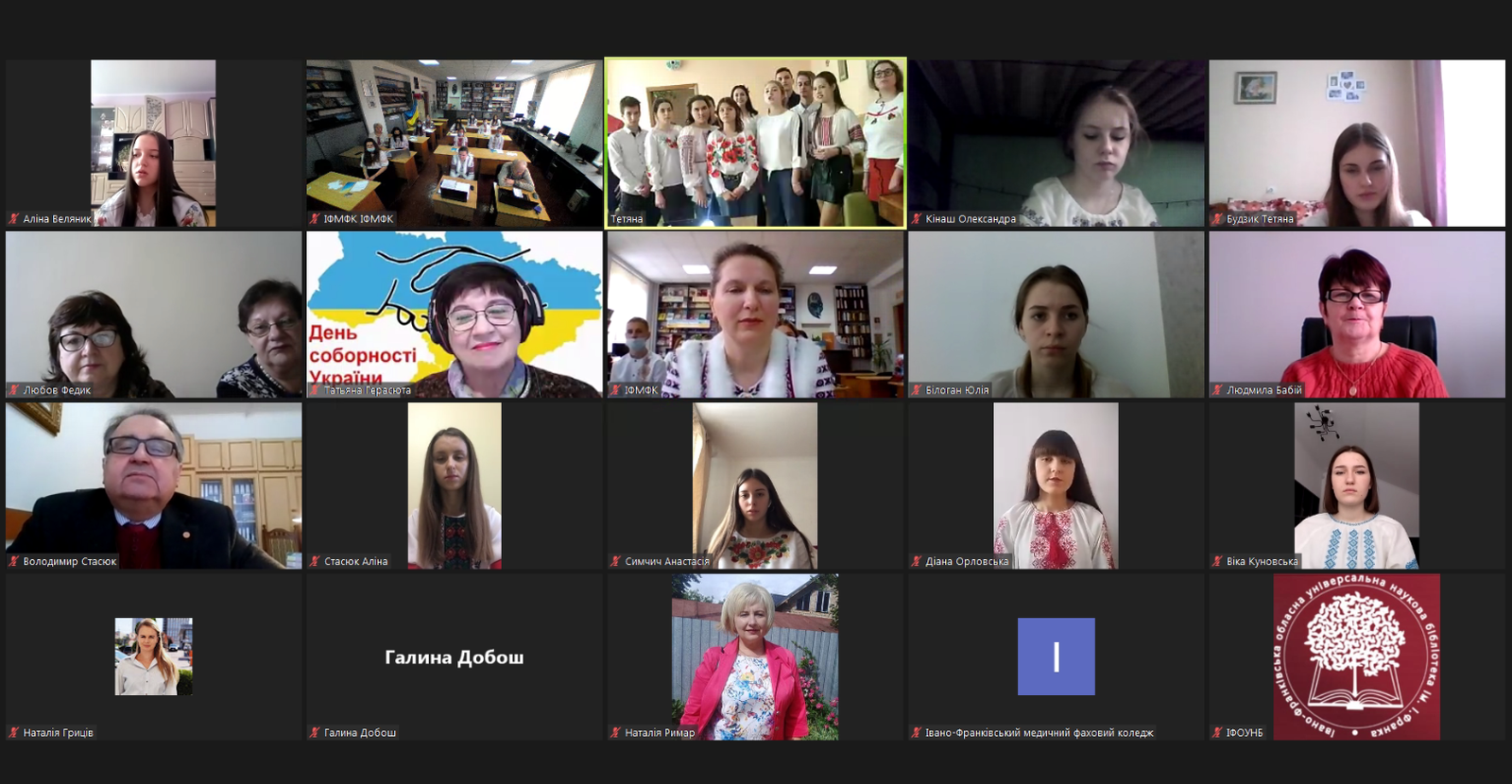 У рамках всеукраїнського онлайн-марафону, присвяченого Дню Соборності, 20 січня відбулася онлайн- зустріч студентів Івано-Франківського медичного фахового коледжу та медичного фахового коледжу м. Кам'янське Дніпропетровської області - своєрідний ланцюг єднання за допомогою онлайн-зв'язку. Телеміст - шостий для студентів з Дніпропетровщини і перший для прикарпатців - проходив на платформі Zoom.