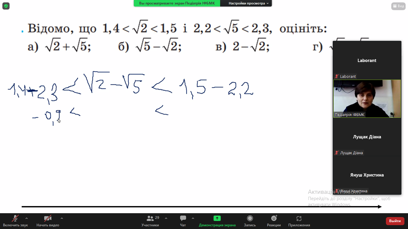 Вже з другого дня 2023 року (2 січня) в коледжі розпочались консультативні заняття з математики для всіх бажаючих студентів І та ІІ курсів спеціалізацій "Сестринська справа" та "Лікувальна справа". Такі заняття проводяться викладачкою Світланою Золотарчук щодня в онлайн-форматі із використанням застосунку Zoom за певним розкладом (2 та 3 пари). Пані Світлана, з досвіду роботи, обрала теми із предмету, які важко засвоюються студентами, склала програму консультацій, графік їх проведення. Незважаючи на канікули, до занять долучаються багато бажаючих, активно співпрацюють з викладачкою, а не є просто пасивними слухачами. Такі консультативні заняття триватимуть до 20 січня.