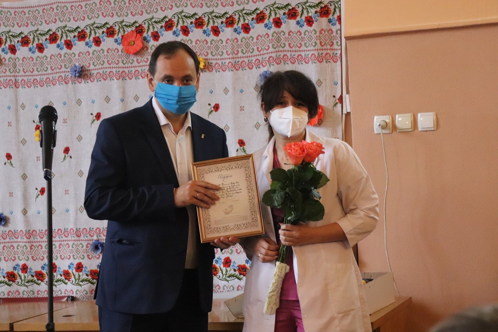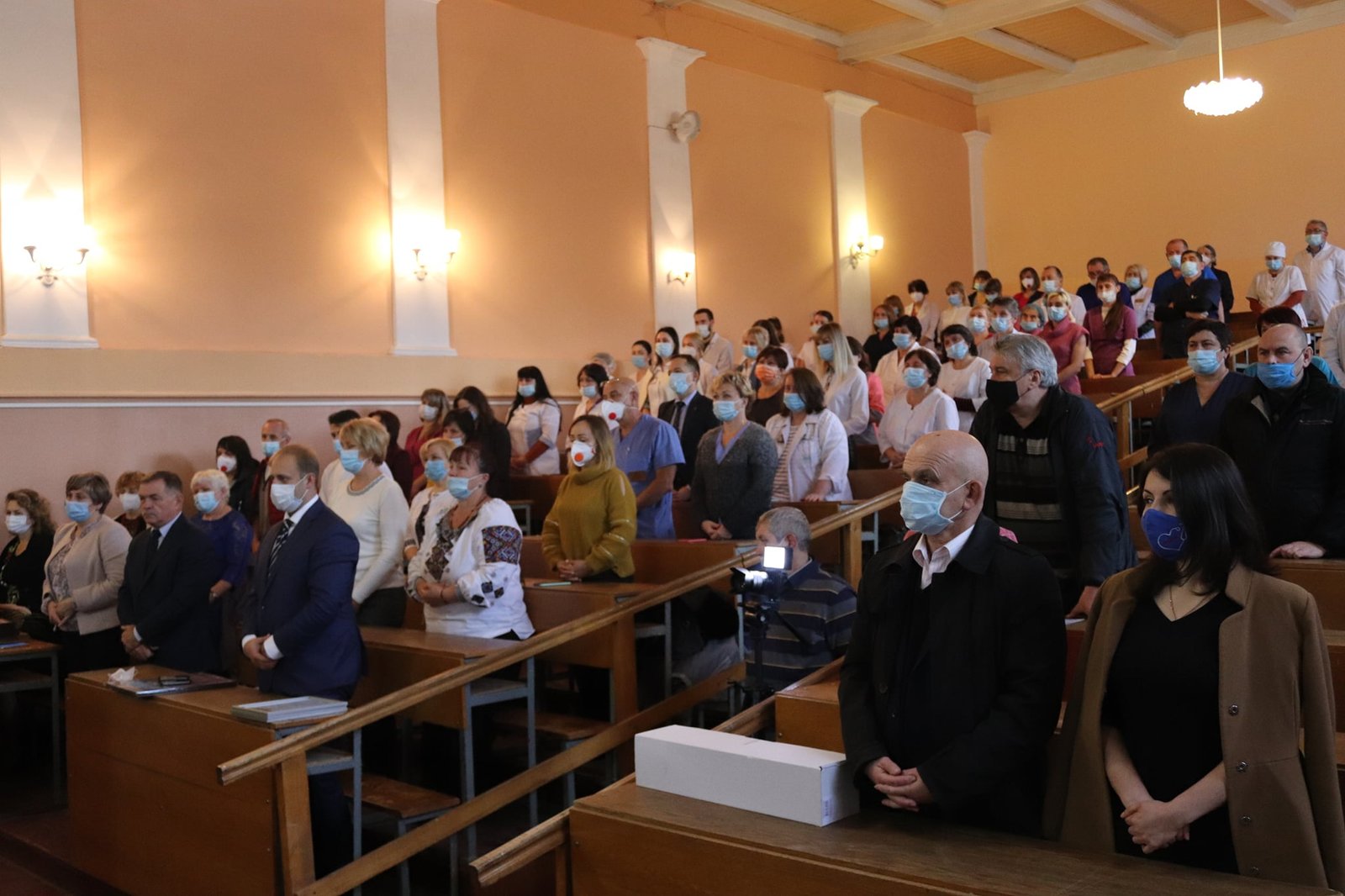Під час урочистостей були згадки про історію лікарні, слова вітань і вдячності за працю. Представники нашого коледжу – заступник директора з навчально-виробничої роботи Ярослав Олександрович Гарко та заввідділу Олеся Василівна Сухоручко привітали колектив лікарні з такою поважною датою та подарували бактерицидний рециркулятор BactoSfera з таймером, дуже важливий в умовах боротьби з пандемією коронавірусу. А для надійної його роботи були додані деякі допоміжні матеріали, зокрема, фірмовий блокнот з ручкою для фіксації часу роботи та літрова ємність надзвичайно якісного алкоголю для обробки вентиляторів рециркулятора і рук того, хто буде це робити (і жартівливе застереження: використовувати лише за призначенням для змазування деталей, а не для традиційного вживання всередину).