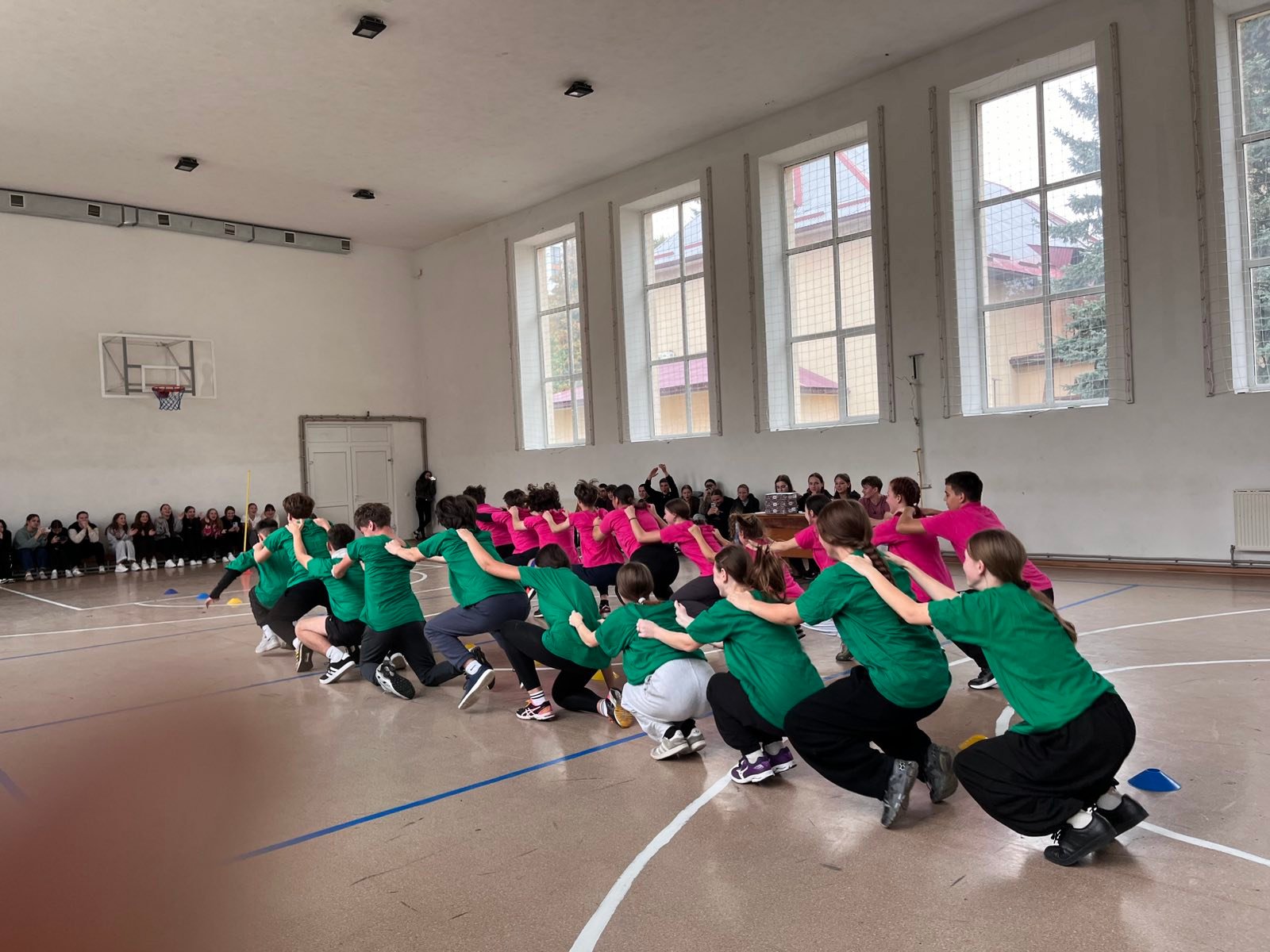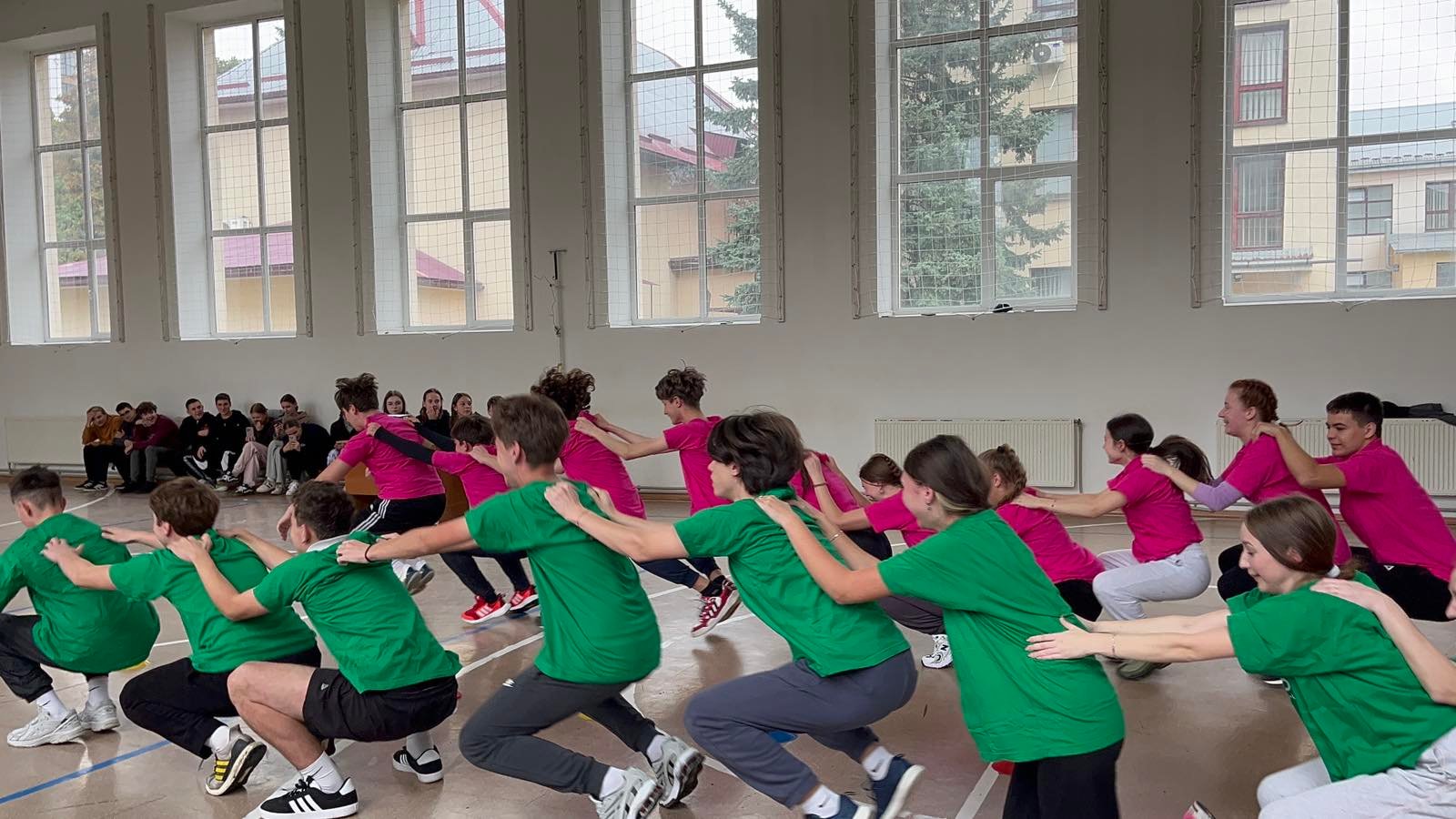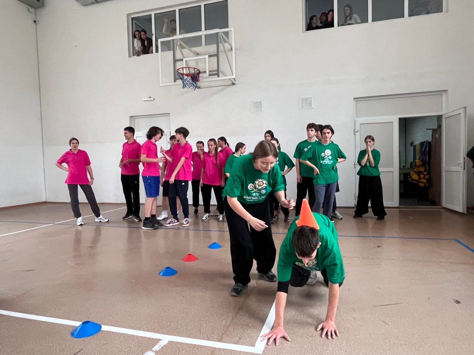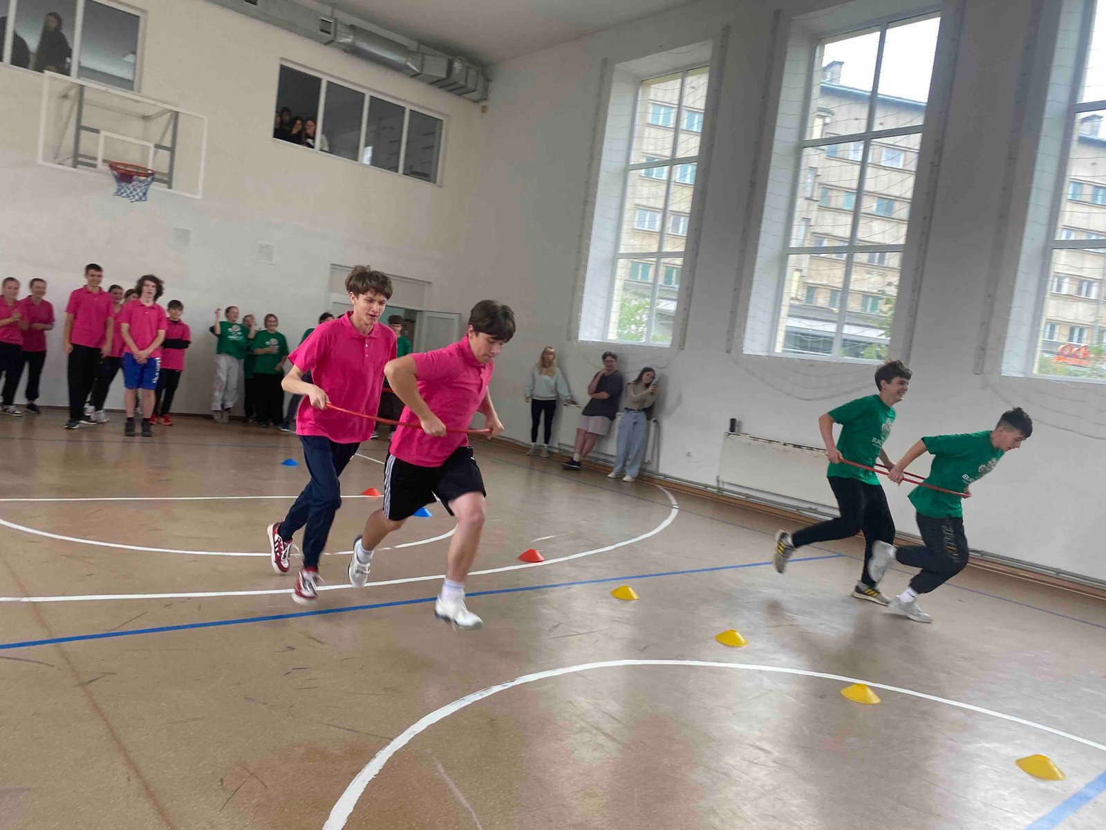 А після веселої розминки розпочалися конкурси. У кожній команді було по десять учасників, які показували кмітливість під час інтелектуальних завдань, спритність і витривалість – під час спортивних вправ і естафет. Були конкурси з м’ячем, обручем, спортивними палицями. Серед них особливий як для майбутніх медиків, які готуються евакуювати поранених: перенесення на руках товаришів по команді.