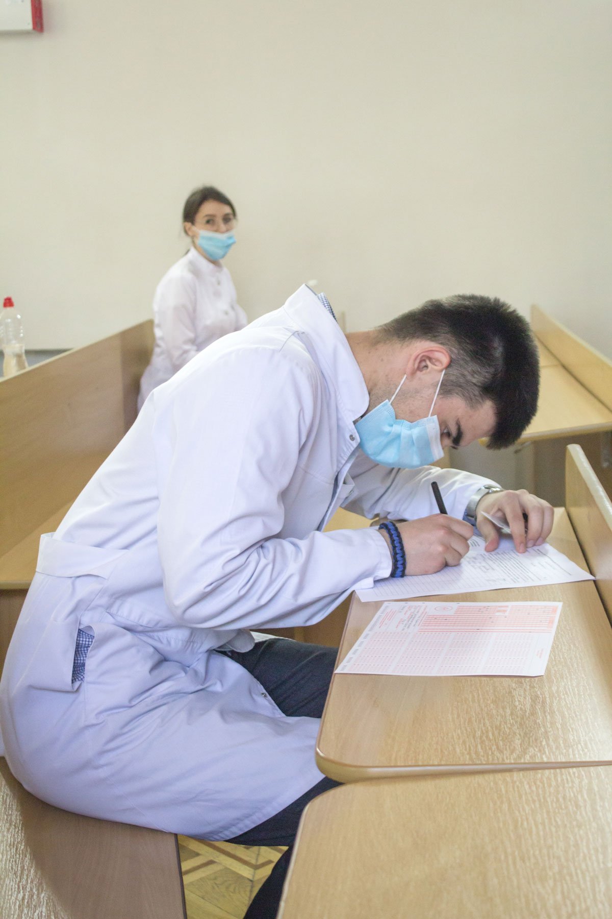 За день до фельдшерів, 8 червня, Крок.М. складали студенти ІV курсу спеціалізації «Сестринська справа», яких було 190. Фельдшерів менше – 65 випускників, але, як і у медсестер, іспит проходив у дві зміни. Інші організаційні моменти теж однакові: звірка документів, поліцейський з металошукачем, дотримання вимог санітарно-епідемічної безпеки (вимірювання температури, соціальна дистанція, захисні маски, санітайзери, бактерицидні рециркулятори), відеоспостереження з відеозаписом, який відправляється у Київ.