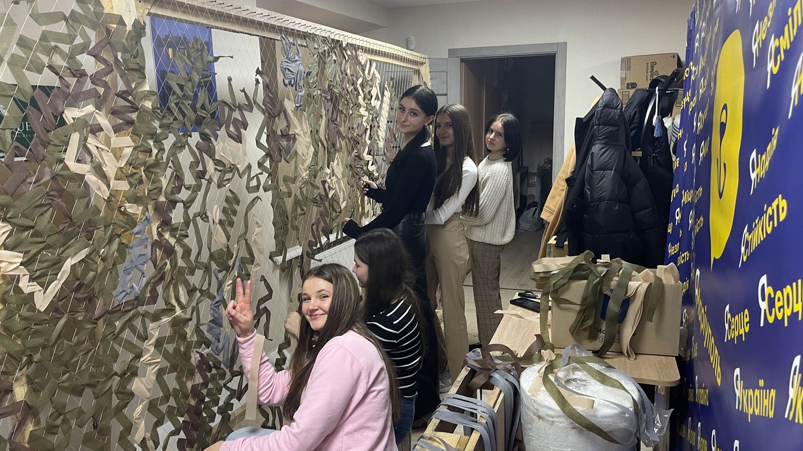 Громадська організація забезпечує матеріалами і відповідно облаштованим місцем, студентський внесок – це робочі руки. І усвідомлення, що це особистий внесок кожного у підтримку наших військових.