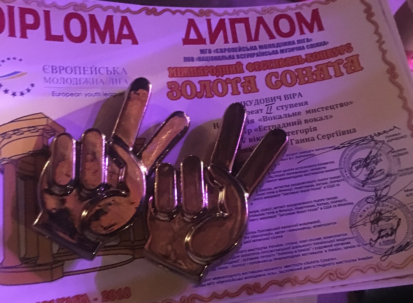 За результатами Міжнародного телевізійного фестивалю-конкурсу мистецтв «Золота соната - 2018» Штейнберг Христина стала лауреатом ІІ ступеня у номінації «Вокальне мистецтво», жанр «Естрадний вокал» IV вікова категорія. Анкудович Віра – лауреат ІІ ступеня у номінації «Вокальне мистецтво», жанр «Естрадний вокал» V вікова категорія.