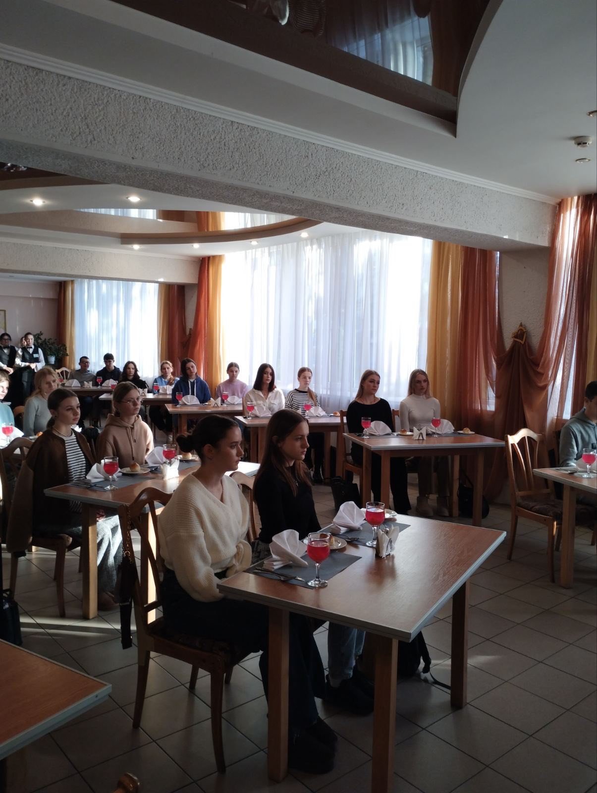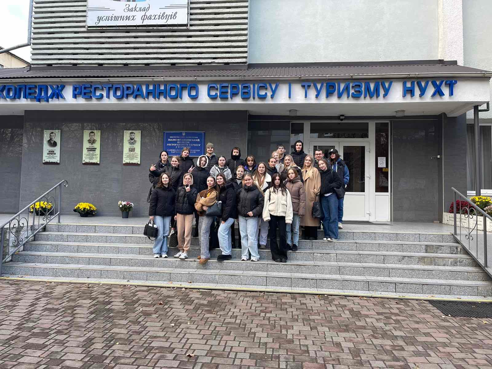 Студенти цієї групи разом із класним керівником Олександром Кравцем в минулому навчальному році вже приходили в гості у коледж ресторанного сервісу і туризму на майстерклас з гостинності. А теперішній захід - майстерклас зі споживання риби. Як правильно їсти рибу, якими виделками, як подавати - виявилось, що багато чого не знали. Тепер - знатимуть.