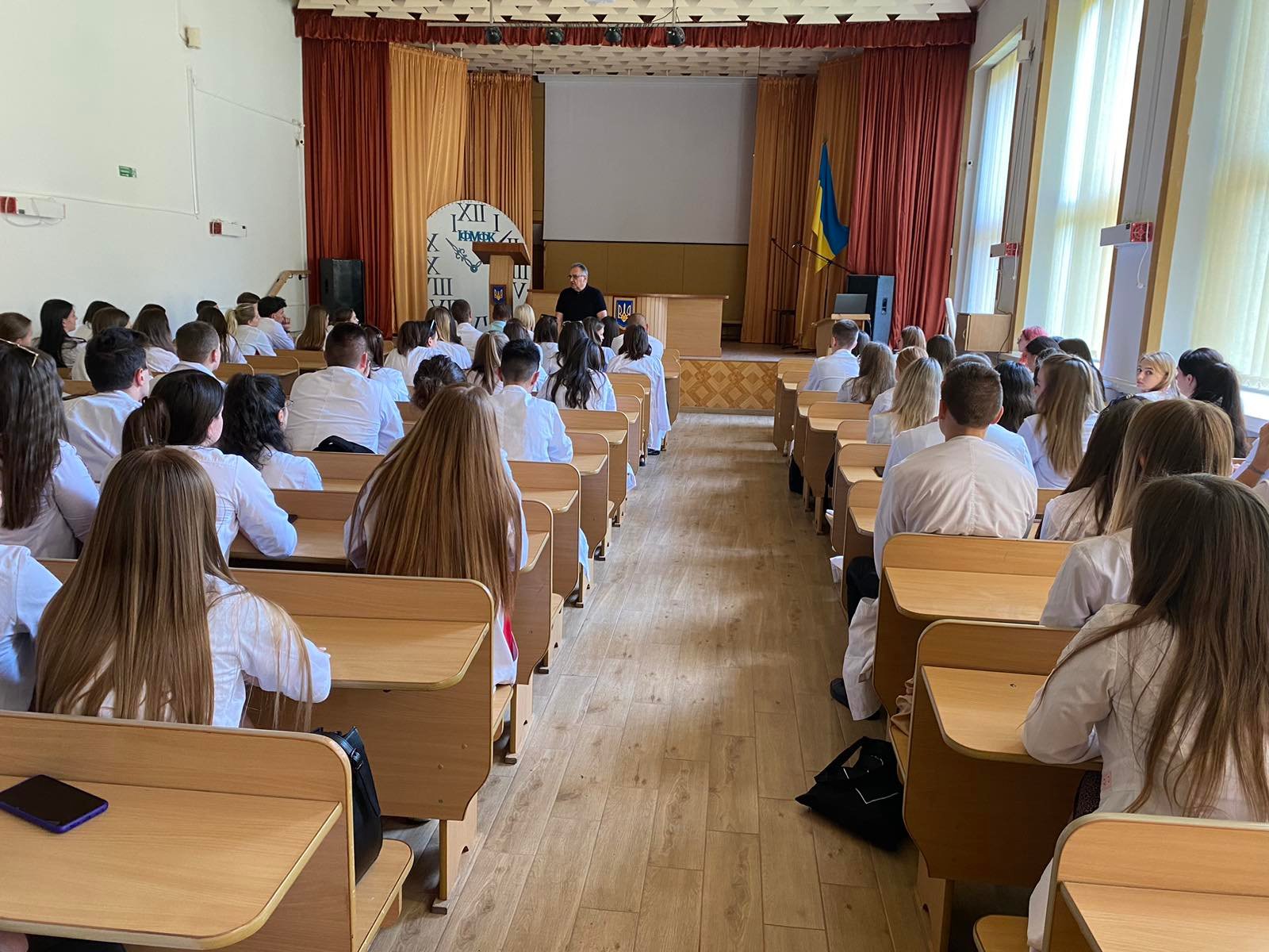 Зі здобувачами освіти випускного курсу зустрілися директор ІФМФК Володимир Васильович Стасюк, заступник директора з навчально-виробничої роботи Василь Миколайович Василюк, завідувачка відділення Олеся Василівна Сухоручко.