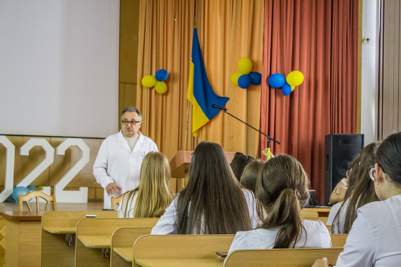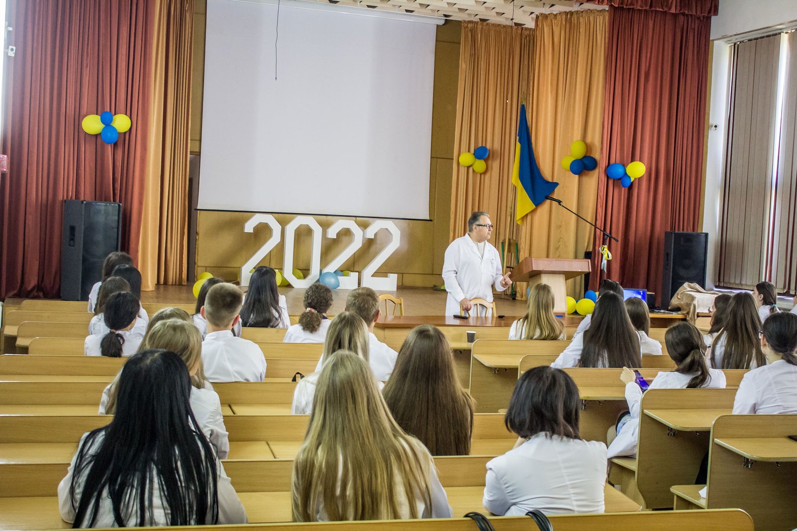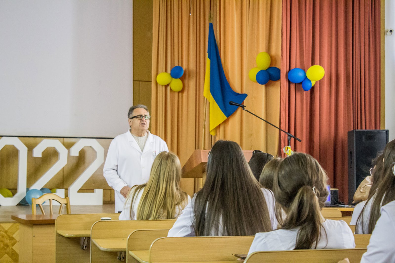 Наголосив, що нема непотрібних чи неважливих предметів. Хіба мова, якою спілкуватимуться з пацієнтами, не має значення? Хіба не потрібно добре знати історію, яку по-своєму намагається переписати путін? А в медицині хіба не варто знати медичну хімію, щоб розбиратися з розчинами, чи фізику – для орієнтації в сучасній апаратурі? І хибною є думка, що такі предмети нецікаві, а от як почнуться медичні…Та до того часу можна втратити смак до навчання, – застерігав першокурсників Володимир Васильович.