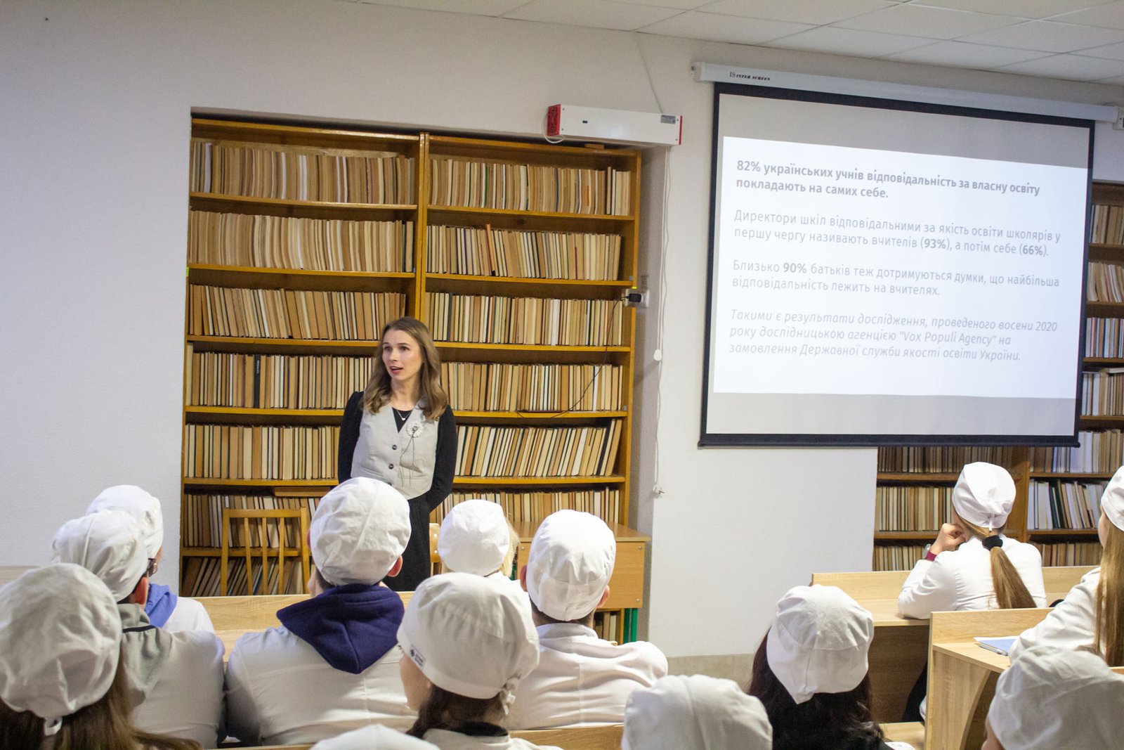 Власне, це і було основною темою заходу. Здобувачі освіти активно обговорювали питання освіти в Україні. Генерували ідеї, як можна долучитись до ініціатив щодо покращення освіти та життя, побороти освітні втрати і як вони ще можуть долучитись до розв’язання глобальних проблем.