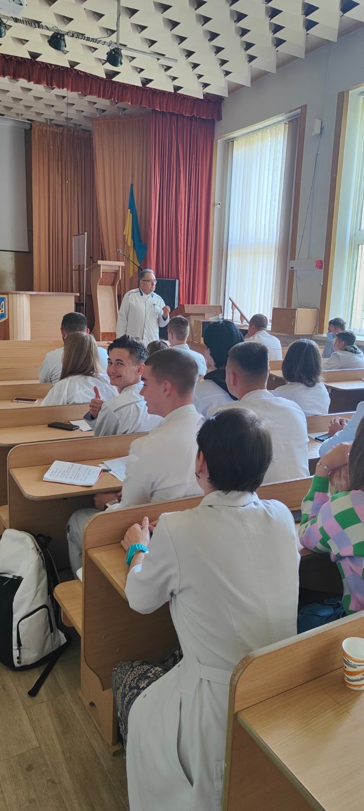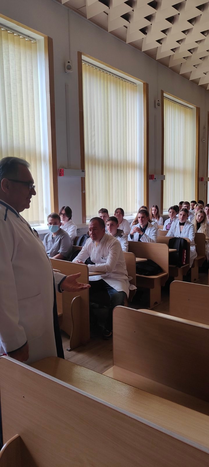 Насамперед Володимир Васильович окреслив перспективи кожного курсу (вони різні у студентів першого курсу і випускного), розповів про себе, колишнього випускника Івано-Франківського медичного училища, який понад пів століття тому закінчив найстарший на Прикарпатті медичний освітній заклад (в наступному році буде 85 років з часу створення!).
