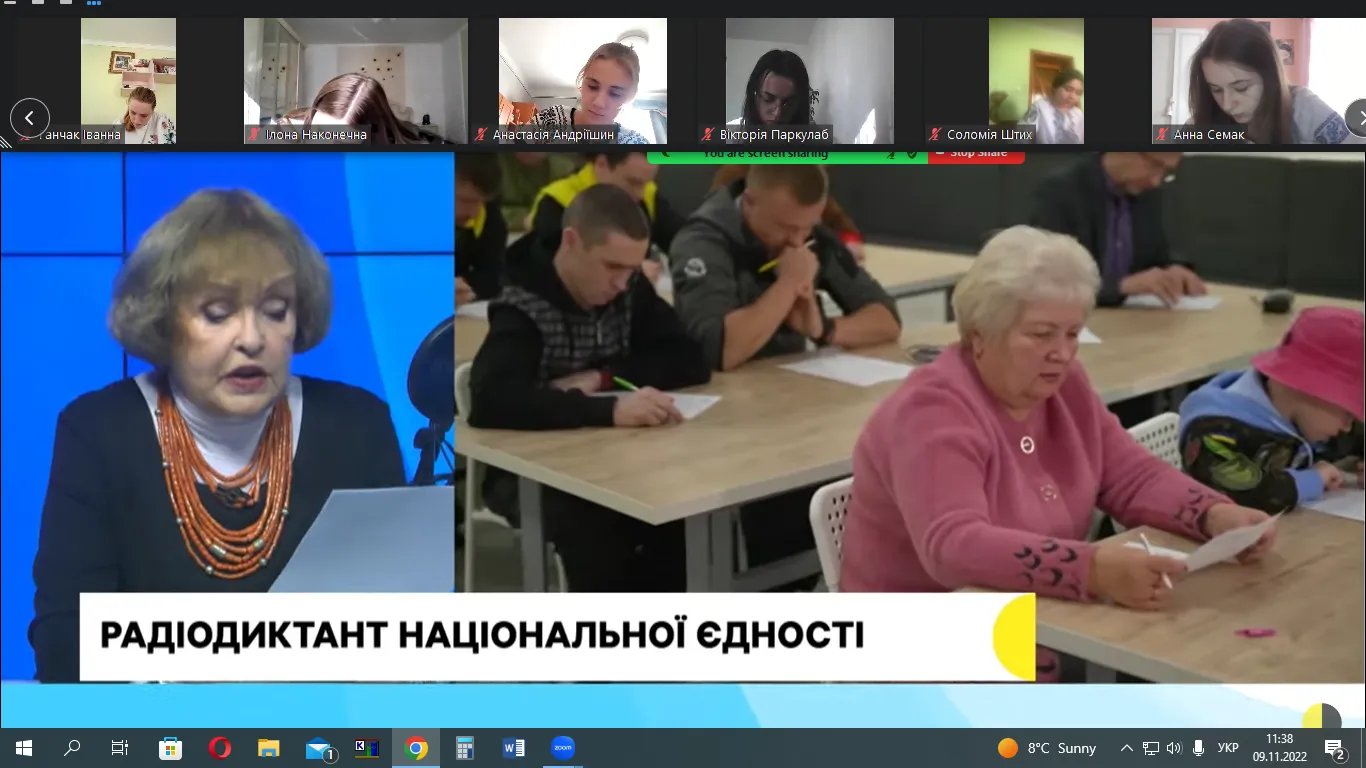 Представники Івано-Франківського медичного фахового коледжу долучилися до написання ХХІІ Всеукраїнського радіодиктанту національної єдності, який проводиться 9 листопада, у День української писемності та мови. Частина писали в приміщенні коледжу, частина – дистанційно. До речі, у 2022 році ІФМФК оголошено «територією без російської мови».