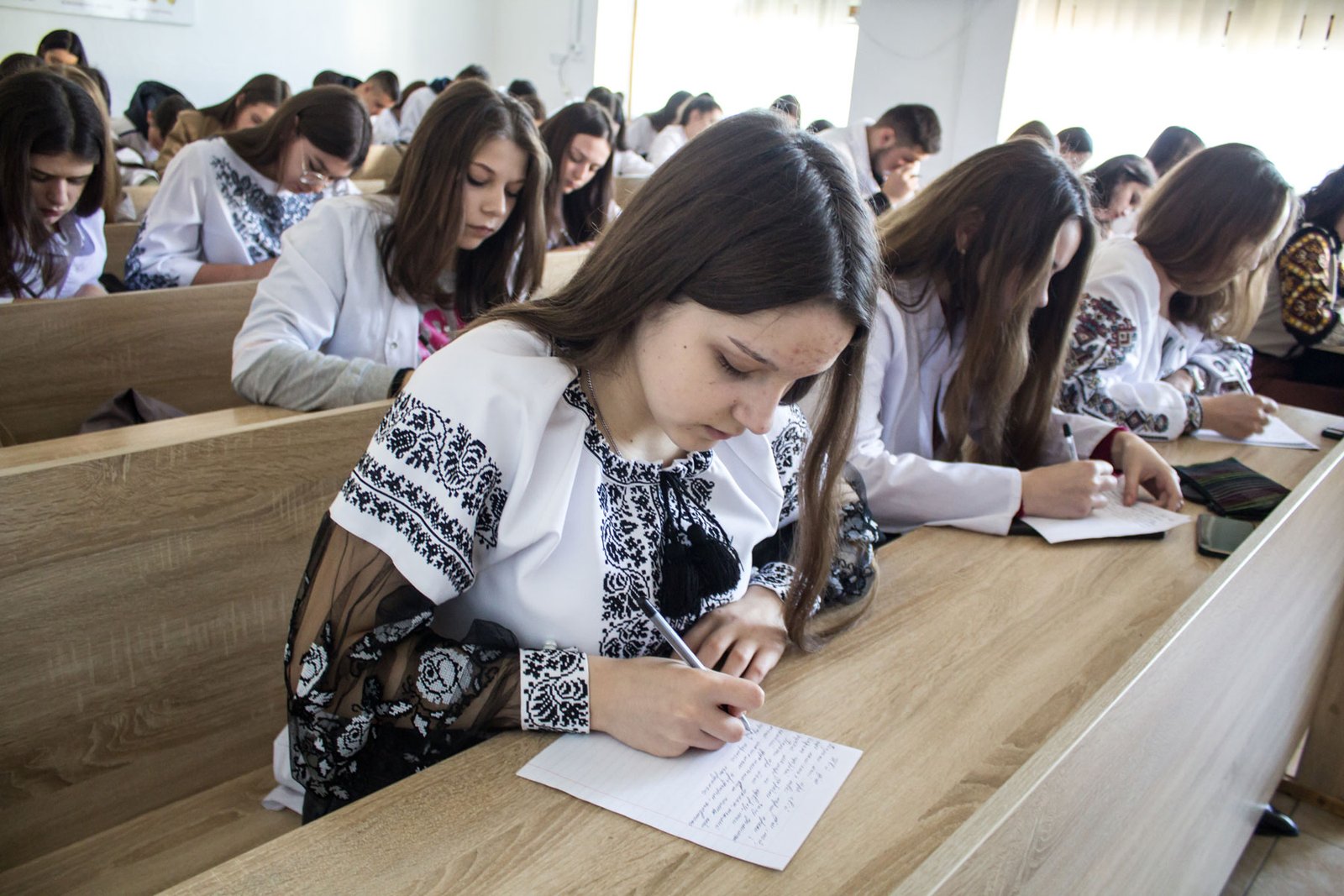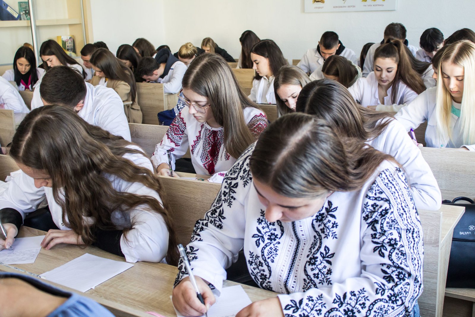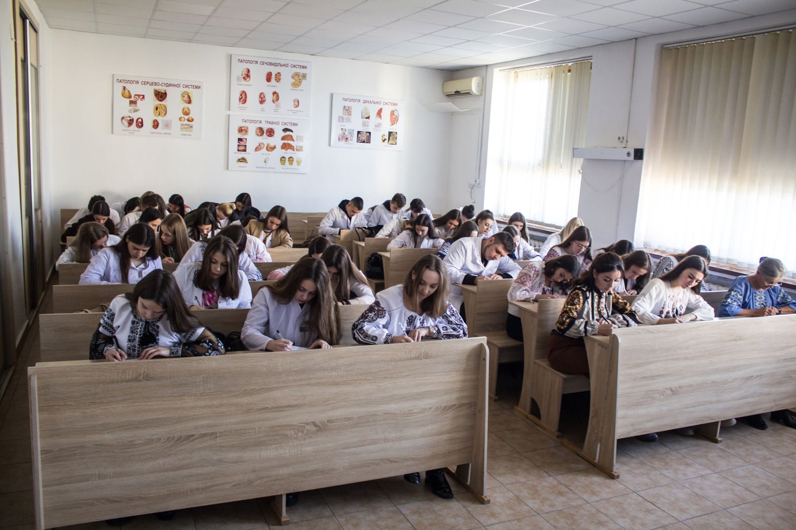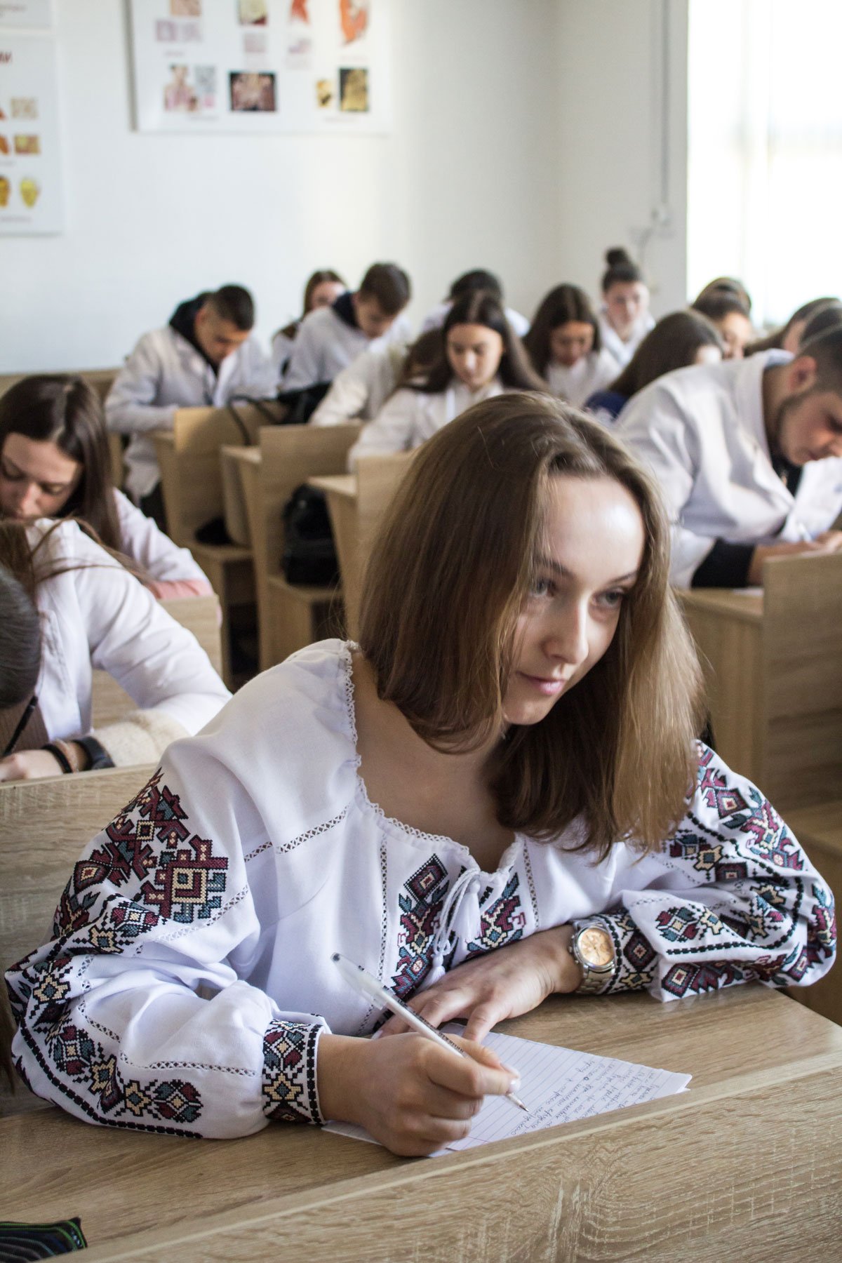 В ІФМФК диктант очно писали студенти другого курсу спеціалізацій Сестринська справа і Лікувальна справа, дистанційно на платформі Zoom – першого курсу та викладачі. У коледж багато хто за традицією цього дня прийшов у вишиванці. Очно диктант писали в аудиторії на другому поверсі, як і минулого року.
