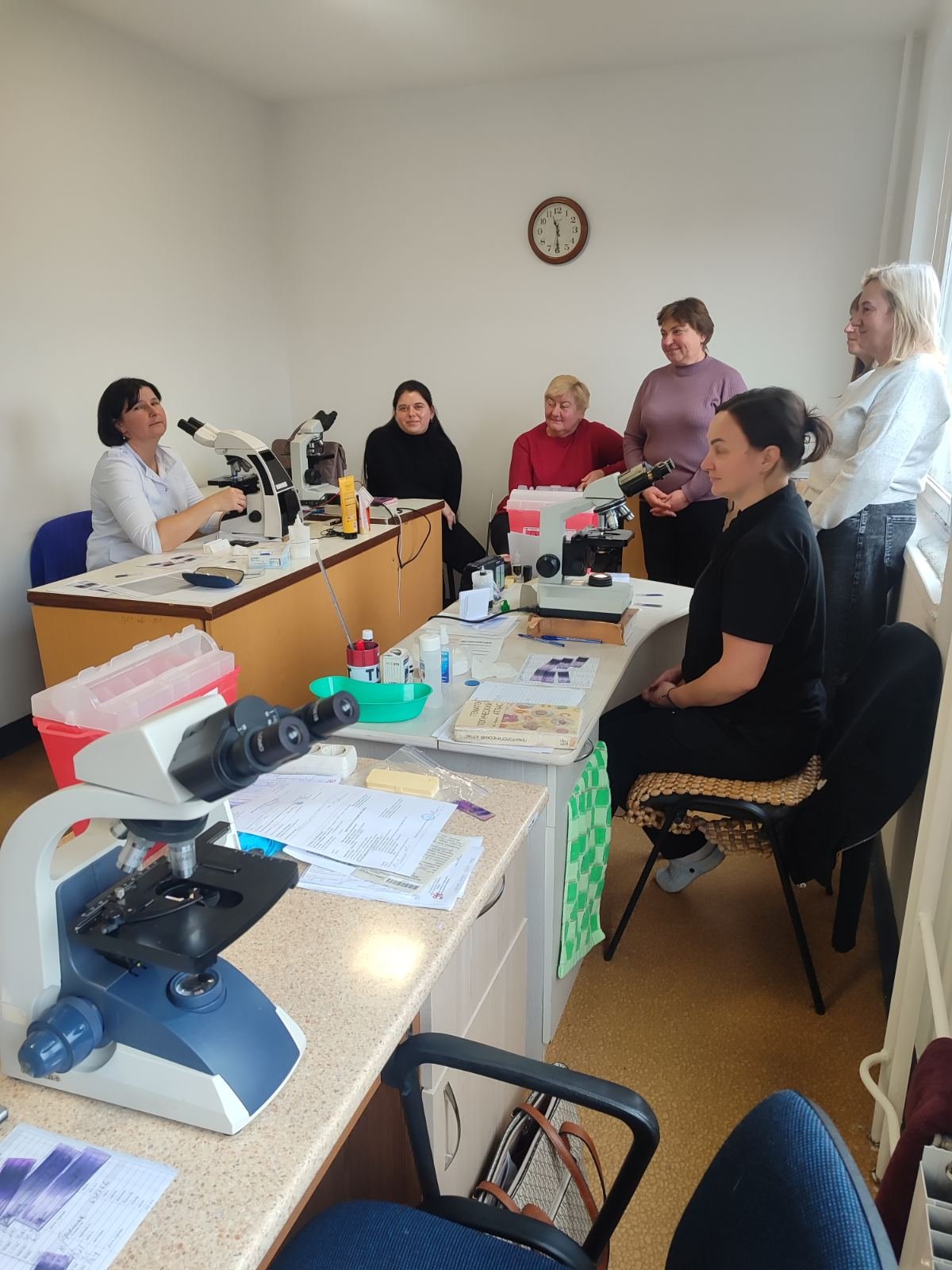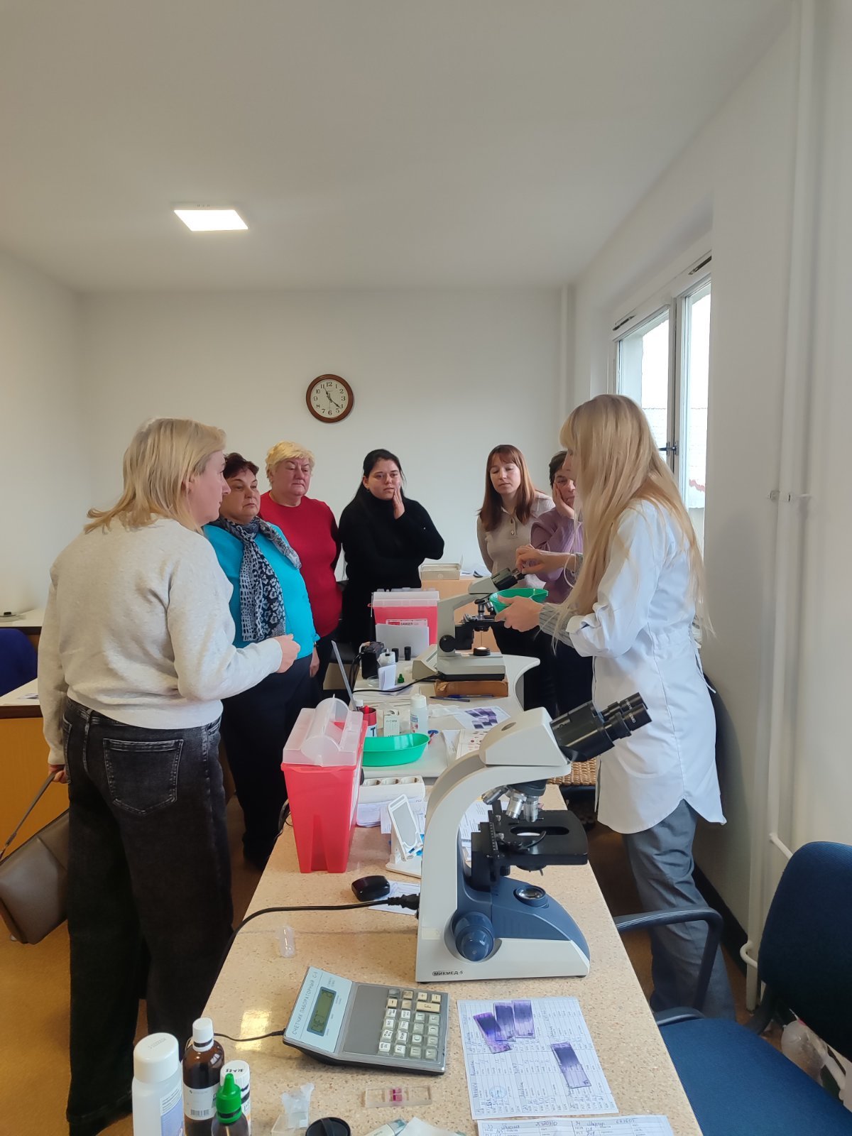 Курсанти ознайомились з правилами техніки безпеки в клініко-діагностичній лабораторії (викладач Плахотна О.М.), удосконалили свої професійні навички з проведення гематологічних та імунологічних досліджень, вчились проводити лабораторні дослідження за допомогою швидких тестів (викладачі Андрішак Л.В., Іванюк У.І.).