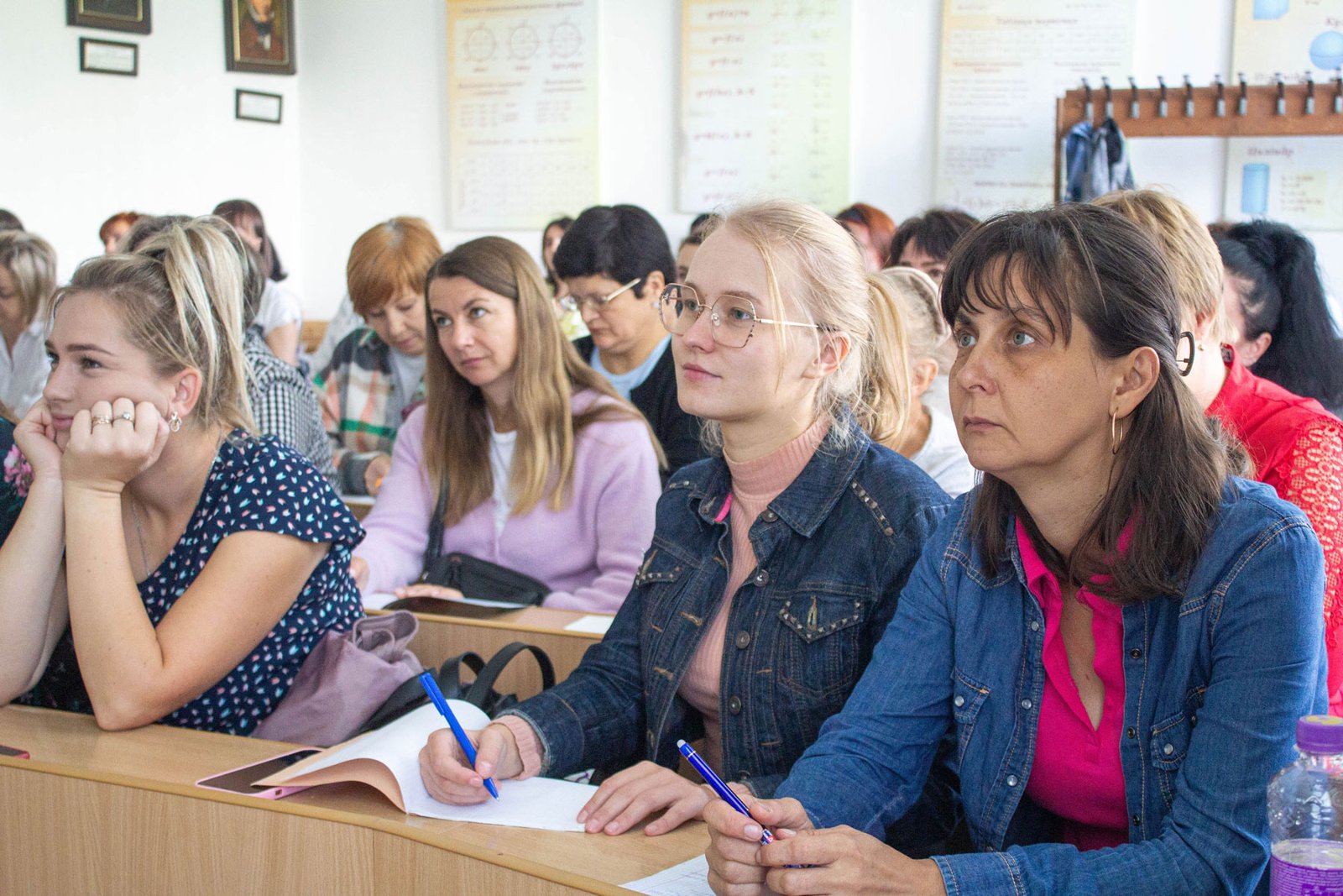 Заступниця директора з післядипломної роботи Олександра Денисівна Воєвода ознайомила слухачів з матеріально-технічною базою коледжу, особливостями проведення на відділенні циклів спеціалізації та тематичного удосконалення відповідно до наказу МОЗ України від 10.11.2022 року «Про подальше удосконалення системи післядипломної освіти та безперервного професійного розвитку фахівців з фаховою передвищою, початковим рівнем вищої медичної і фармацевтичної освіти».