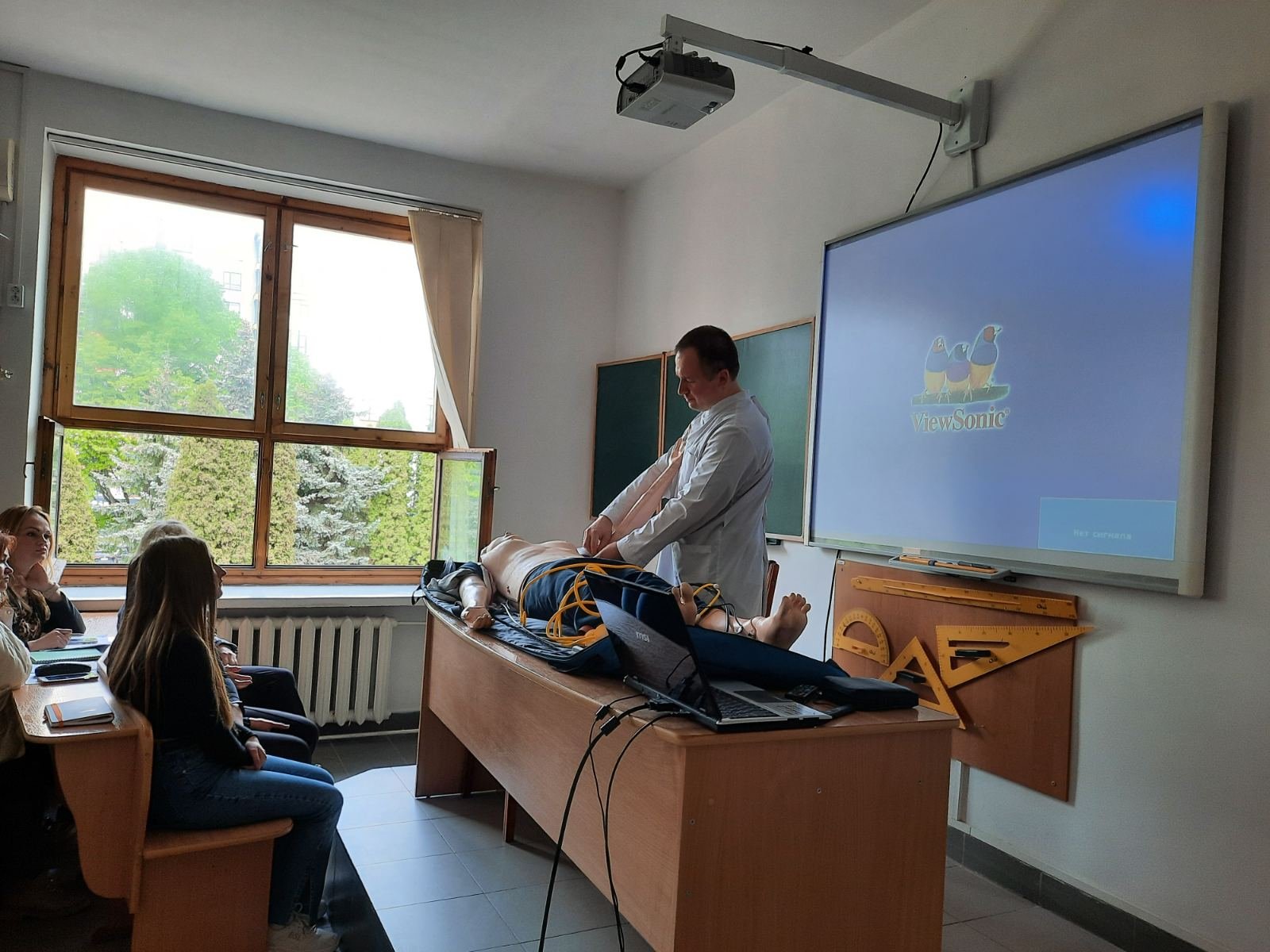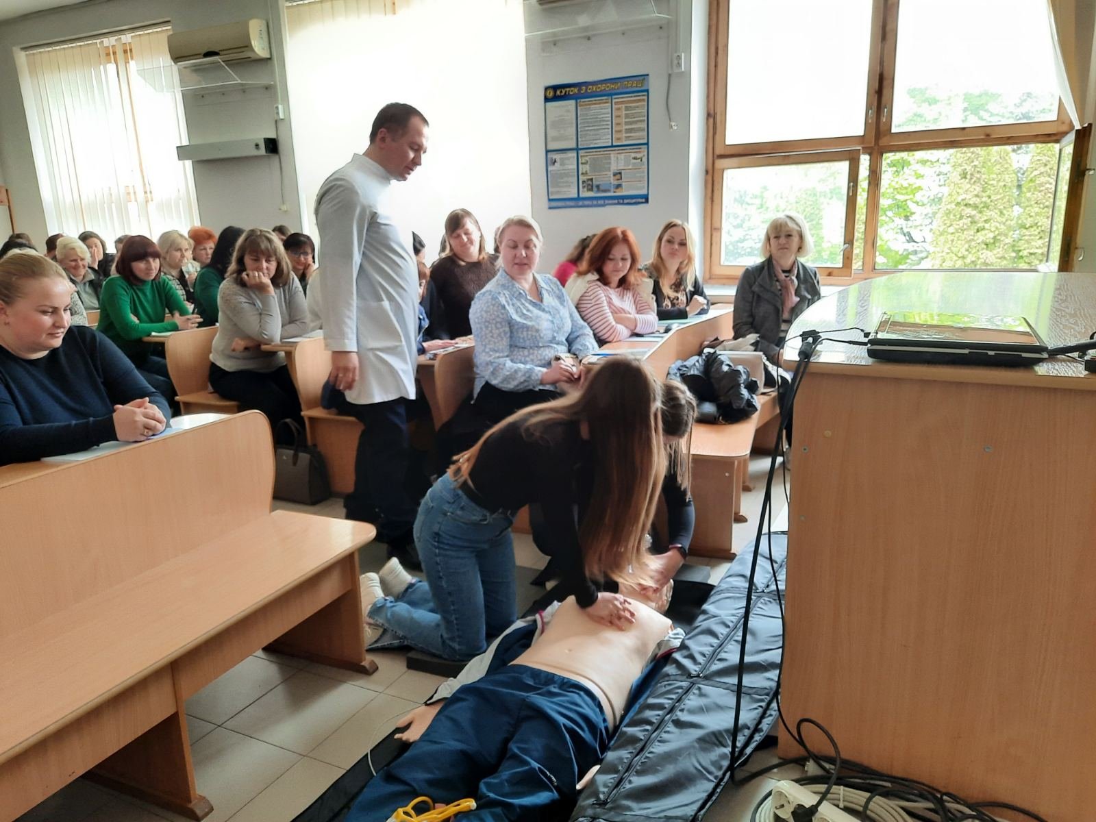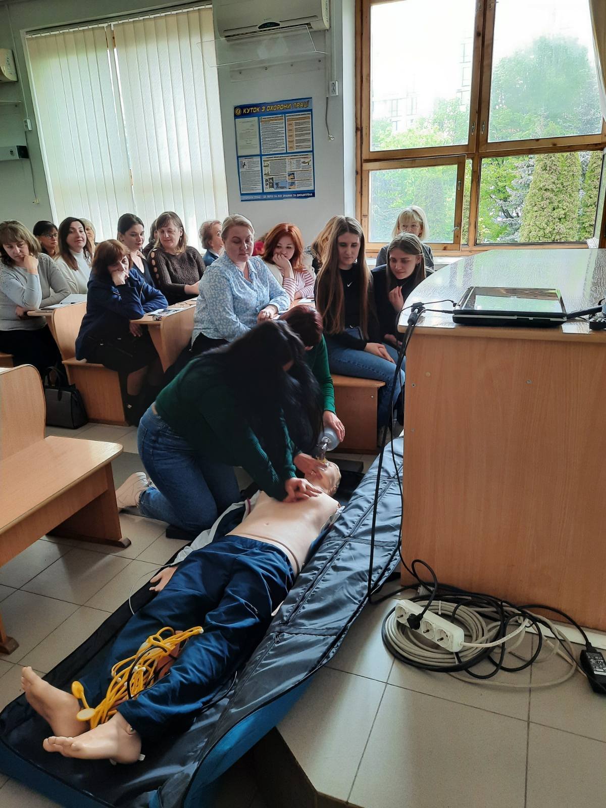 Викладач хірургії Веприняк Микола Миколайович провів із курсантами практично-орієнтоване заняття під час якого були відпрацьовані навички користування військовою індивідуальною аптечкою, мішком Амбу, проведення серцево-легеневої реанімації, у т.ч особливості проведення СЛР із застосуванням АЗД на реанімаційному тренажері-симуляторі, який коледж отримав у подарунок від Klinikum Ernst von Bergmann gGmbH (Потсдам, Німеччина).