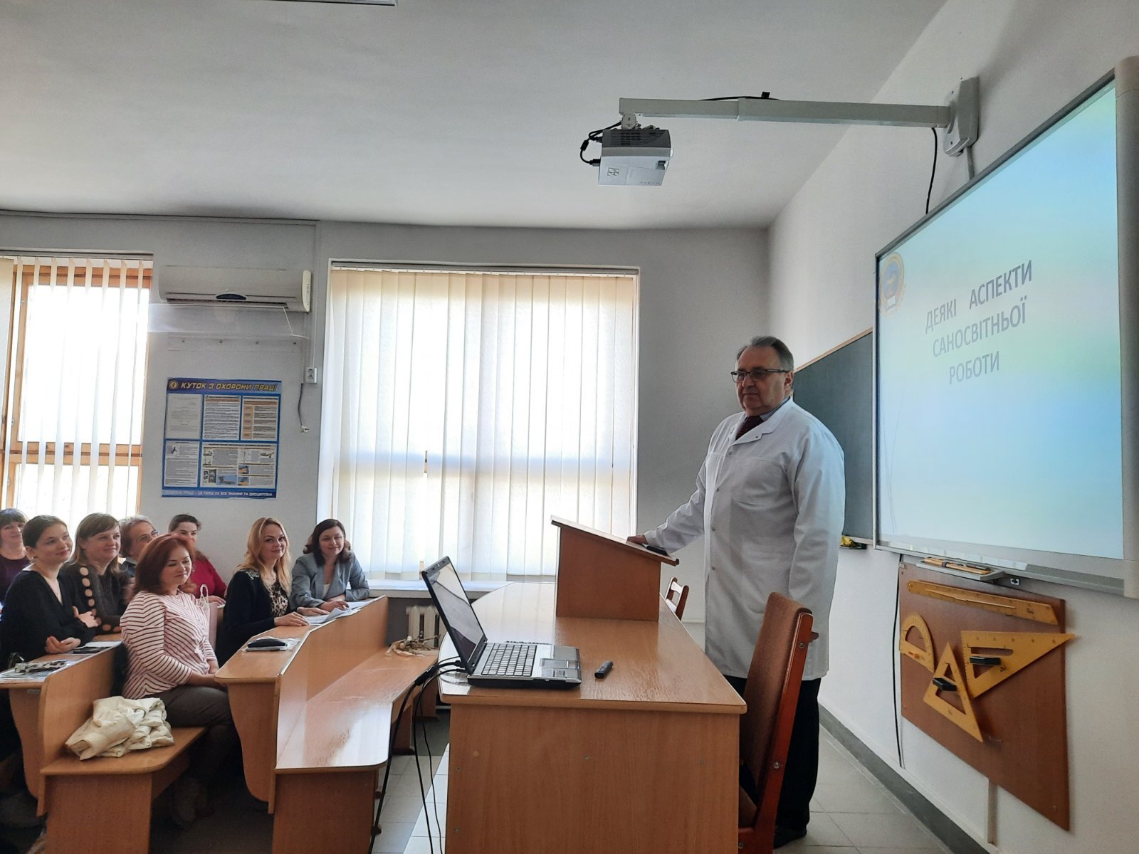 Під час лекційних занять директор коледжу Володимир Васильович Стасюк ознайомив слухачів з основними питаннями організації надання медичної допомоги населенню, медико-соціальних аспектів здоров’я, проведення санітарно-освітньої роботи; а заступниця директора з післядипломної освіти Олександра Денисівна Воєвода зупинилась на особливостях післядипломного навчання молодших спеціалістів/фахових молодших бакалаврів з медичною та фармацевтичною освітою відповідно до наказу МОЗ України від 10.11.2022 року за № 2016.