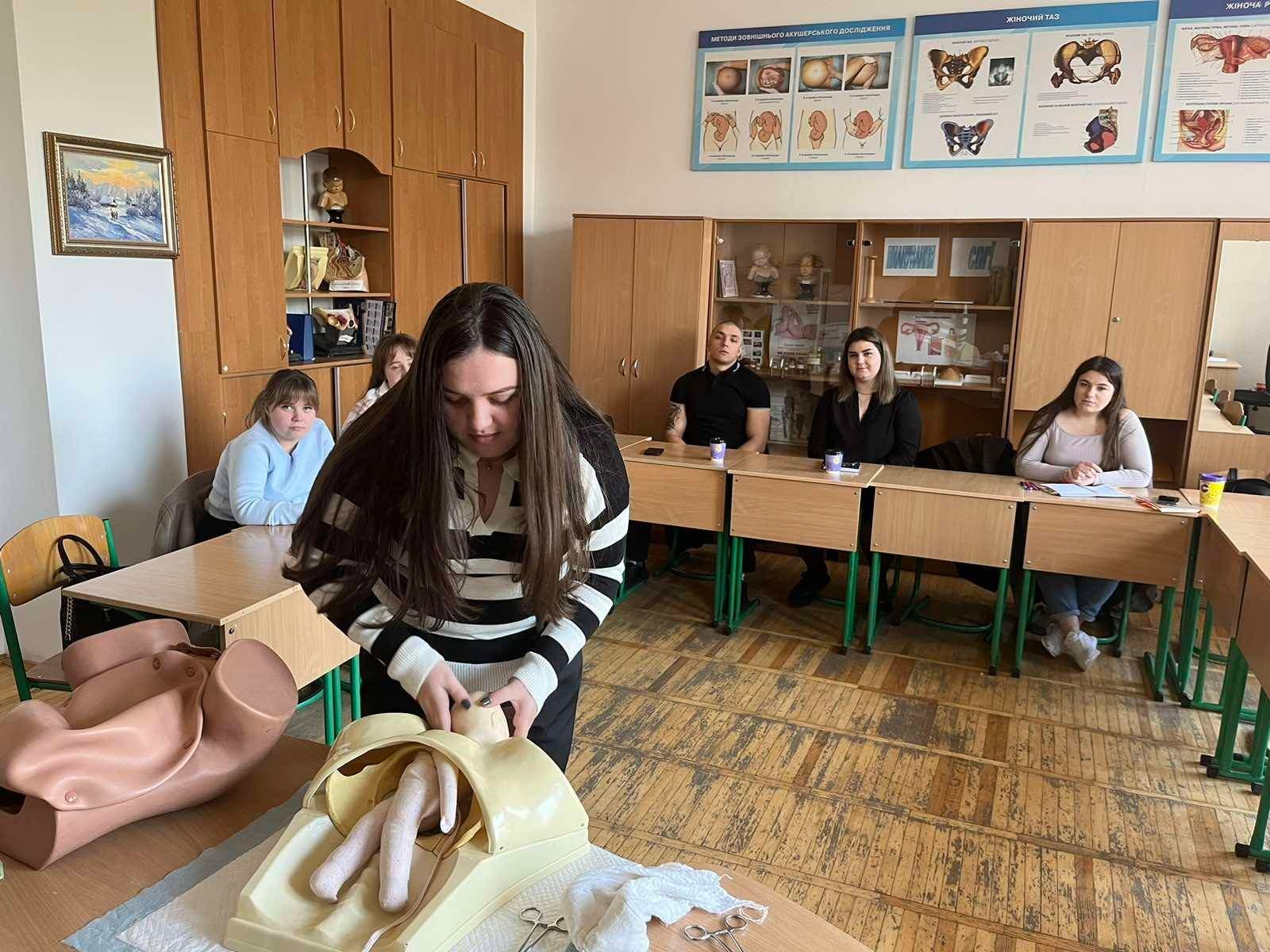 А 26 квітня слухачі циклу тематичного удосконалення «Екстрена медицина. Фельдшери медицини невідкладних станів» відпрацювали питання надання екстреної/невідкладної психіатричної допомоги на базі КНП «ПОКЦПЗ ІФОР» (відповідно до рекомендацій департаменту охорони здоров’я ОДА) та на базі кабінету акушерства та гінекології коледжу вдосконалювали практичні навички приймання фізіологічних пологів, ведення ІІІ періоду пологів, огляду посліду на цілісність та визначення об’єму крововтрати у пологах; відпрацювали тактику фельдшери при випадінні дрібних частин плоду та петель пуповини під керівництвом викладача акушерства та гінекології, викладача вищої кваліфікаційної категорії, викладача-методиста Валовіни Альони Миколаївни. Також був проведений розбір практичних кейсів, активне обговорення клінічних випадків у роботі фельдшера екстреної медичної допомоги.