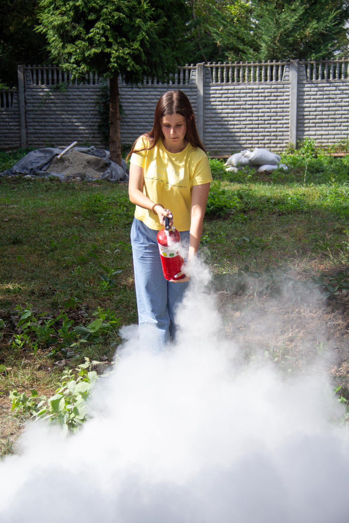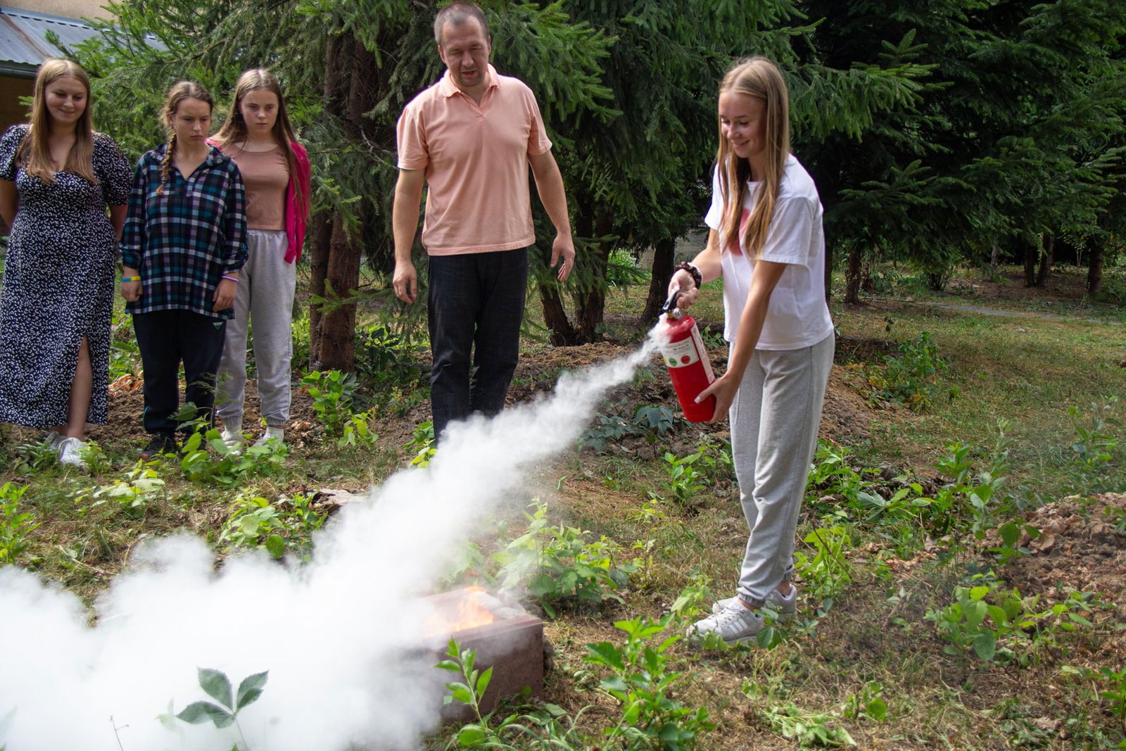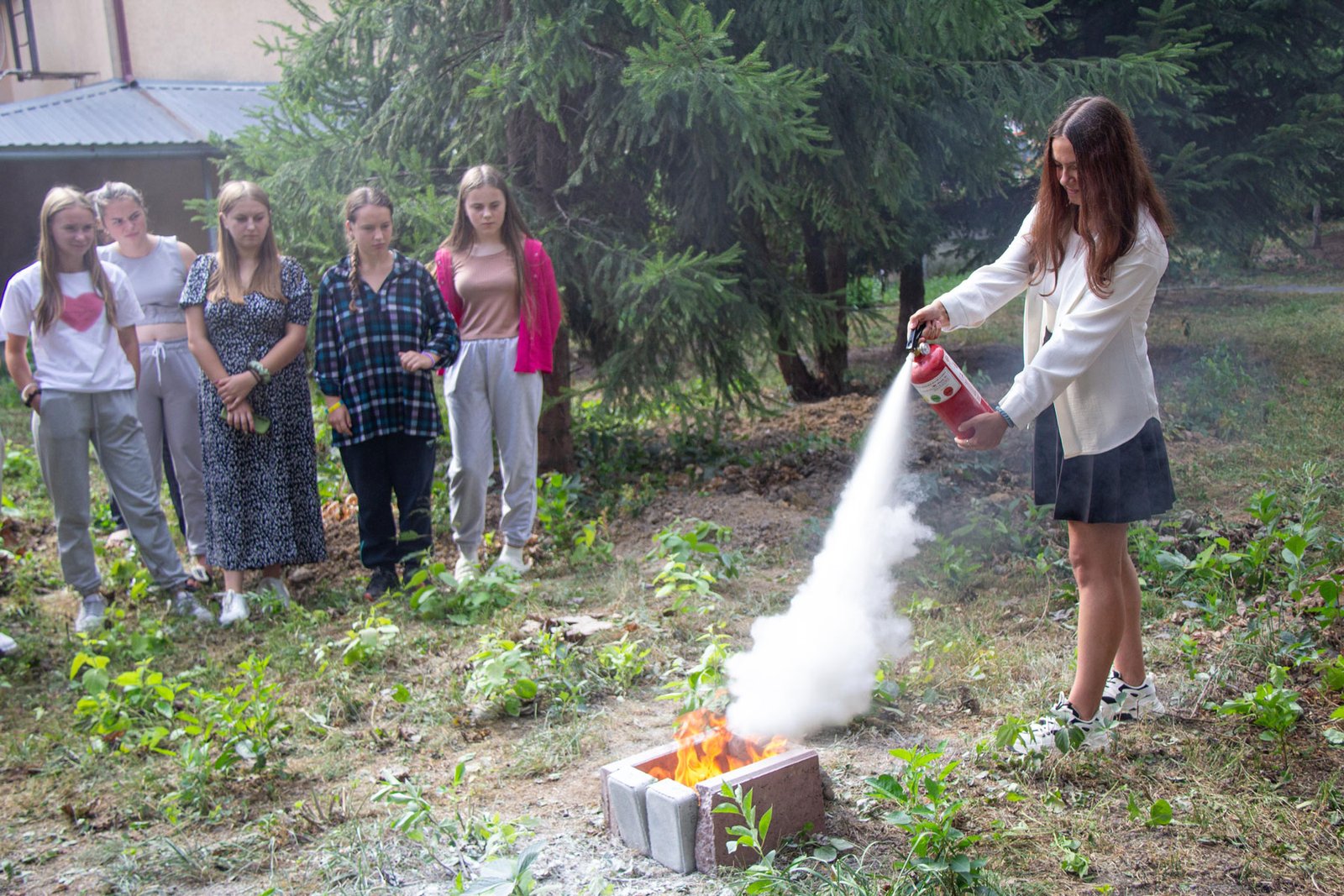 А як користуватися вогнегасниками для гасіння загорань, викладач не лише розповів, а й здобувачі освіти самі змогли виконати вправи з вогнегасником. Під час заняття відпрацьовували також алгоритм евакуації при пожежі.