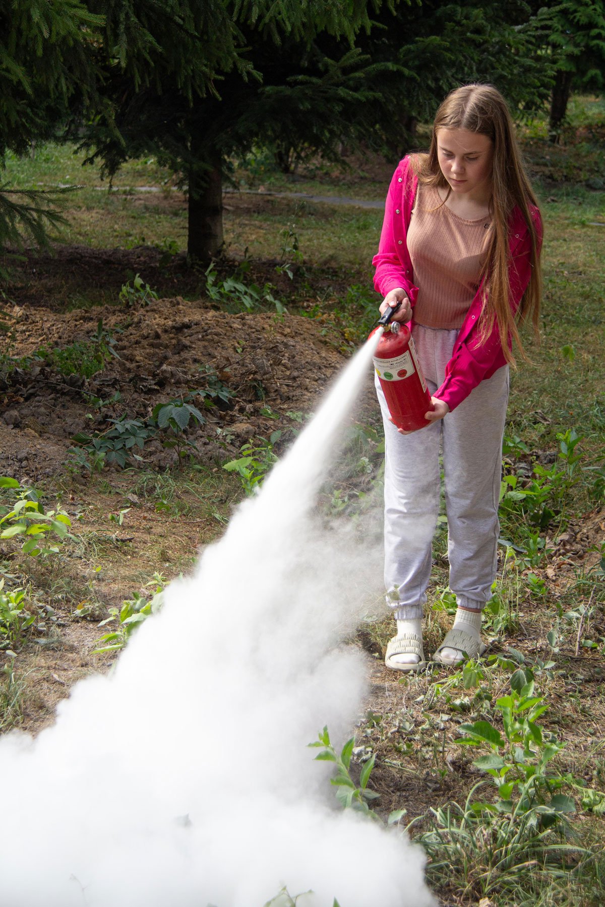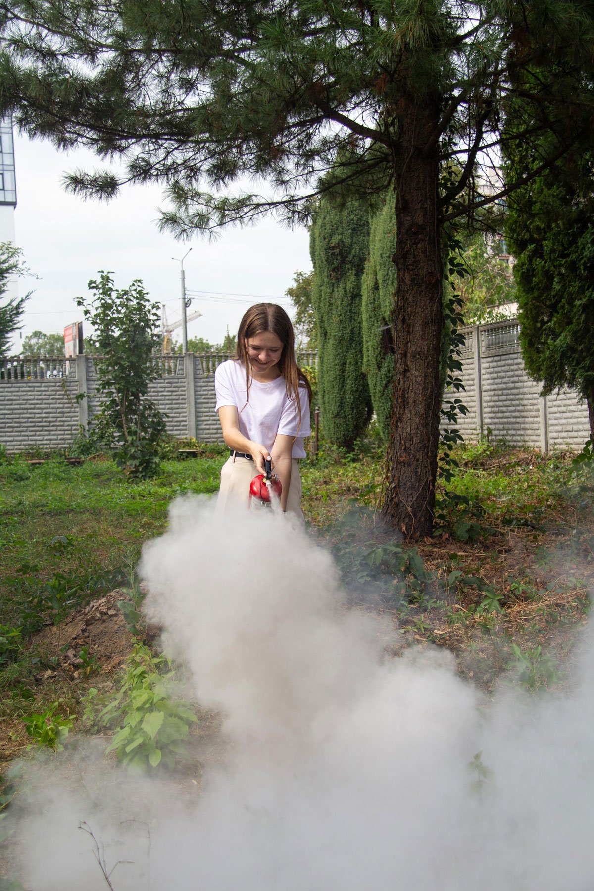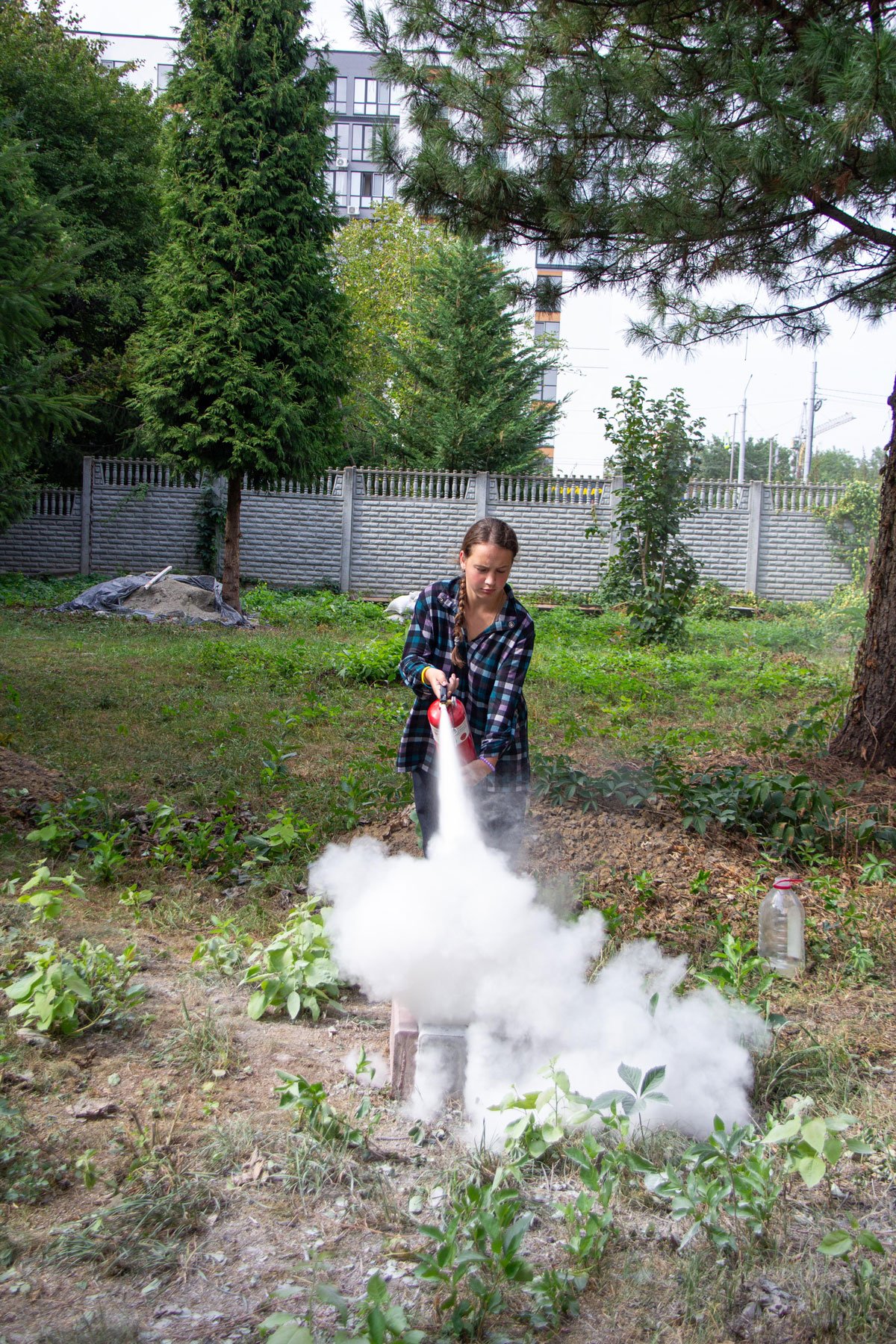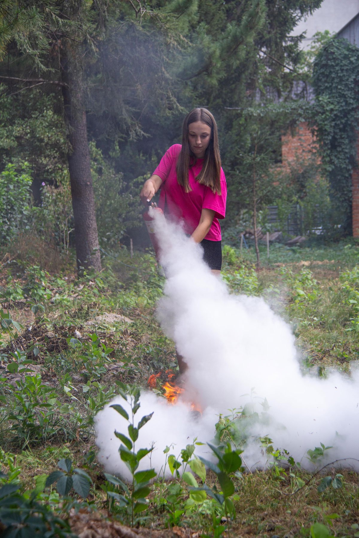 А як користуватися вогнегасниками для гасіння загорань, викладач не лише розповів, а й здобувачі освіти самі змогли виконати вправи з вогнегасником. Під час заняття відпрацьовували також алгоритм евакуації при пожежі.