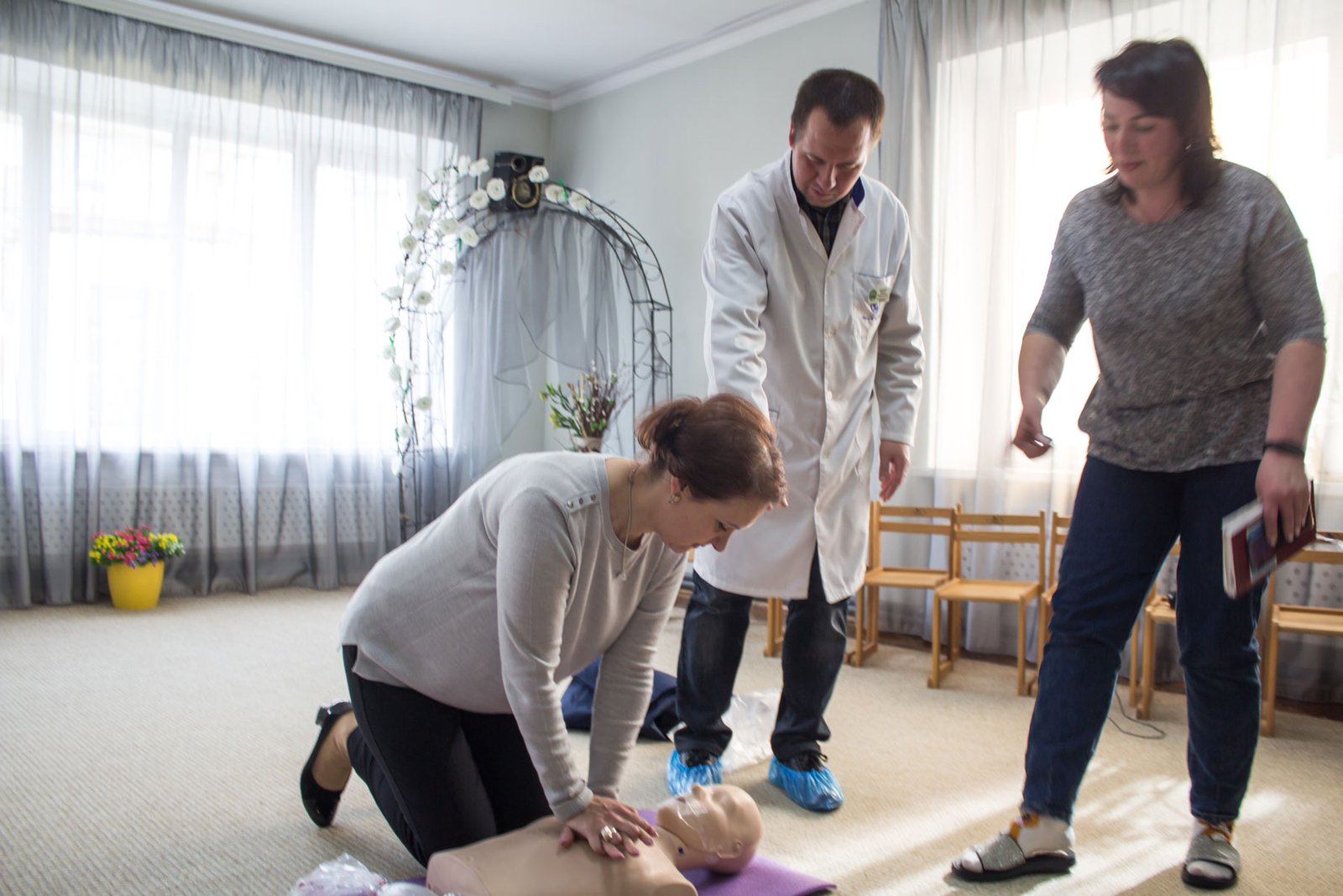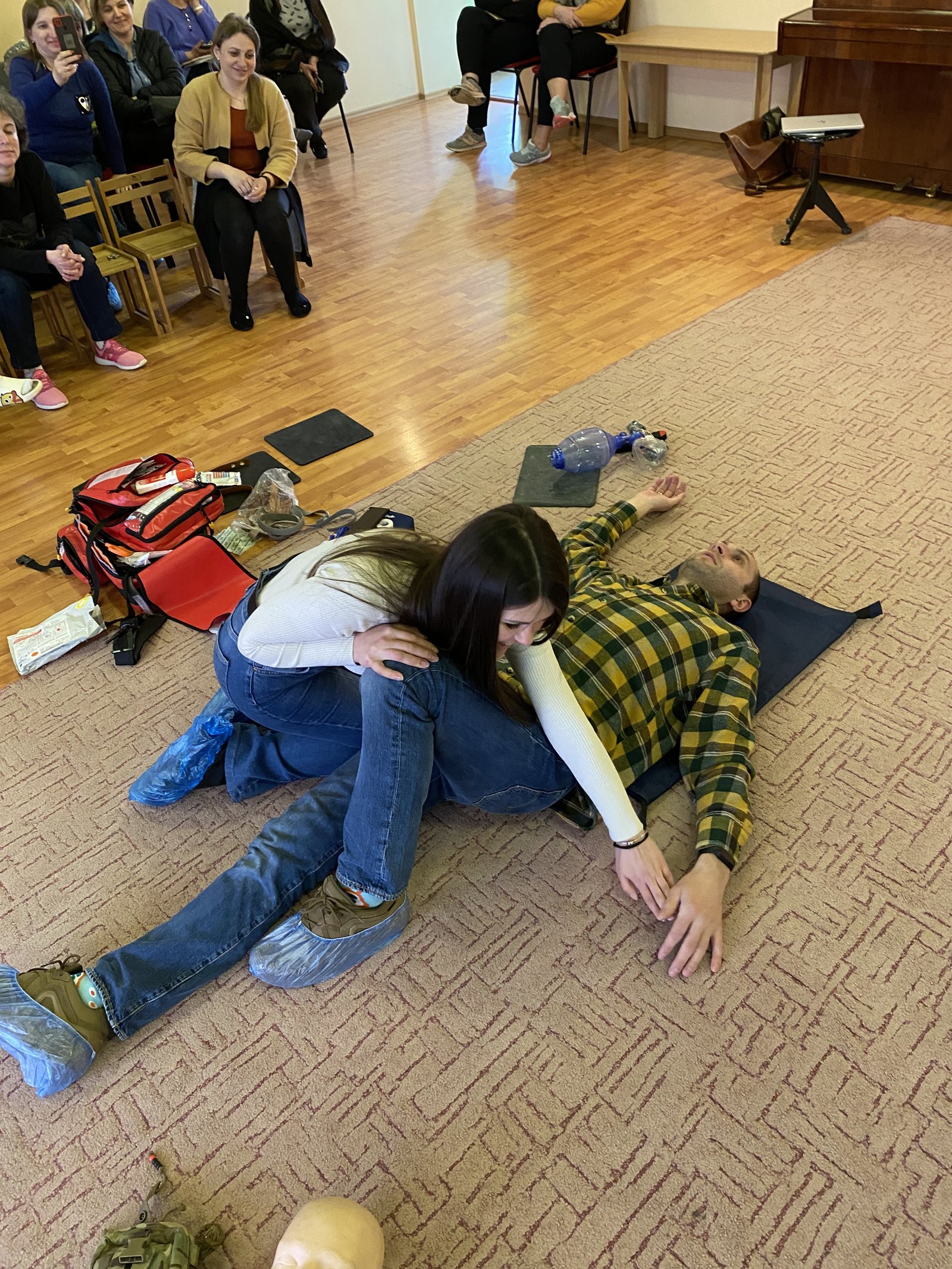 Слухачам розповідали про важливі аспекти першої домедичної допомоги при кровотечах, переломах, проведення серцево-легеневої реанімації дітям дошкільного віку, іншу допомогу при надзвичайних ситуаціях. Для наочності використовували фантоми, щоб можна було все побачити і дещо спробувати на практиці зробити самим.