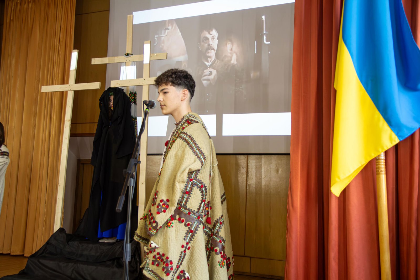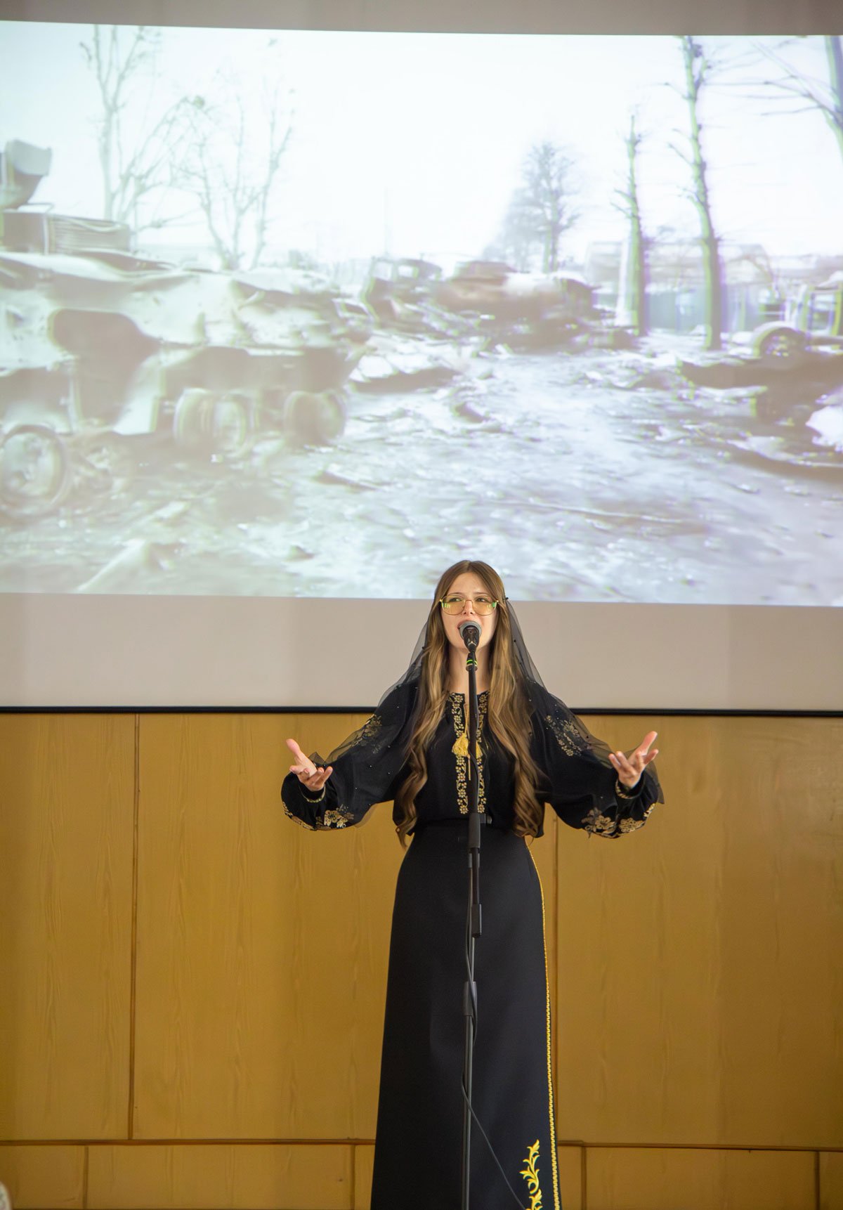 Перше місце у номінації “Патріотика” здобула третьокурсниця Анна ЛЕВИЦЬКА, яка виконувала вірш з окопу «Ридає Бог» Петра Маги.