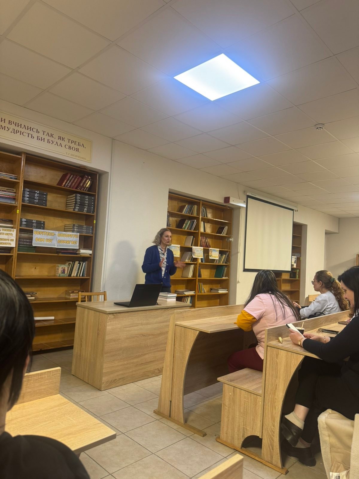 Також на зустріч зі здобувачами освіти прийшла науковиця і перекладачка з німецької мови, доцентка Київського національного університету імені Тараса Шевченка, координаторка німецько-українських проєктів у сфері паліативної допомоги Галина ЛЕЙЦЮСЬ, яка бере участь у виданні практичних посібників з паліативної допомоги, популяризує їх в Україні, презентувала студентам.