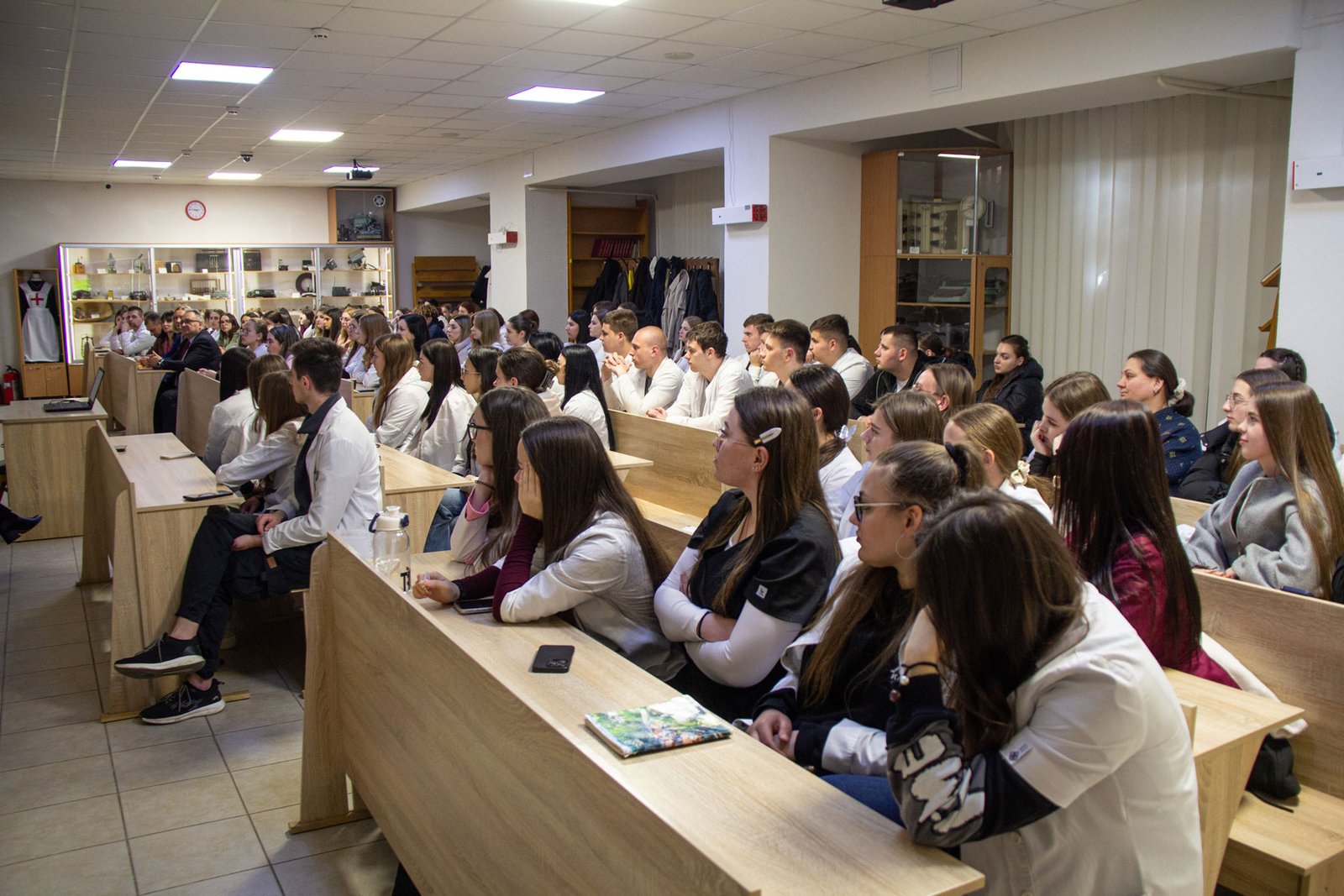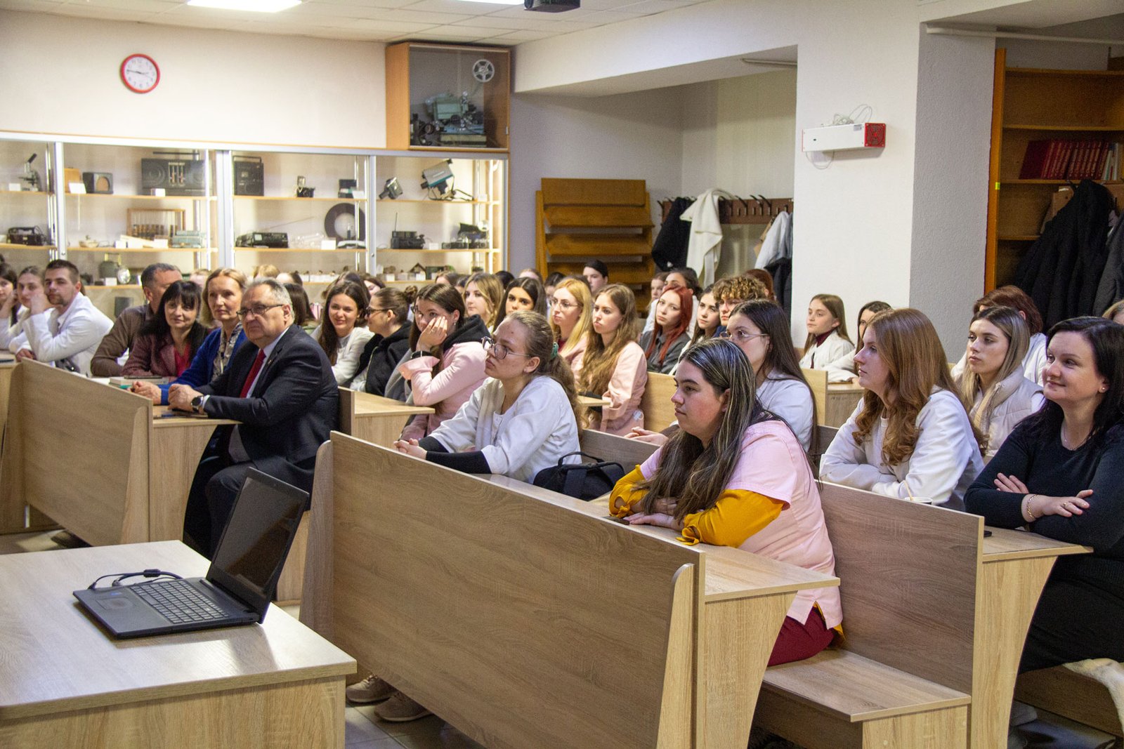 На п’ятій парі зі студентами груп ІІІ-7 ОПП Акушерська справа, IV-1а, 1б, 5, 10б ОПП Лікувальна справа, IV-2, 3а, 6, 9а ОПП Сестринська справа зустрілися головна медична сестра, експертка департаменту охорони здоров’я обласної держадміністрації з медсестринства в дитинстві КНП «Івано-Франківська обласна дитяча клінічна лікарня» Івано-Франківської обласної ради, бакалавр медсестринства Вікторія БАСАРАБ і старша медична сестра відділення УЗД та ФД Тетяна ДРОГОМИРЕЦЬКА. До спілкування також долучилися директор ІФМФК Володимир СТАСЮК, завідувачка відділення Мар’яна ГОДОВАНЕЦЬ, вільні від занять викладачі.
