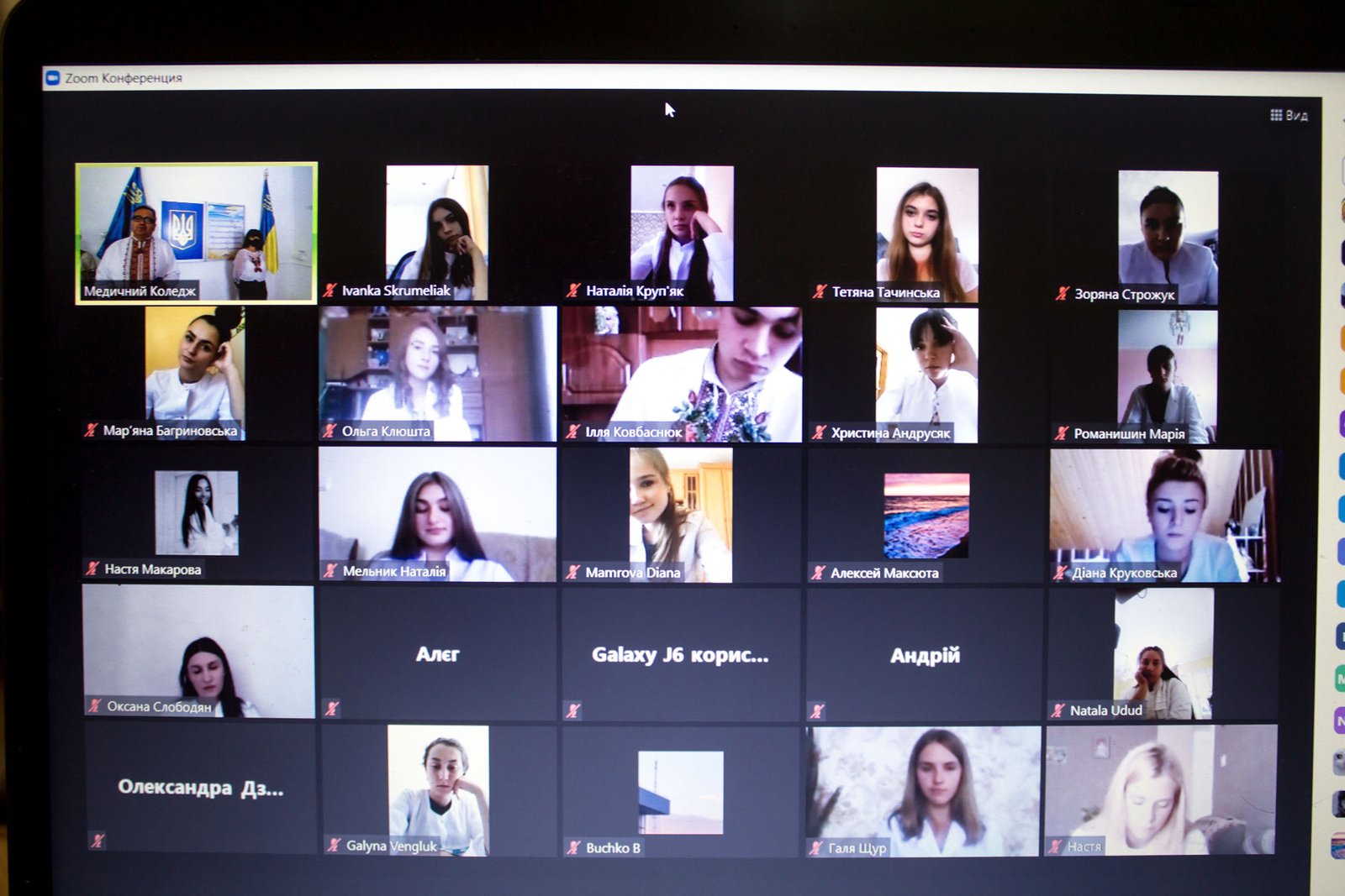 Це все-таки урочистий день. Хоча вступили студенти одразу на другий курс і вчитимуться у групах 2-7 та 2-9, та формально вважаються першокурсниками. Для них не було ритуалу одягання білих халатів власне як ритуалу. Але під час онлайн-посвяти, як видно було в комп’ютері, всі вони були в халатах, хай і у себе вдома. І це символізує, що вибрали для себе медичний фах і приступають до оволодіння ним.