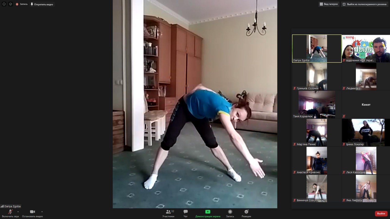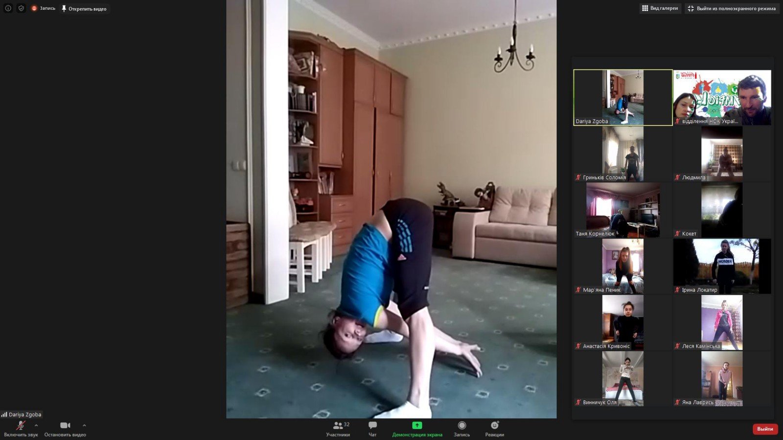 Студентам був запропонований практичний майстер-клас від гімнастки, який містив фізичні вправи, що можна виконувати у домашніх умовах, адже на сьогоднішній день це особливо актуально.