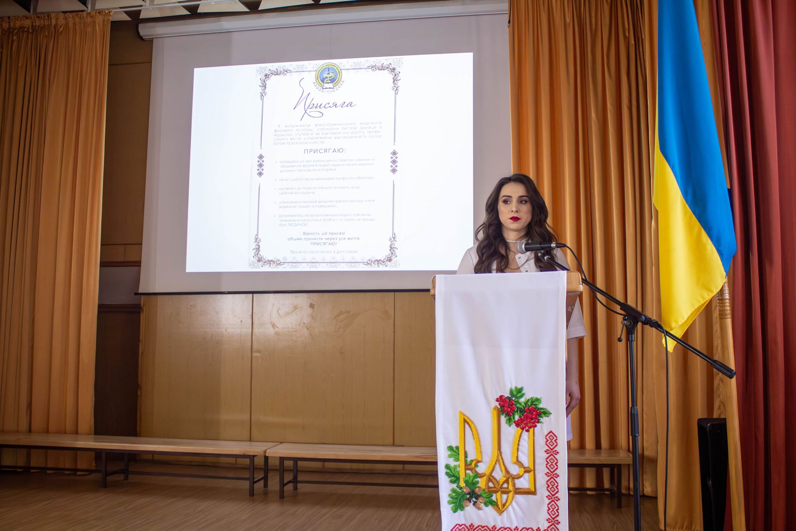 Їм довелося вчитися в непростих умовах пандемії коронавірусу і московсько-української війни, але вони подолали всі виклики, успішно склали ЄДКІ і готові до професійної діяльності. Перед своїми викладачами і батьками здобувачі освіти прийняли присягу випускника Івано-Франківського медичного фахового коледжу, текст якої зачитувала староста групи IV-7 Наталя Лібер. За нею випускники повторювали слова обіцянки служити людям і медицині, працювати задля збереження здоров’я людей, підтримувати авторитет свого освітнього закладу.