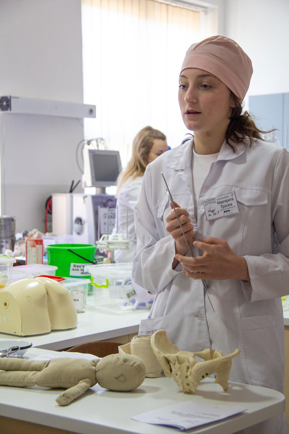 Іспит проходив у тренажерному кабінеті, який оснащений сучасними фантомами, муляжами.