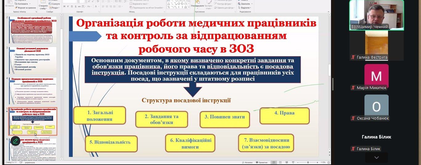 - проведено 14 циклів спеціалізації за фахом (за 12 спеціальностями), 19 циклів спеціалізації за профілем роботи (за 15 спеціальностями, у т.ч. додатково 1 цикл навчання «Психіатрія. Сестра медична/брат медичний в дитячій психіатрії»), 112 циклів тематичного удосконалення за 62 спеціальностями (у т.ч. 1 додатково – «Надання невідкладної медичної допомоги»), з них 5 виїзних циклів навчання на базі КНП «Центральна районна лікарня Калуської МР» та КНП «Калуський міський центр медико-санітарної допомоги» Калуської МР та 6 виїзних циклів – на базі КНП «Коломийська ЦРЛ» Коломийської МР та КЗ «Коломийський міський центр первинної медико-санітарної допомоги»;