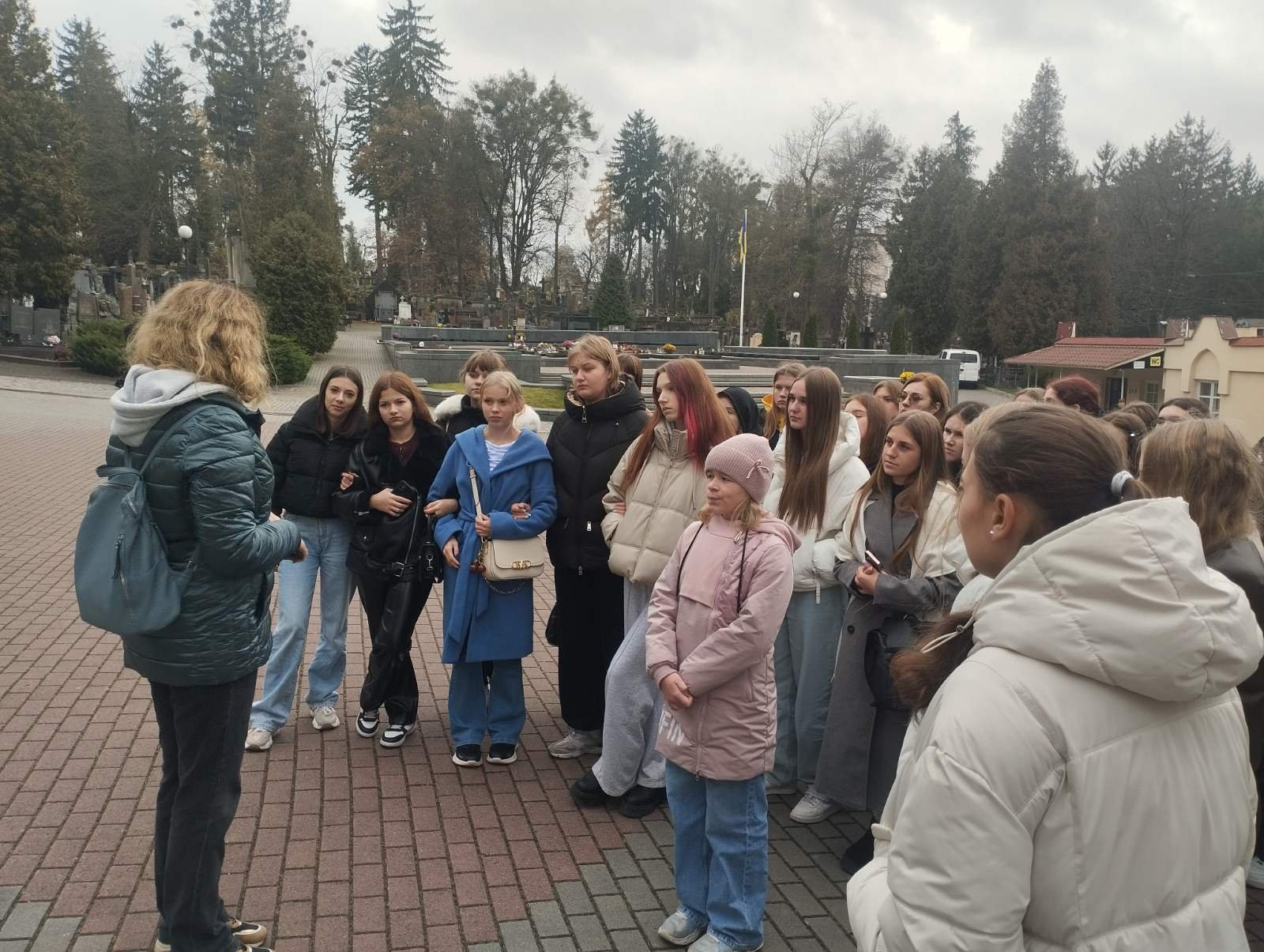 Наступним пунктом мандрівки був музей «Личаківський цвинтар», площа якого 42 га. Там студентам провели екскурсію, сповнену цікавими, подекуди загадковими, фактами про життя відомих людей. Відвідування могил Ігоря Білозіра, Івана Франка, Володимира Івасюка, Соломії Крушельницької, Мирослава Скорика та інших непересічних особистостей дали можливість кожному в тиші подумати про вічне.
