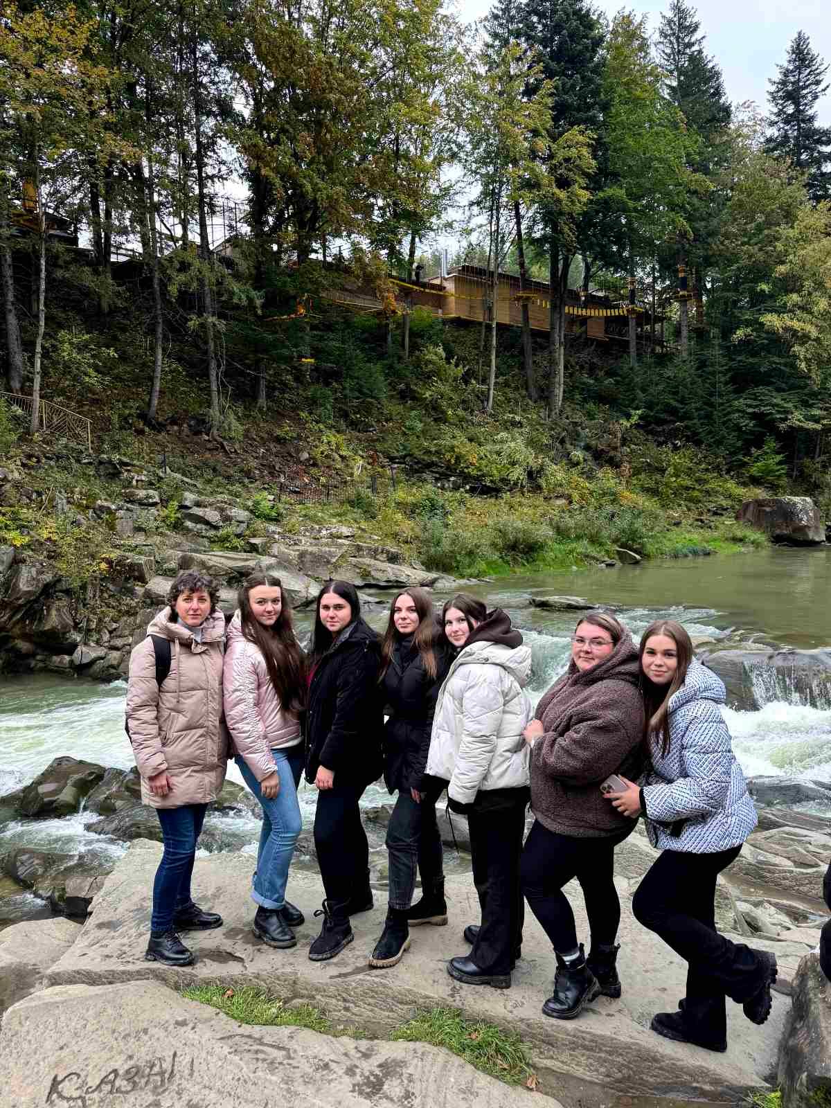 Завершили поїздку екскурсією до міста Яремче, де в самісінькому центрі відвідали водоспад Пробій. Побачивши природні особливості водоспаду і його околиць, студенти відвідали найвідоміший в Україні сувенірний ринок міста Яремче, який є справжнім символом народного прикладного мистецтва.