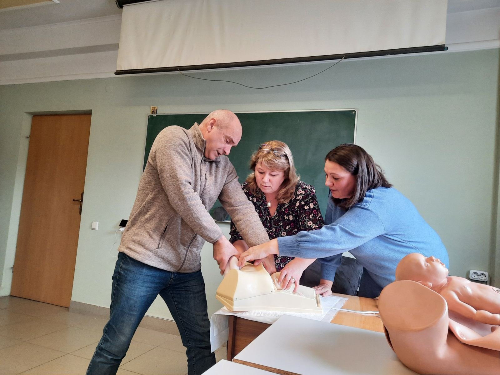 Слухачі відпрацювали практичні навички на фантомах: приймання фізіологічних пологів, активне ведення ІІІ періоду пологів, визначення об’єму крововтрати у пологах, огляд посліду на цілісність; тактика фельдшери при випадінні дрібних частин плоду та петель пуповини. Проведений розбір практичних кейсів, активне обговорення клінічних випадків у роботі фельдшера екстреної медичної допомоги.