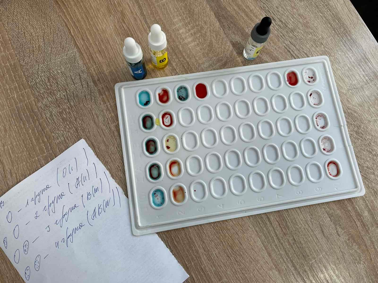 – визначення груп крові та резус-фактора за тест-реагентами.