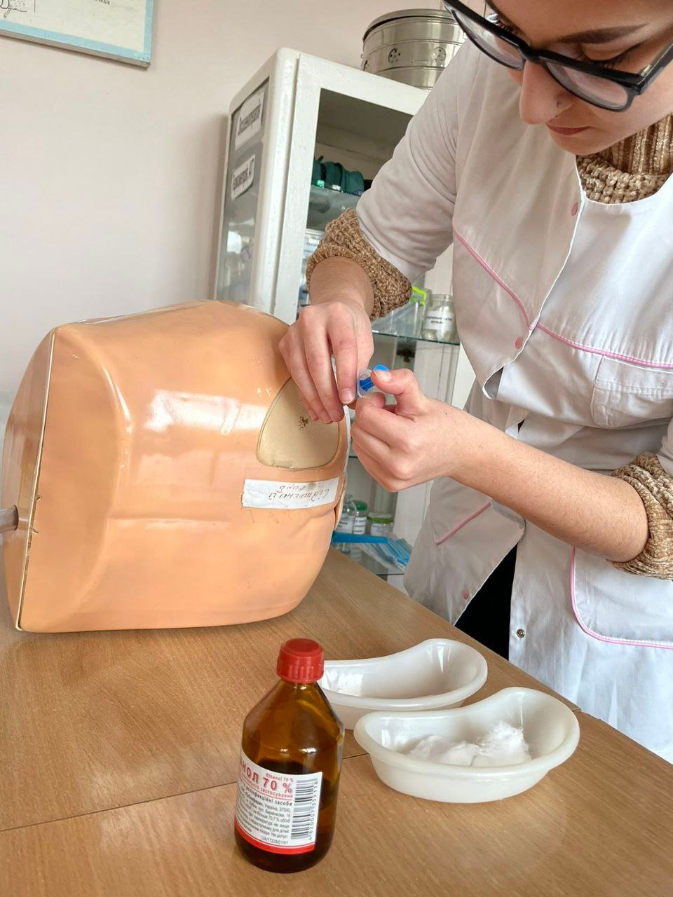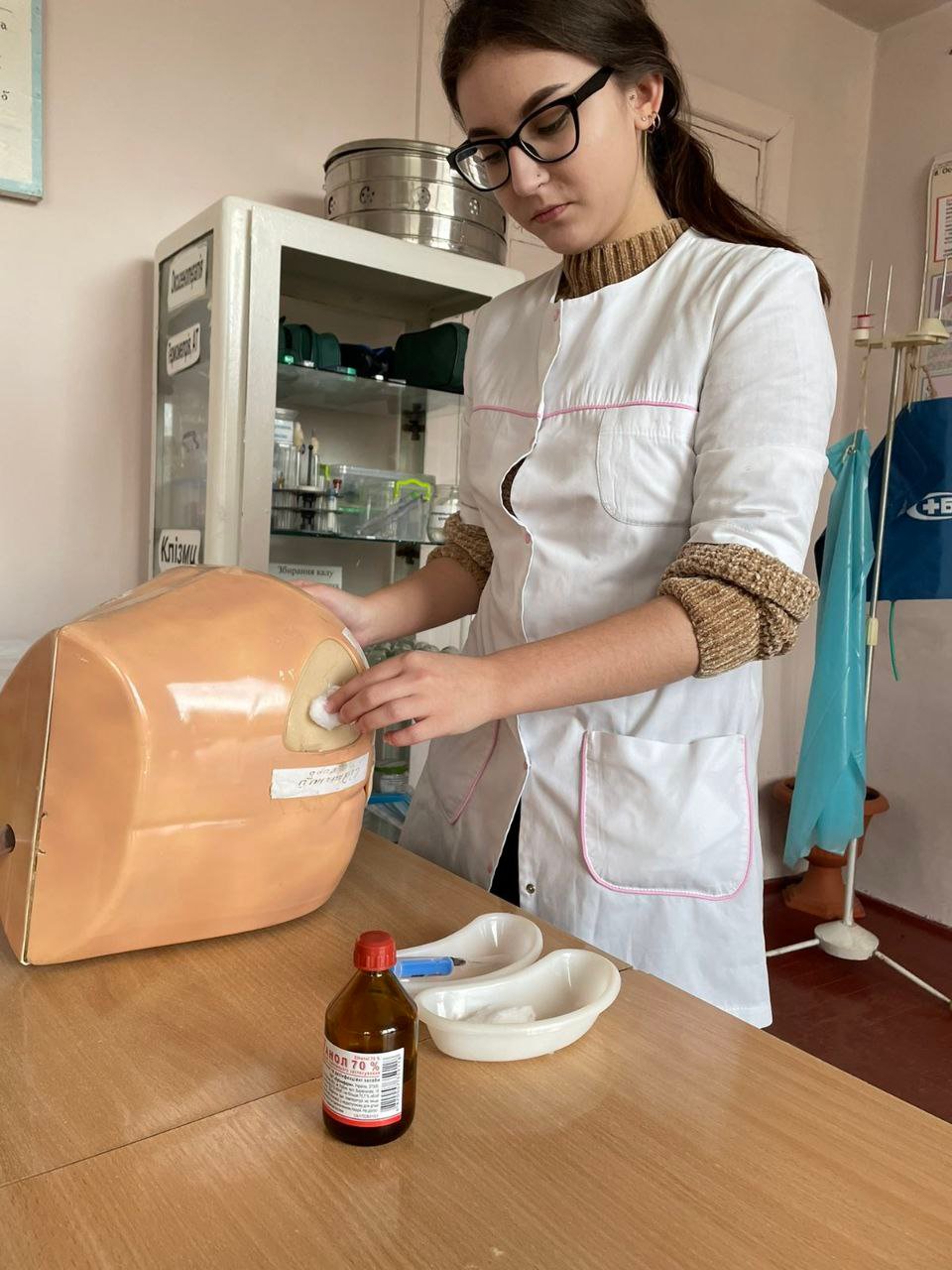 Робота у навчальній кімнаті це: розбір тематичного теоретичного матеріалу, робота із тестовими завданнями, задачами, відпрацювання на муляжах практичних навичків( в/м введення ліків, в/в краплинне введення ліків та ін.), а також працюють студенти у маніпуляційному кабінеті денного стаціонару, де уже виконують ін'єкції (набирання ліків, в/м, в/в струминне введення ліків). А також є присутніми під час лікарського прийому пацієнтів.
