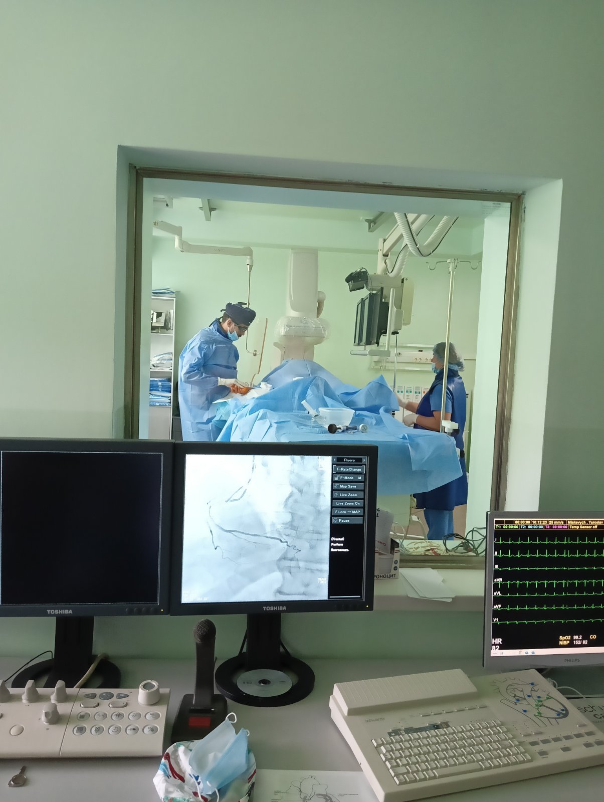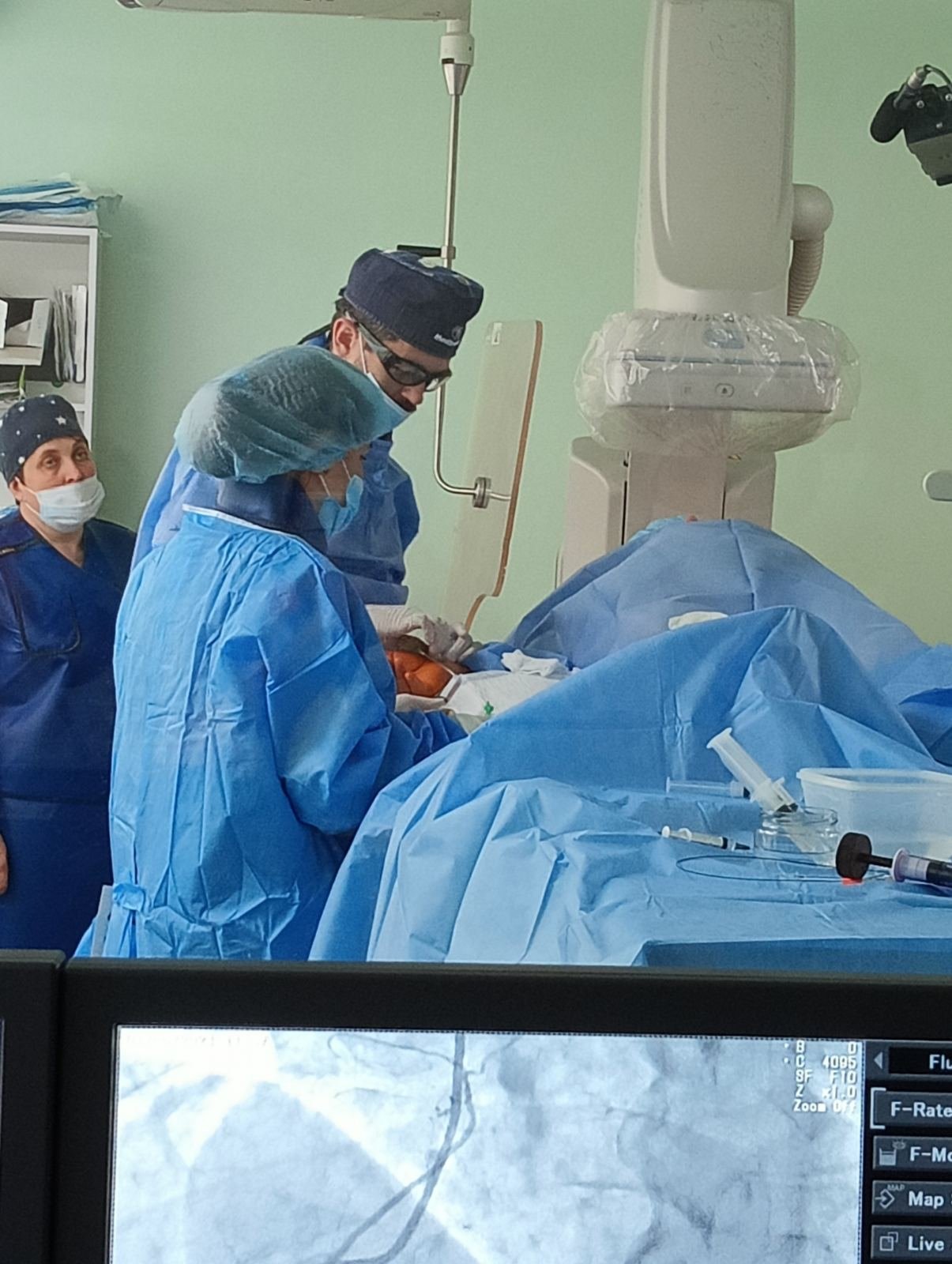 Практичне заняття із слухачами у форматі «робота в малих групах, рівний - рівному» провела завідувачка медичним пунктом коледжу, сестра медична вищої категорії Федоришин Галина Іванівна. Курсанти на багатоканальному електрокардіографі UCARD 100 із вбудованою системою передачі ЕКГ відпрацювали практичні навички знімання електрокардіограми, вчились аналізувати зубці і комплекси ЕКГ та передавати зареєстровані електрокардіограми. А в кардіоцентрі під керівництвом лікаря-кардіолога, викладача відділення післядипломної освіти коледжу Волинського Андрія Івановича знайомились з методикою проведення коронарографії.